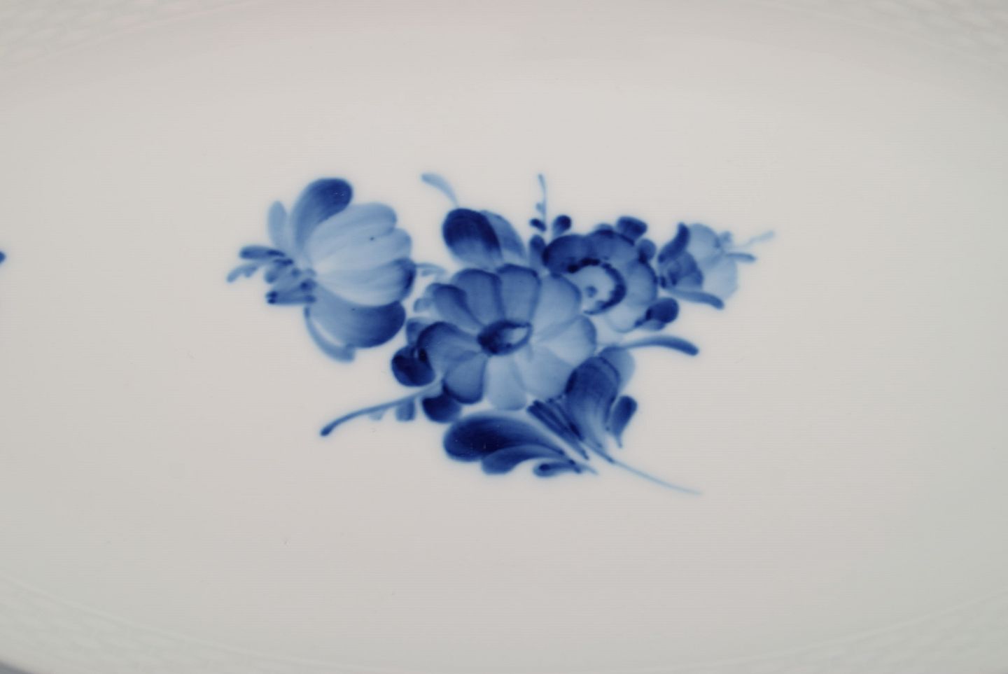 Royal Copenhagen Blå Blomst Flettet bakke. Modelnummer 10/8124. Dateret 1964. Måler: 25,5 x 12,5 x 3,2 cm. I flot stand. Stemplet. 1. Sortering.