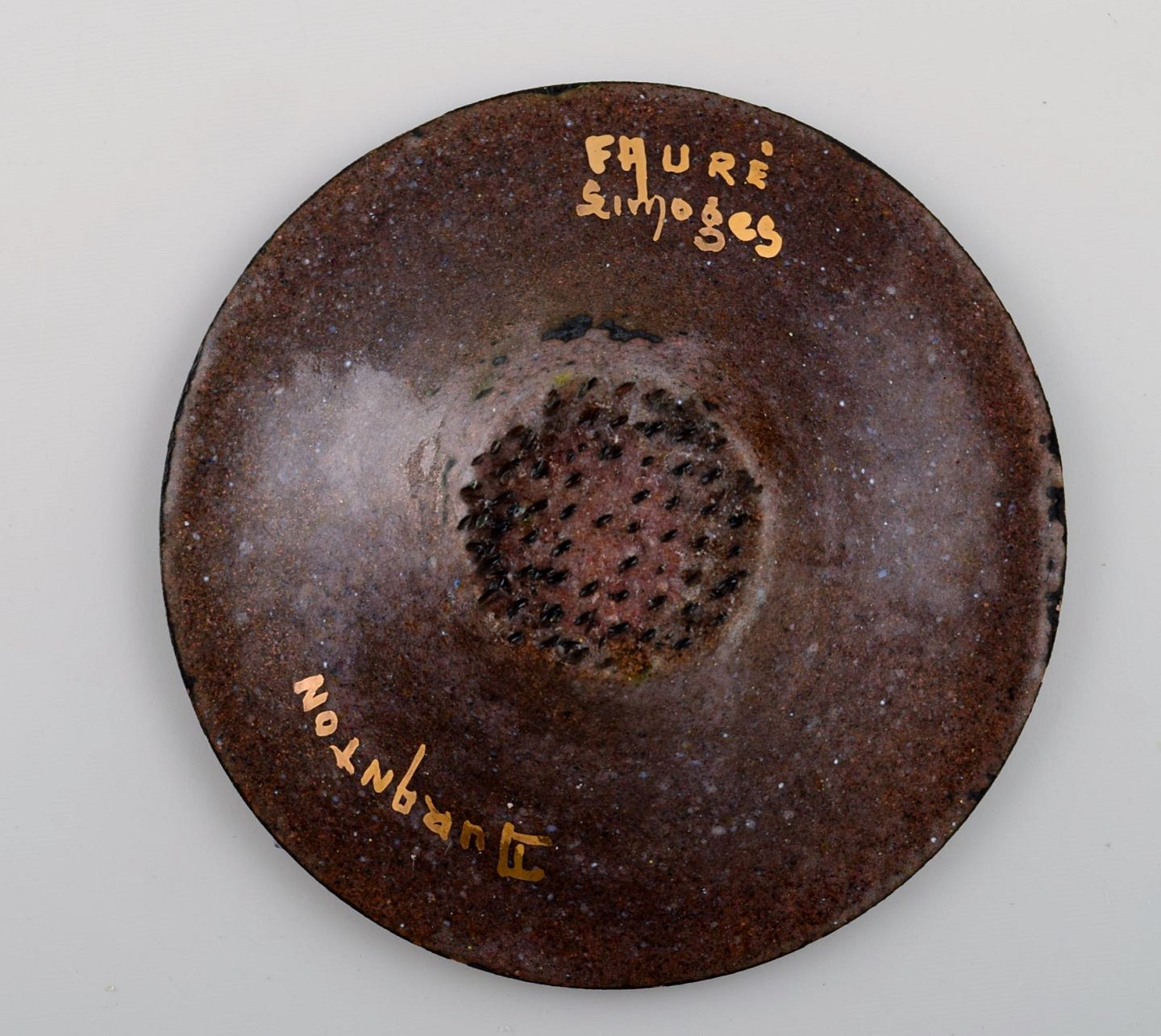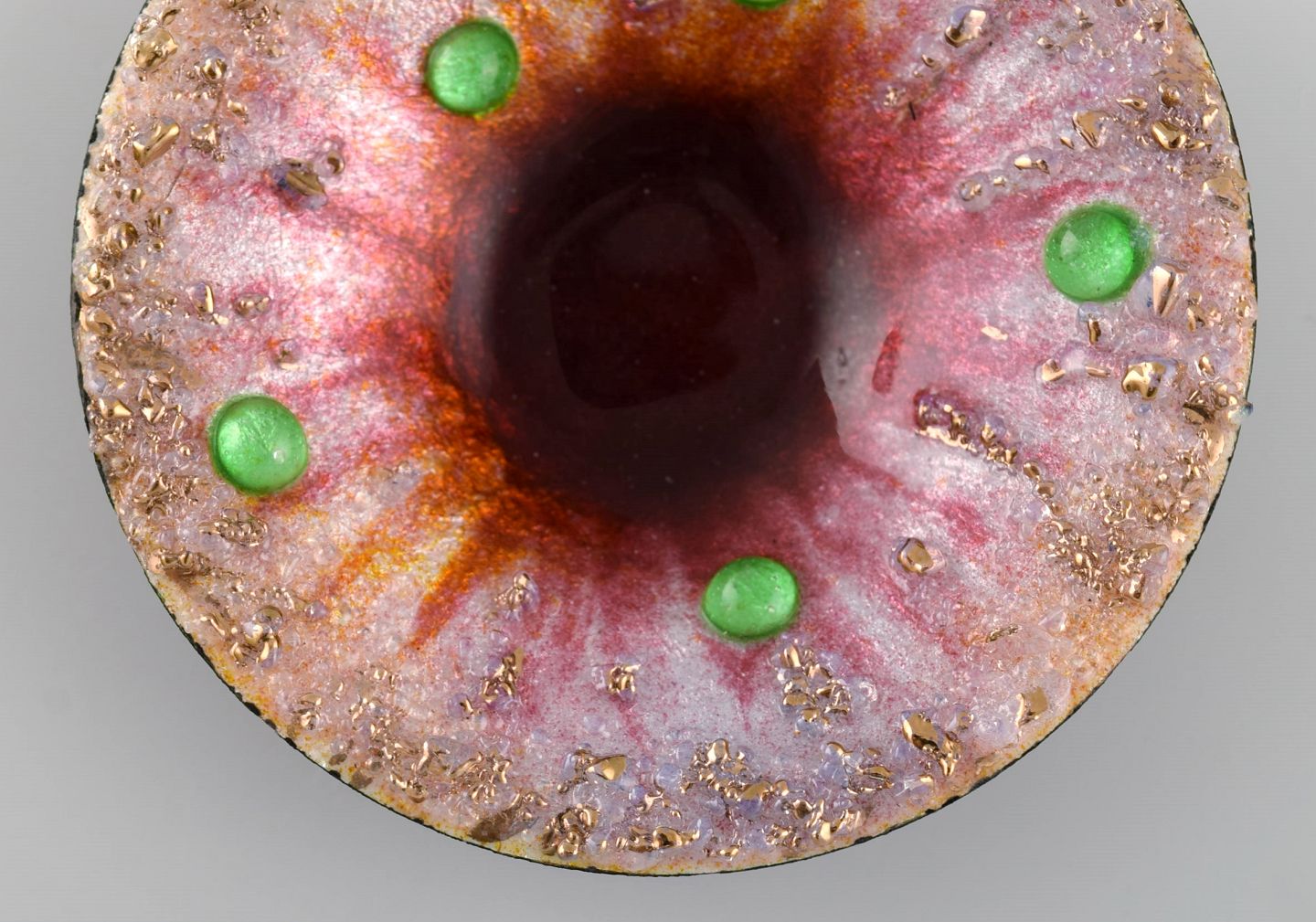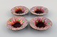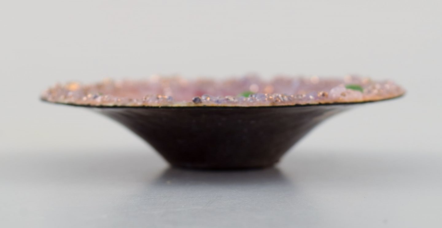Camille Fauré for Limoges, Frankrig. Fire art nouveau bronzeskåle i emaljearbejde. Grønne kunstglas-sten indlagt på lyserød baggrund. Ca. 1910.