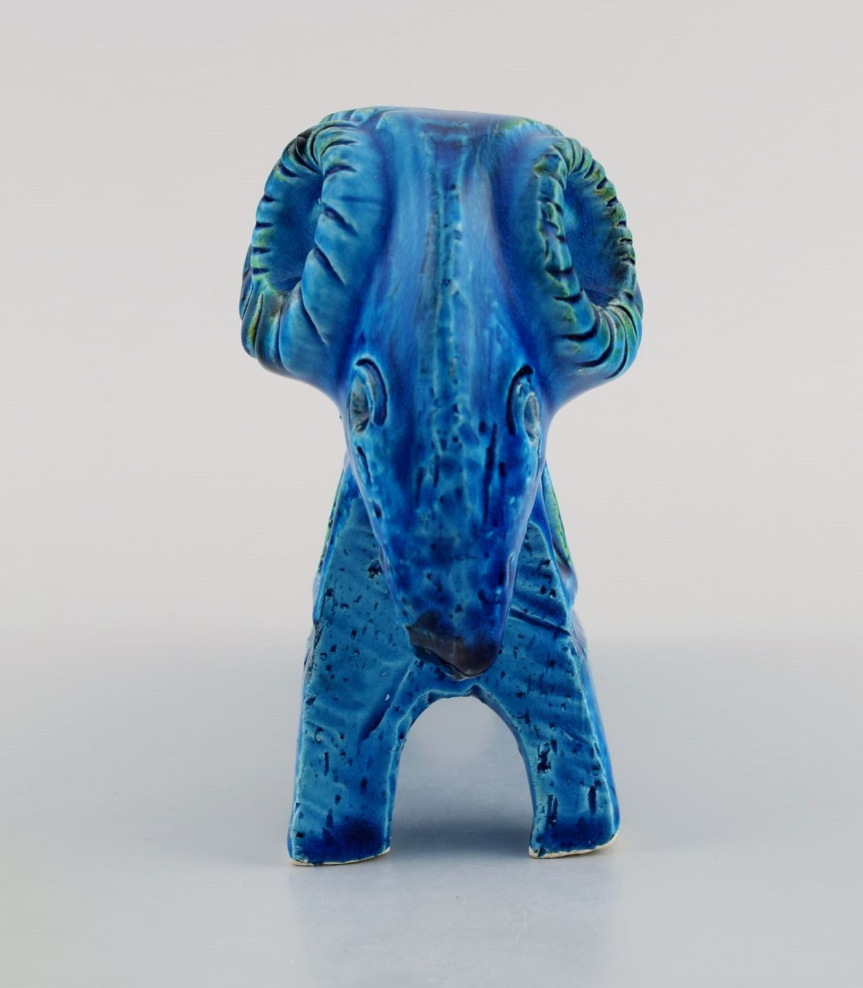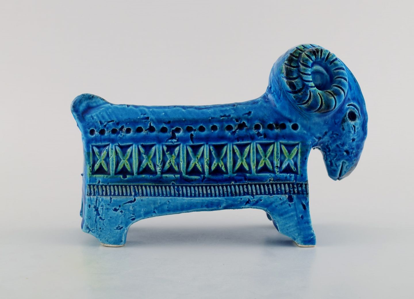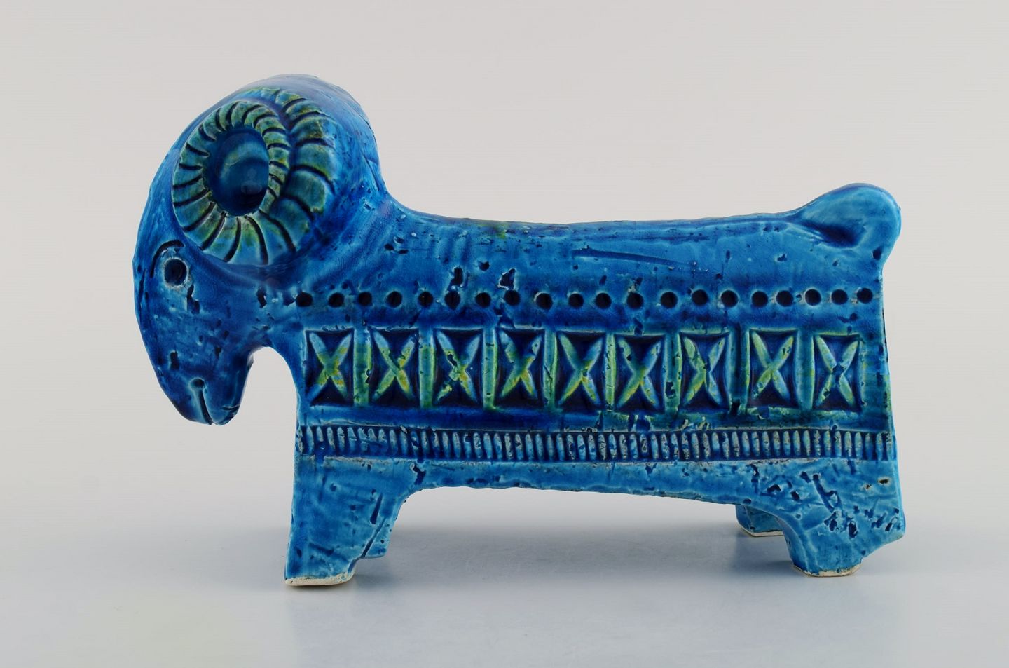 Aldo Londi for Bitossi. Vædder i Rimini-blå glaseret keramik med geometriske mønstre. 1960'erne. Måler: 18 x 11,5 cm. I flot stand.