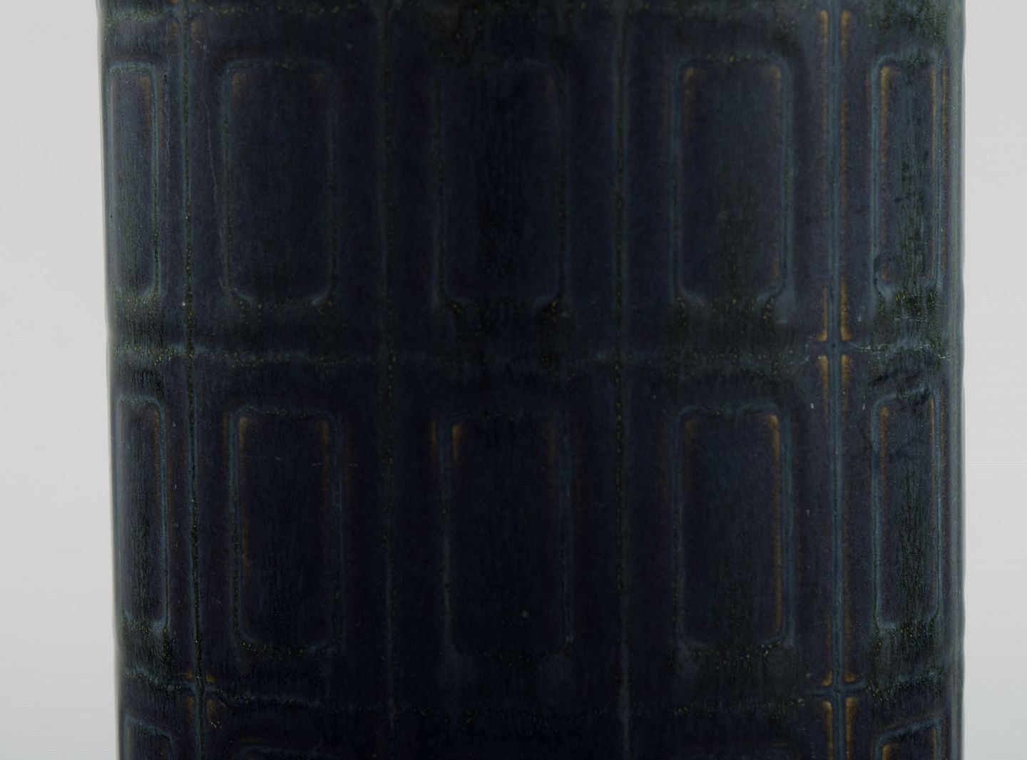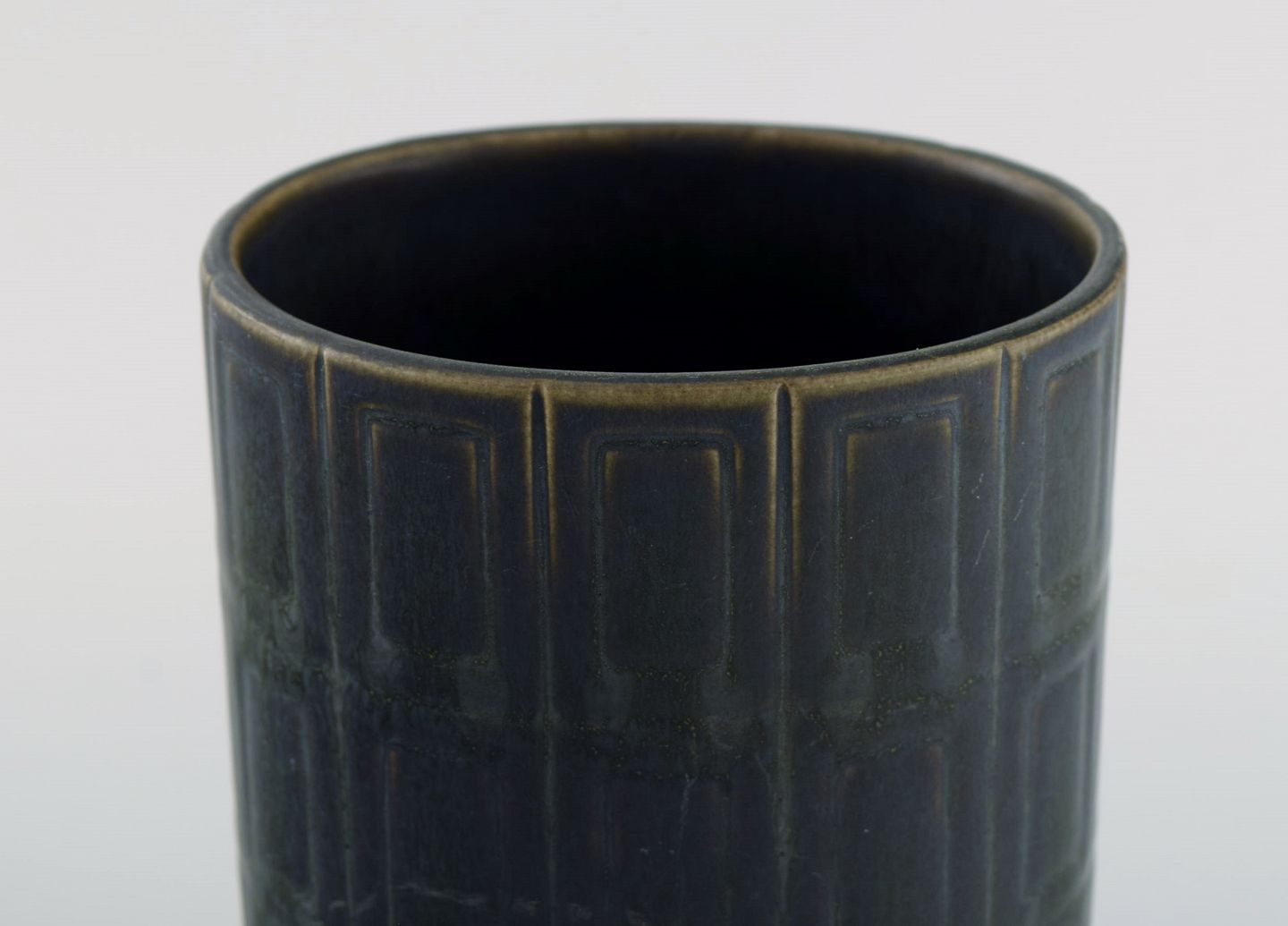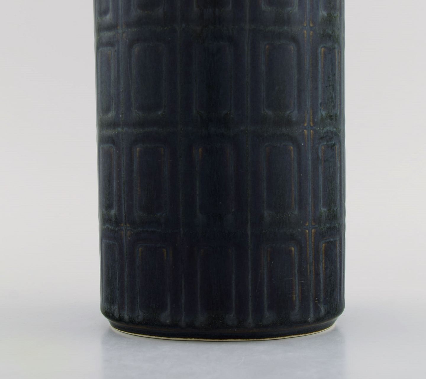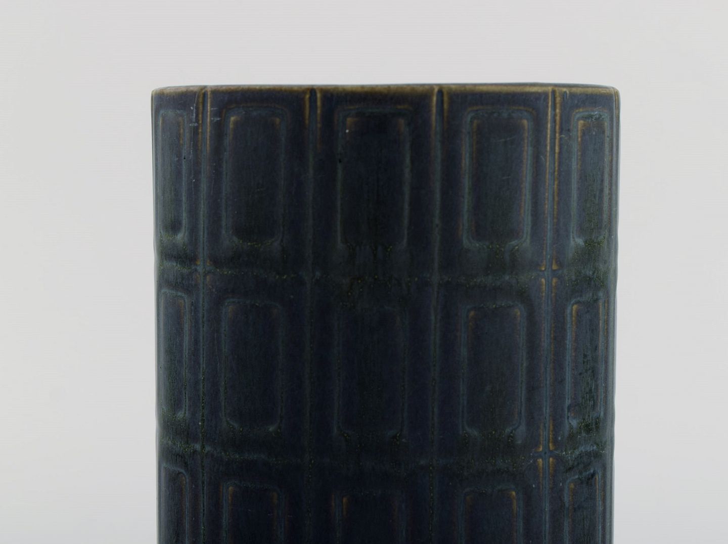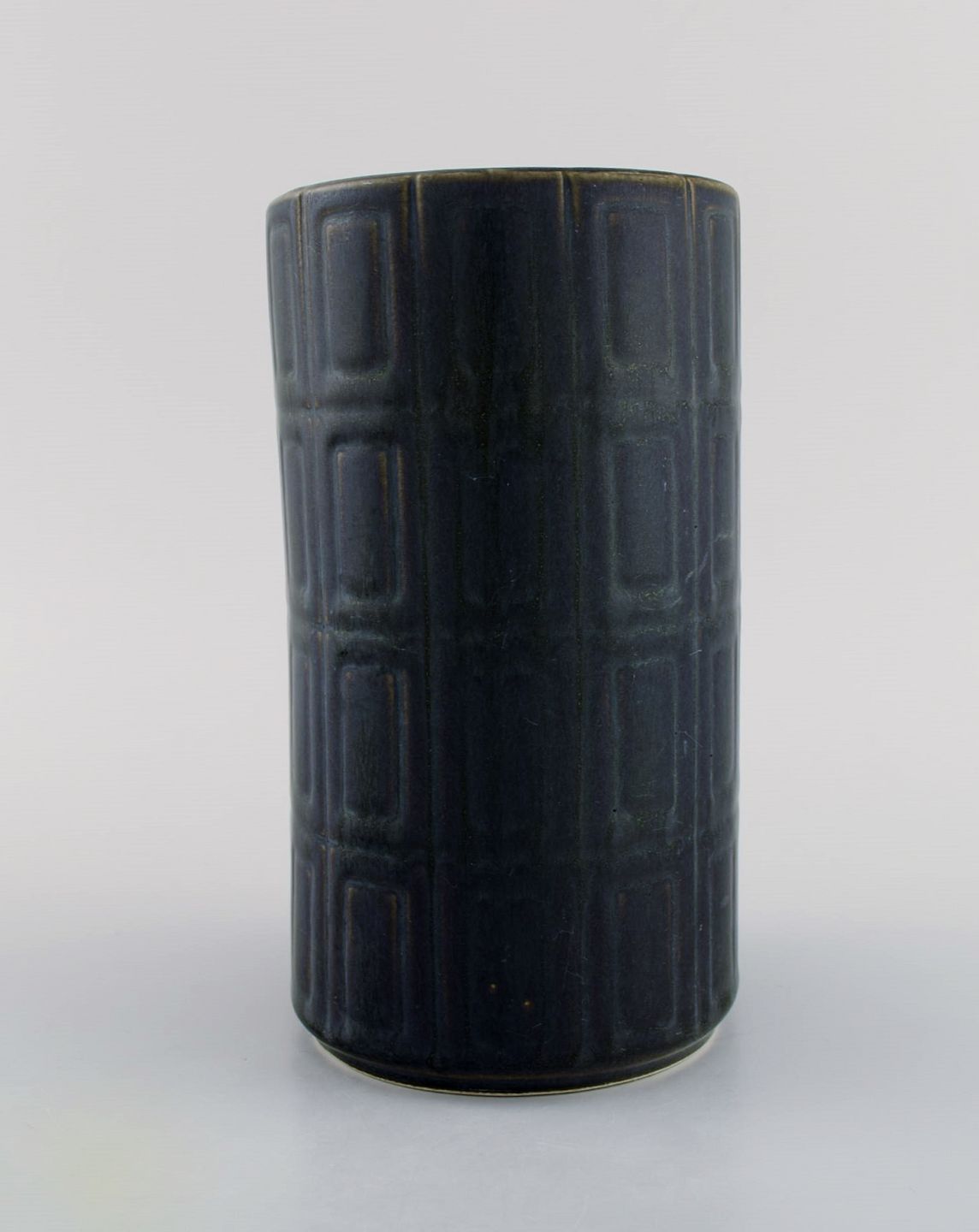 Göran Bäck (1923–2003) for Arabia. Vase i glaseret stentøj med geometriske felter. Stilrent design. 1970'erne. Måler: 17,5 x 11,7 cm. I flot stand. Stemplet.
