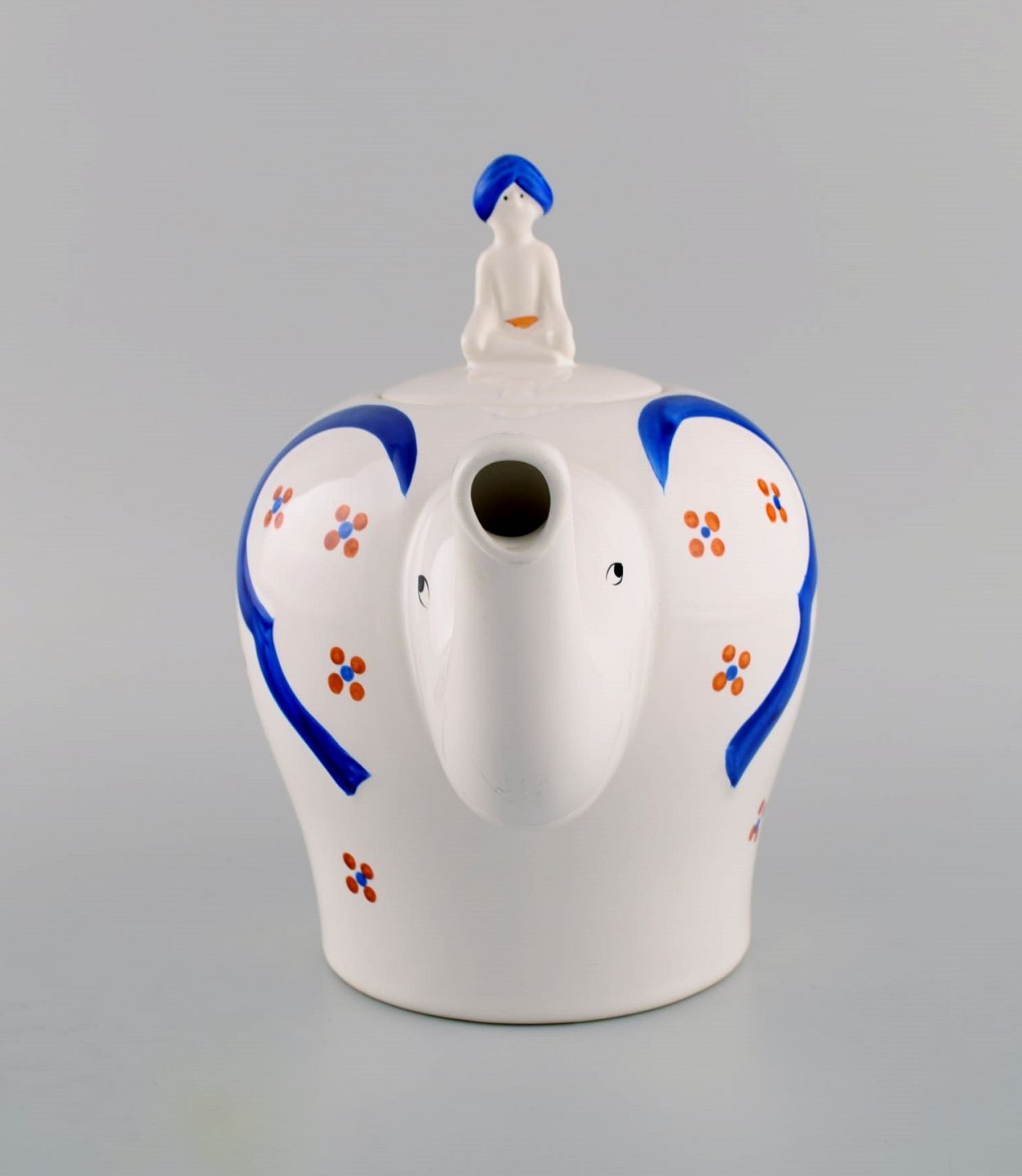 Meget sjælden Lisa Larson "Elefant tekande" fra eget værksted. Håndmalet, elefant med siddende mahout på låget.