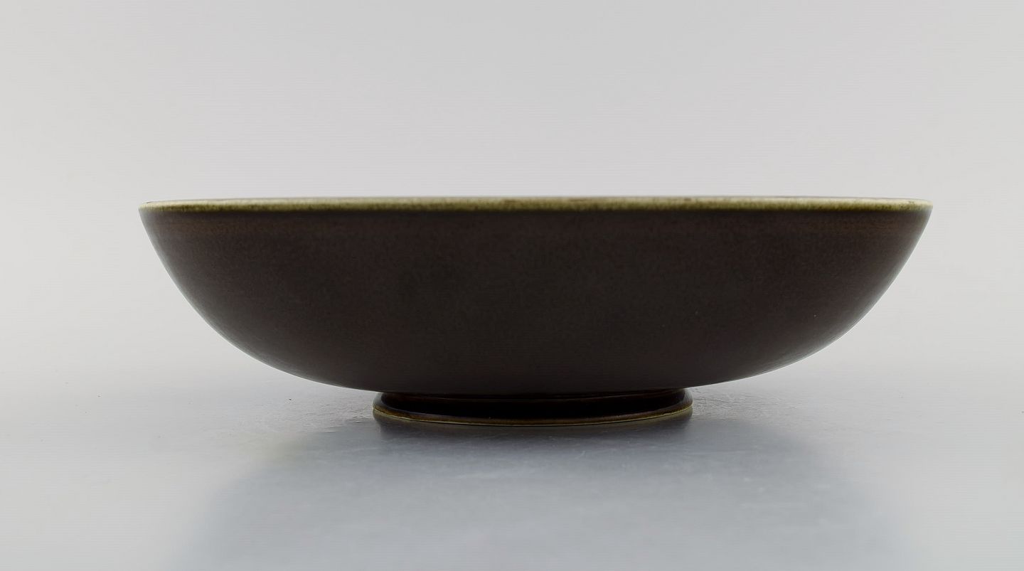 Rund Rörstrand skål i glaseret keramik. Smuk glasur i brune nuancer. Midt 1900-tallet.