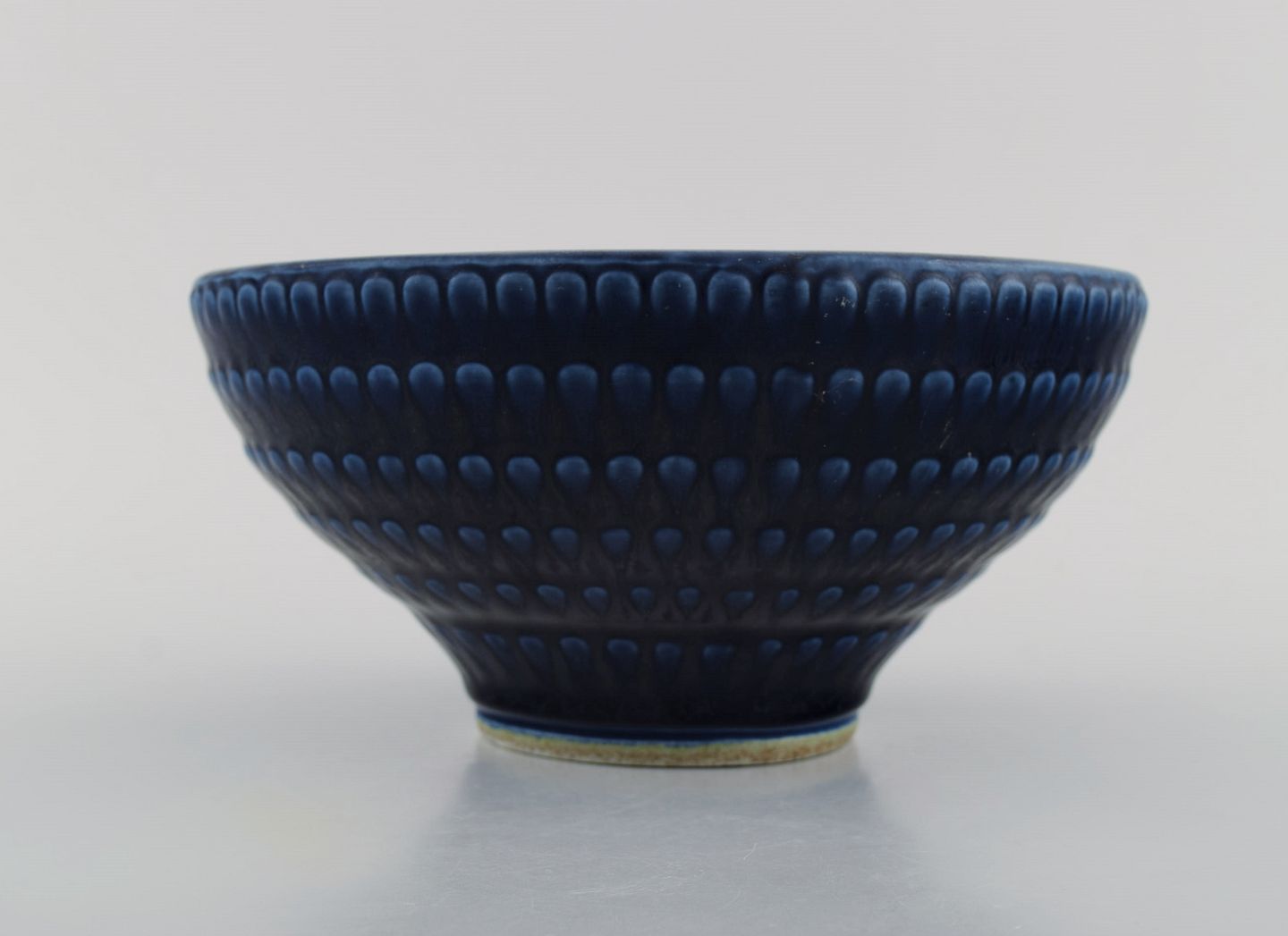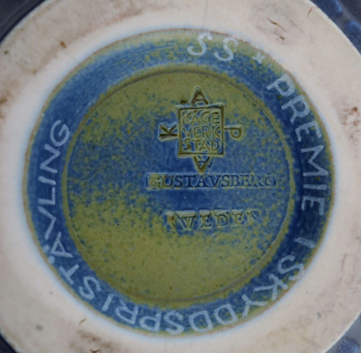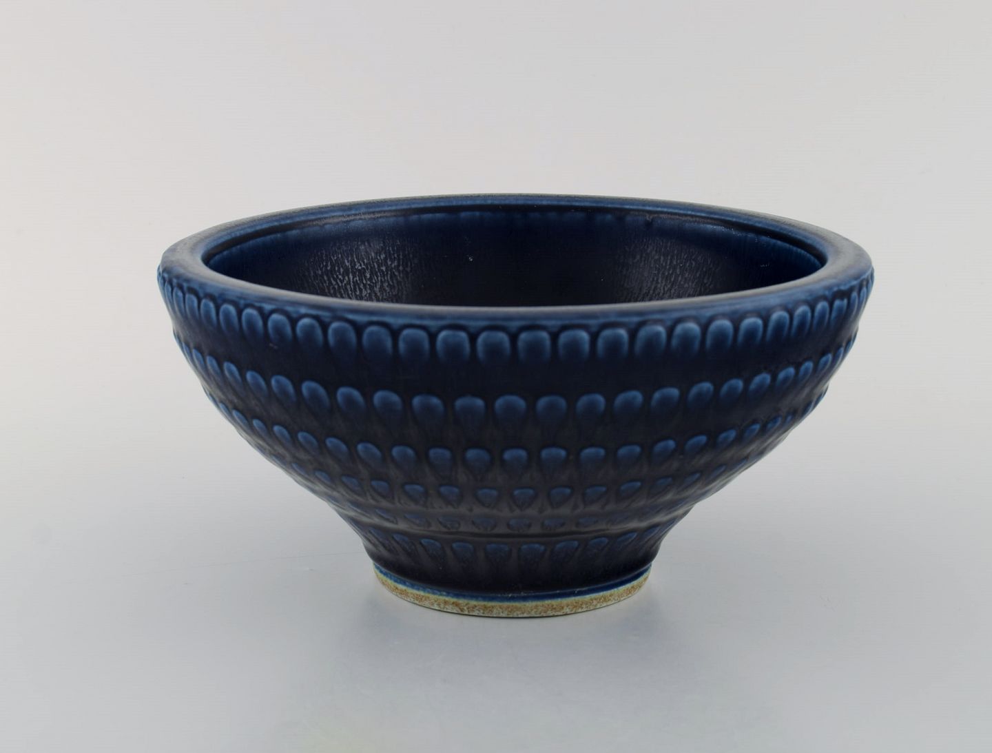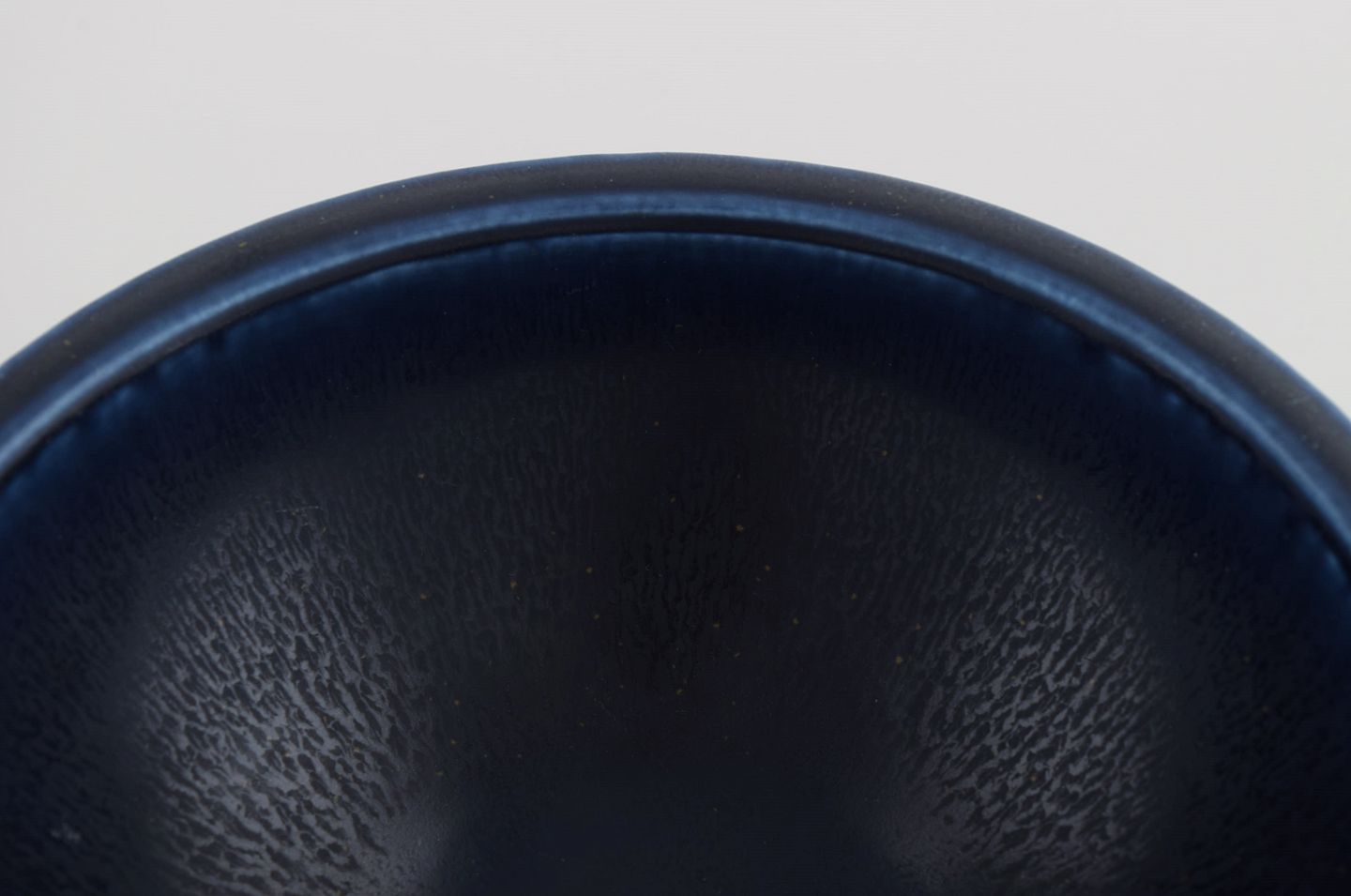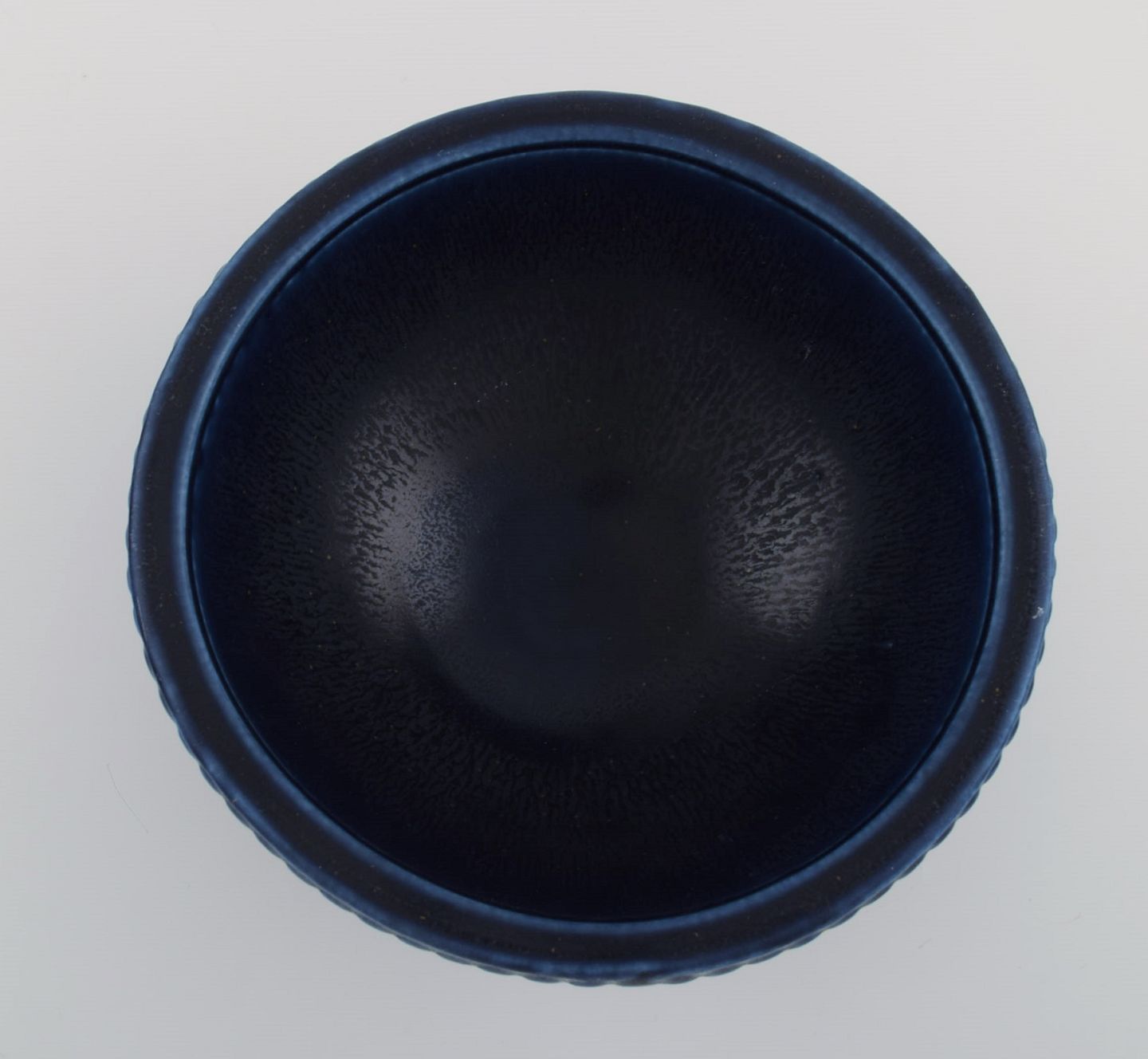 Wilhelm Kåge (1889-1960) for Gustavsberg. Large bowl in glazed stoneware. Beautiful glaze in blue / brown shades. Mid-20th century.