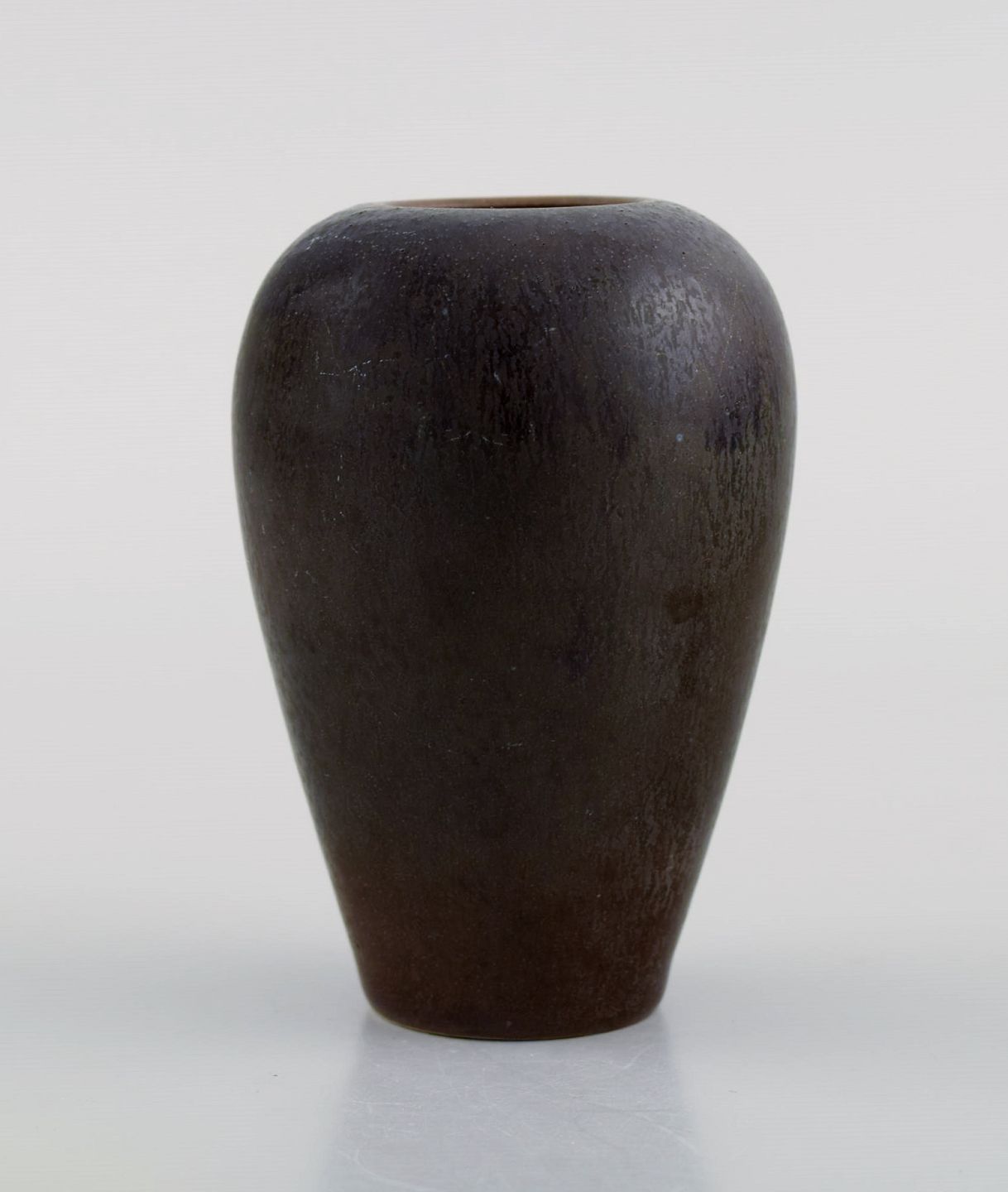 Gunnar Nylund for Rörstrand. Vase i glaseret keramik. Smuk glasur i brune nuancer. Midt 1900-tallet.