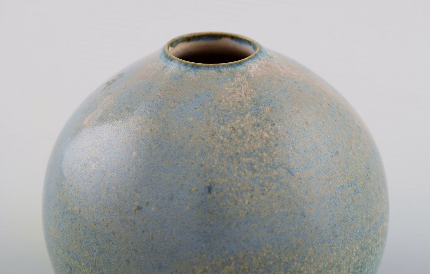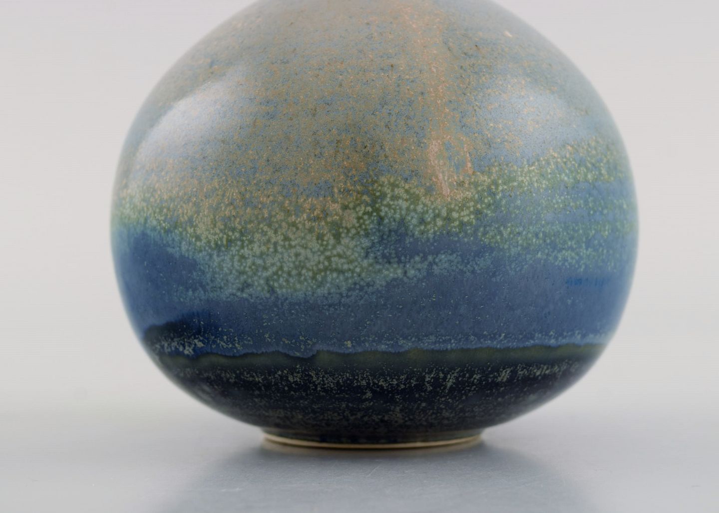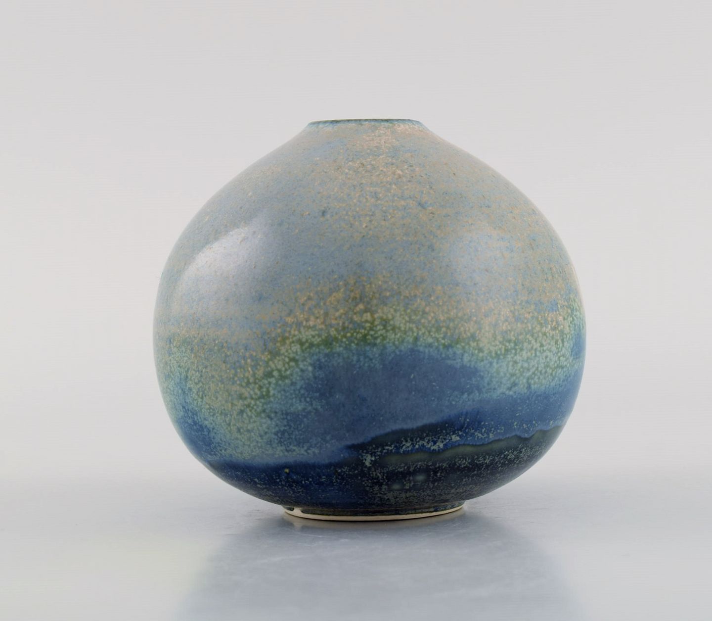 Swedish ceramicist. Unique vase in glazed ceramics. Beautiful speckled glaze in blue and green shades. Late 20th century. Measures: 10.2 x 9 cm. In excellent condition. Signed.