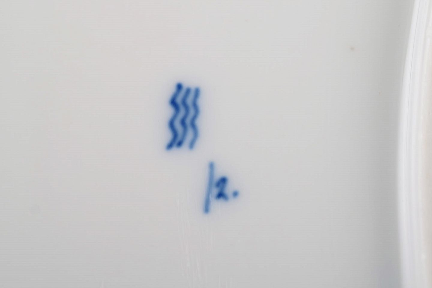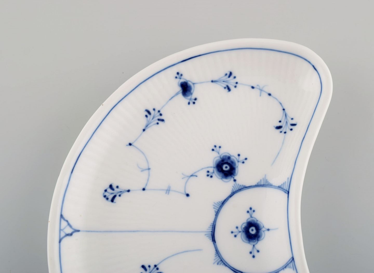 Antikt Royal Copenhagen Musselmalet Riflet fad. Sjælden model. Midt 1800-tallet. Måler: 22 x 13,5 cm. I flot stand. Signeret. 1. Sortering.