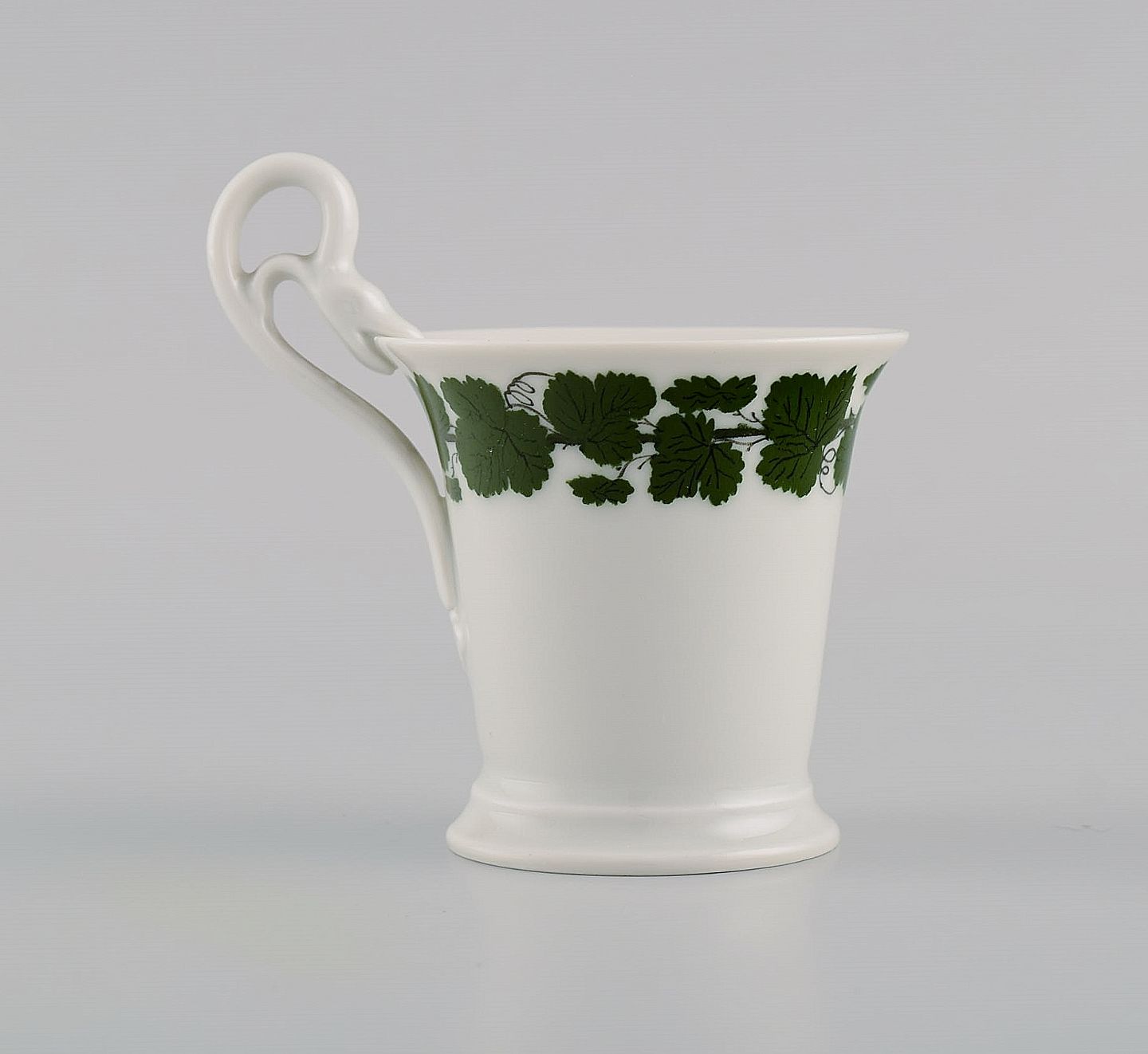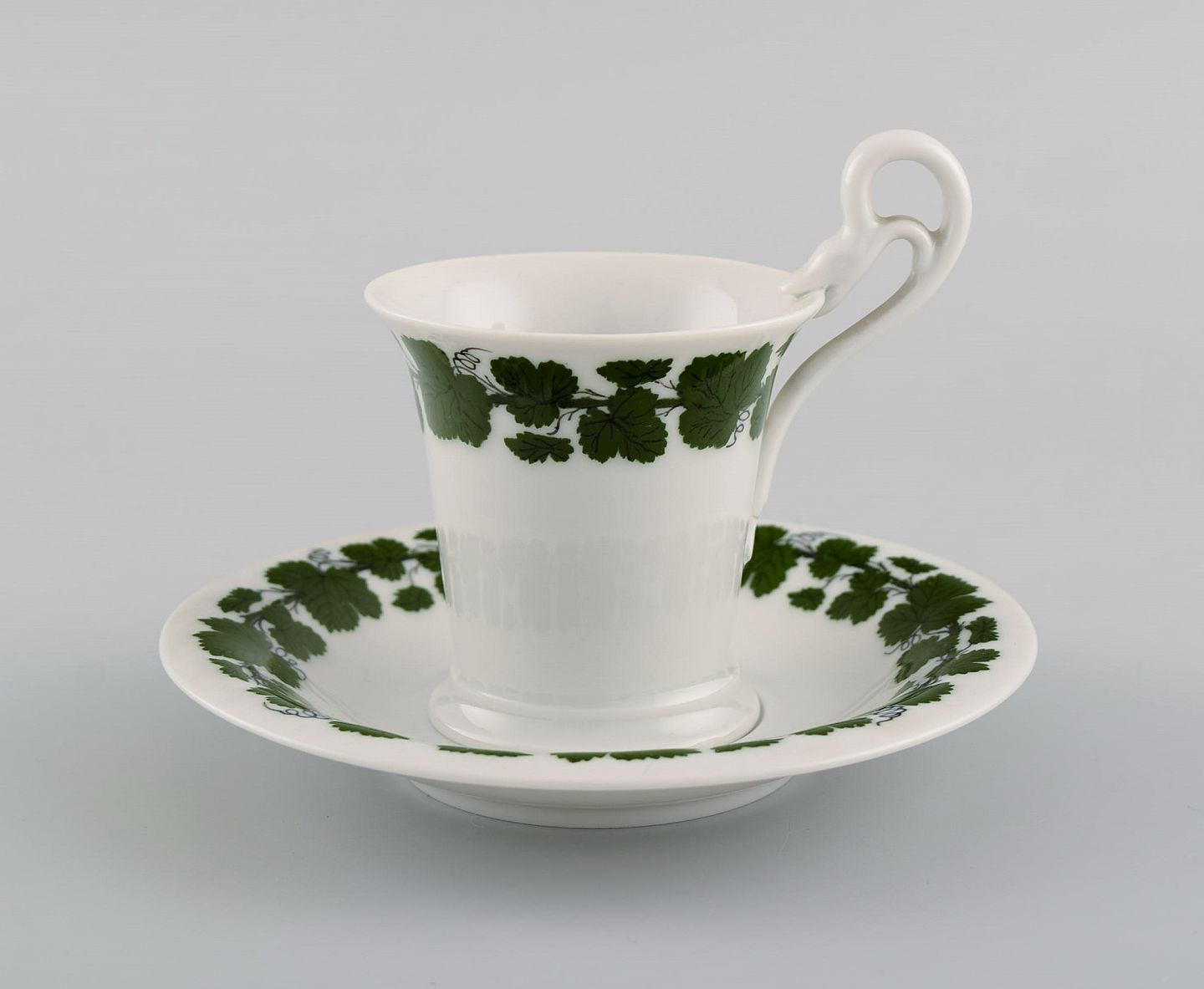 Seks Meissen Green Ivy Vine Leaf kaffekopper med underkopper i håndmalet porcelæn. 1900-tallet.