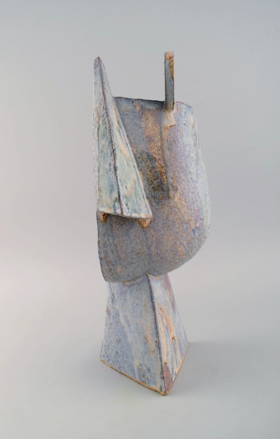 Christina Muff, dansk samtidskeramiker (f. 1971). Stor kubistisk unika skulptur i gyldent stentøjsler med silkemat glasur. "Silence is golden".