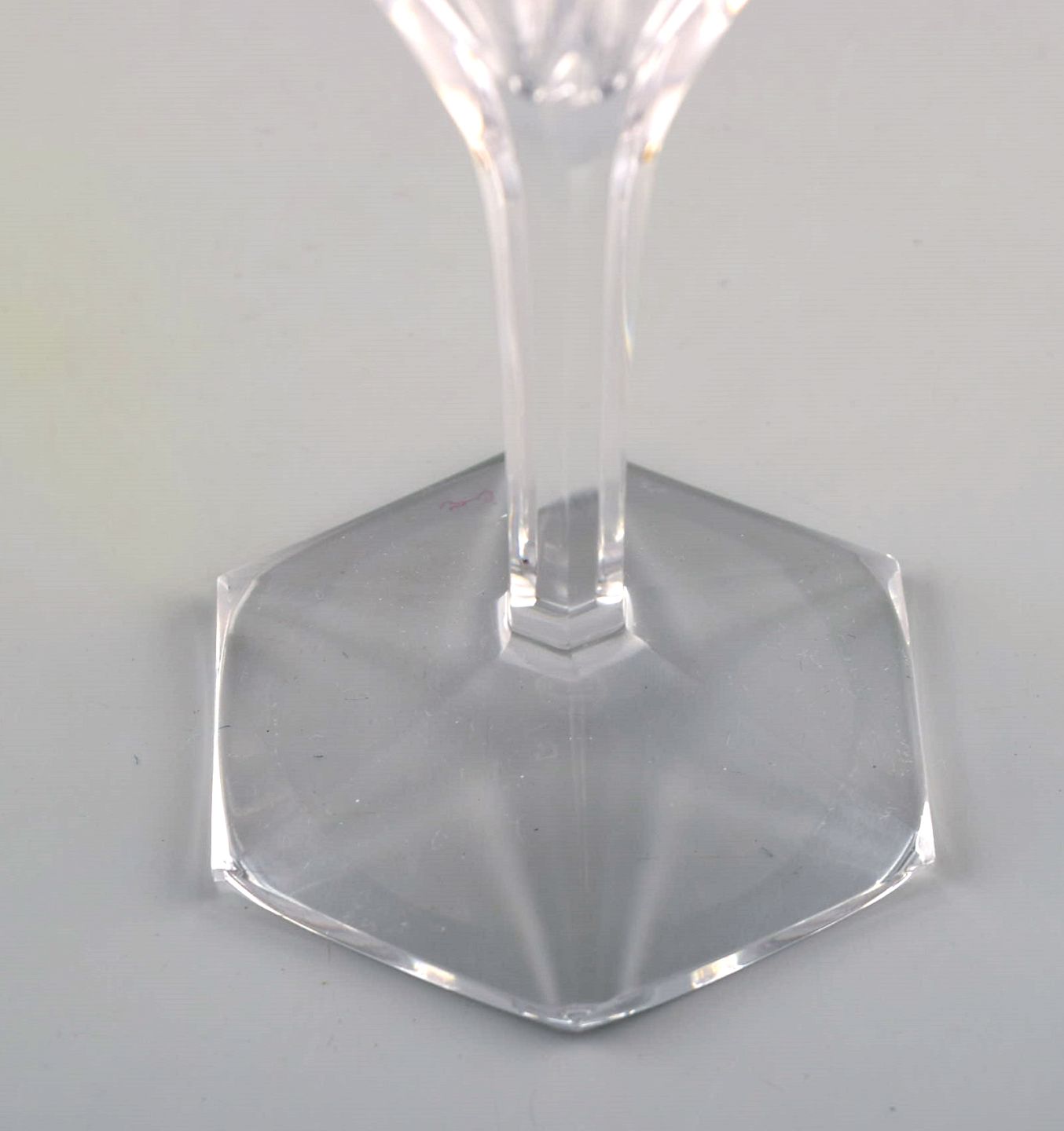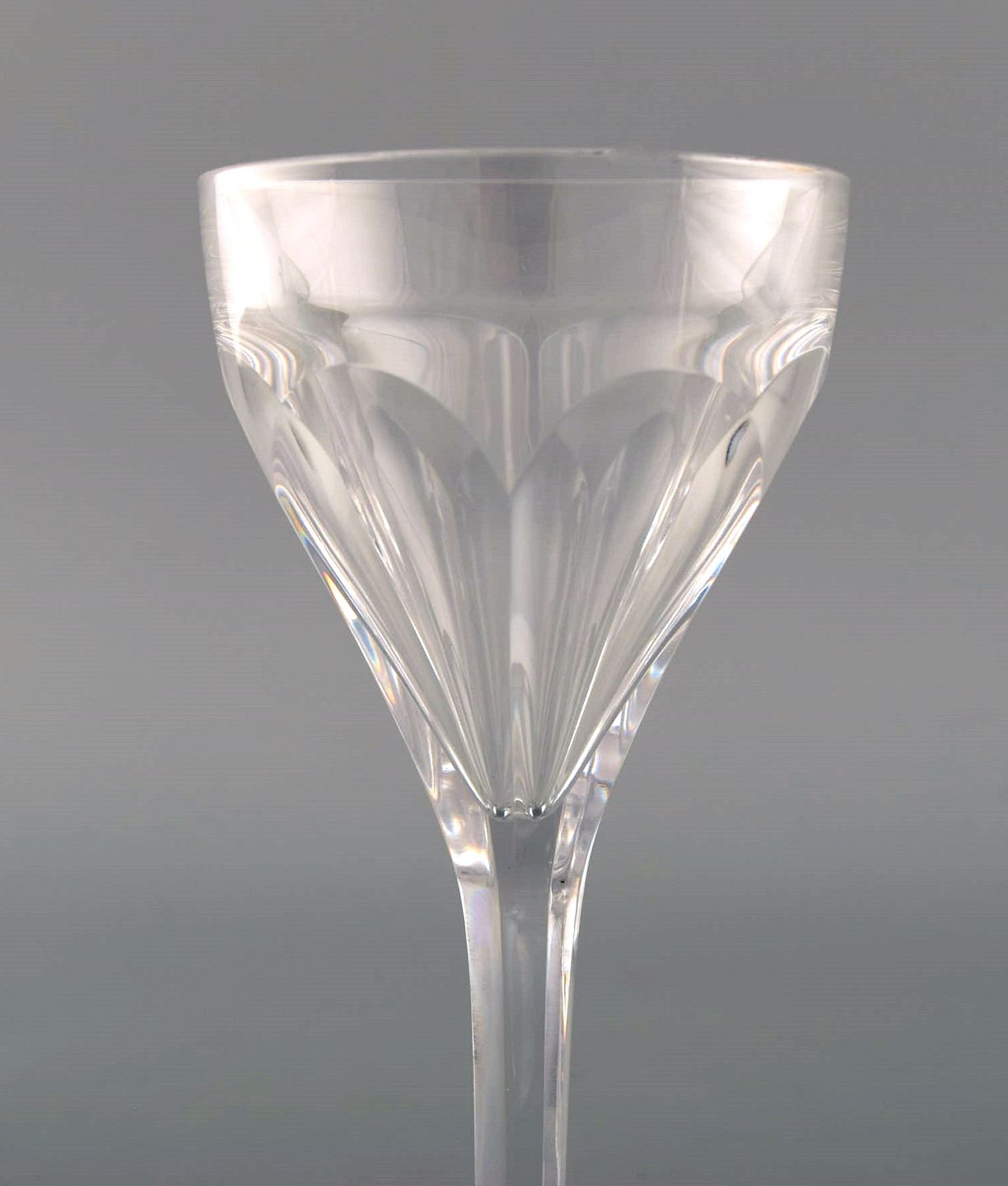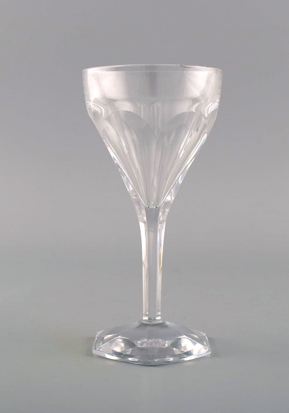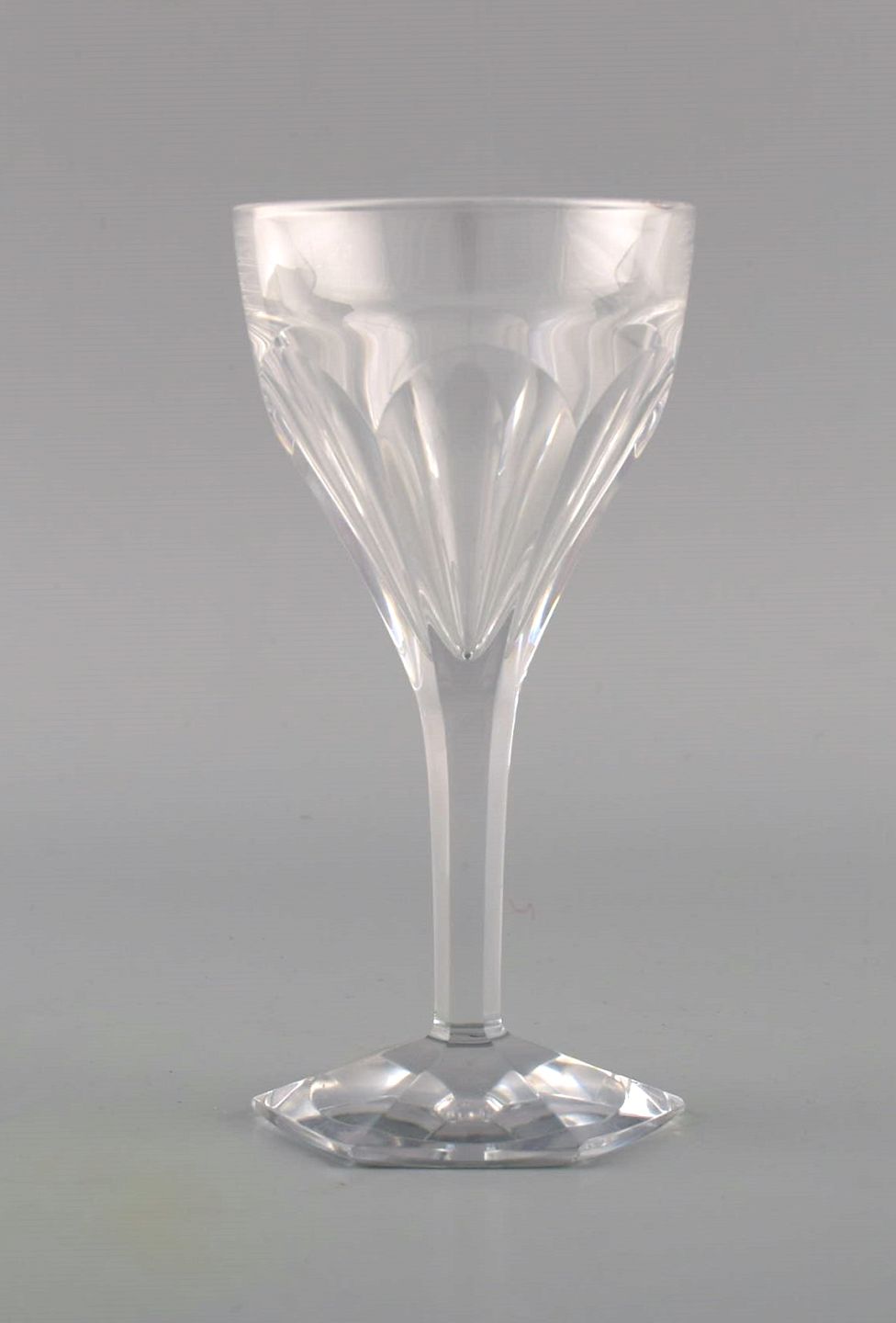 Val St. Lambert, Belgien. Otte Legagneux hvidvinsglas i klart mundblæst krystalglas. Midt 1900-tallet. Måler: 14 x 7 cm I perfekt stand.