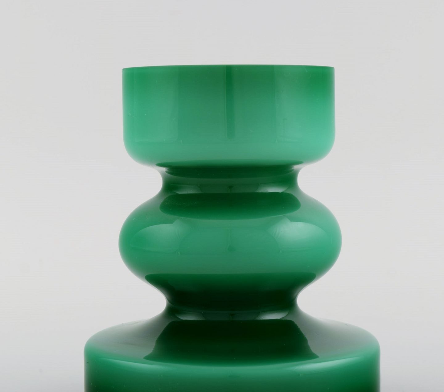P.O. Ström for Alsterfors. Vase i grønt mundblæst kunstglas. Svensk design, 1960/70'erne. Måler: 15 x 12,5 cm. I flot stand. Mærkat.