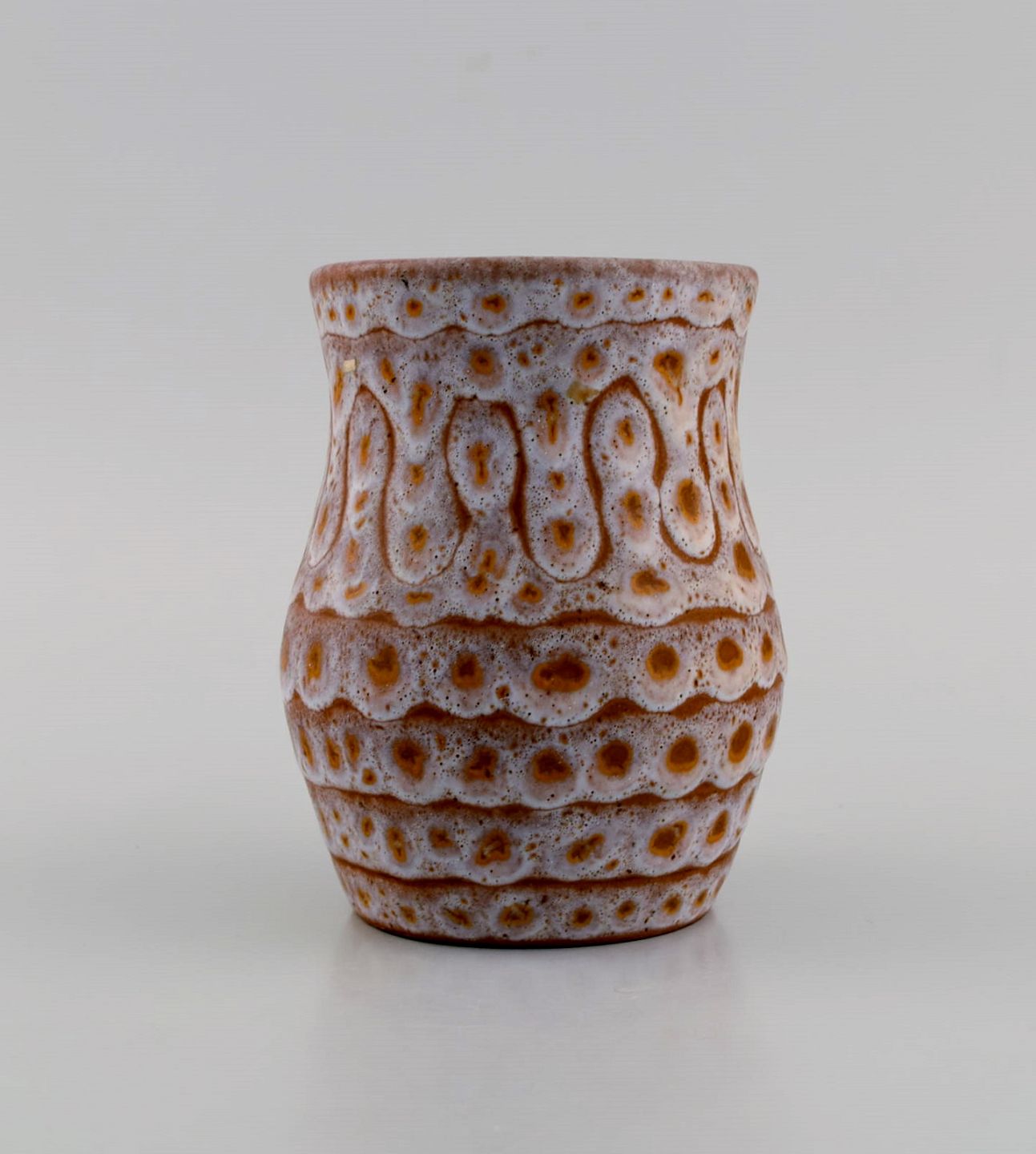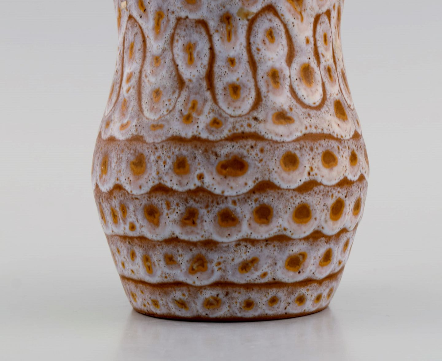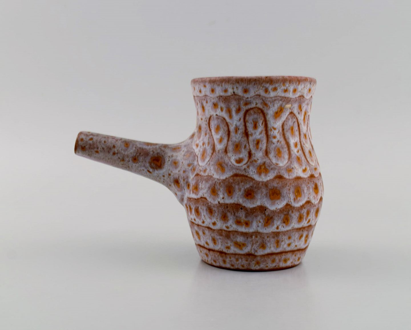 Europæisk studiokeramiker. Unika kande i glaseret stentøj. Smuk glasur i lyse jordnuancer. 1960/70'erne. Måler: 17,5 x 12 cm. I flot stand. Signeret.