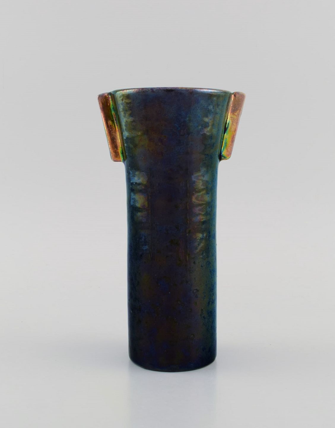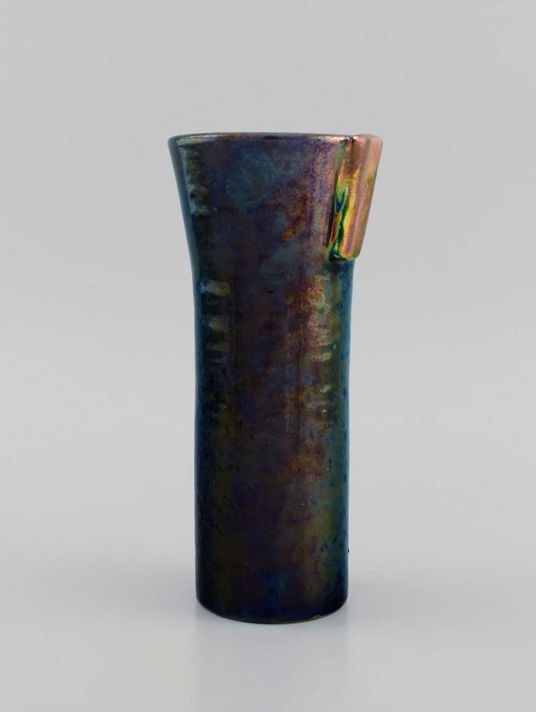 Mobach, Holland. Unika vase i glaseret keramik. Smuk lustreglasur. 1920/30'erne. Måler: 19 x 10,3 cm. I flot stand. Stemplet.