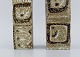 Nils Thorsson og Johanne Gerber for Aluminia, Royal Copenhagen. Tre Baca vaser med mønstret glasur i sand og lyse brune nuancer. 1970'erne. Største måler: 22 x 7,5 cm. I flot stand. Stemplet. 1. Sortering.