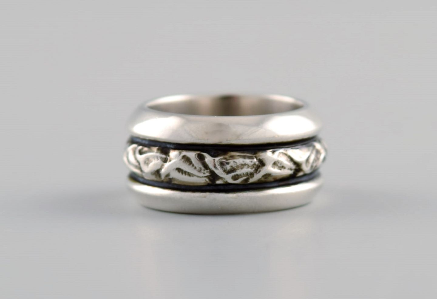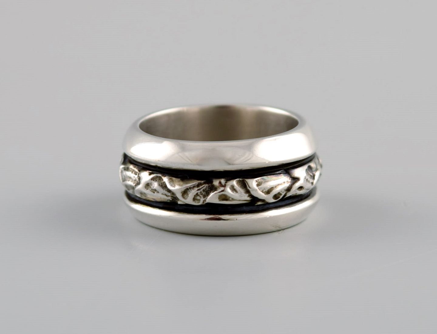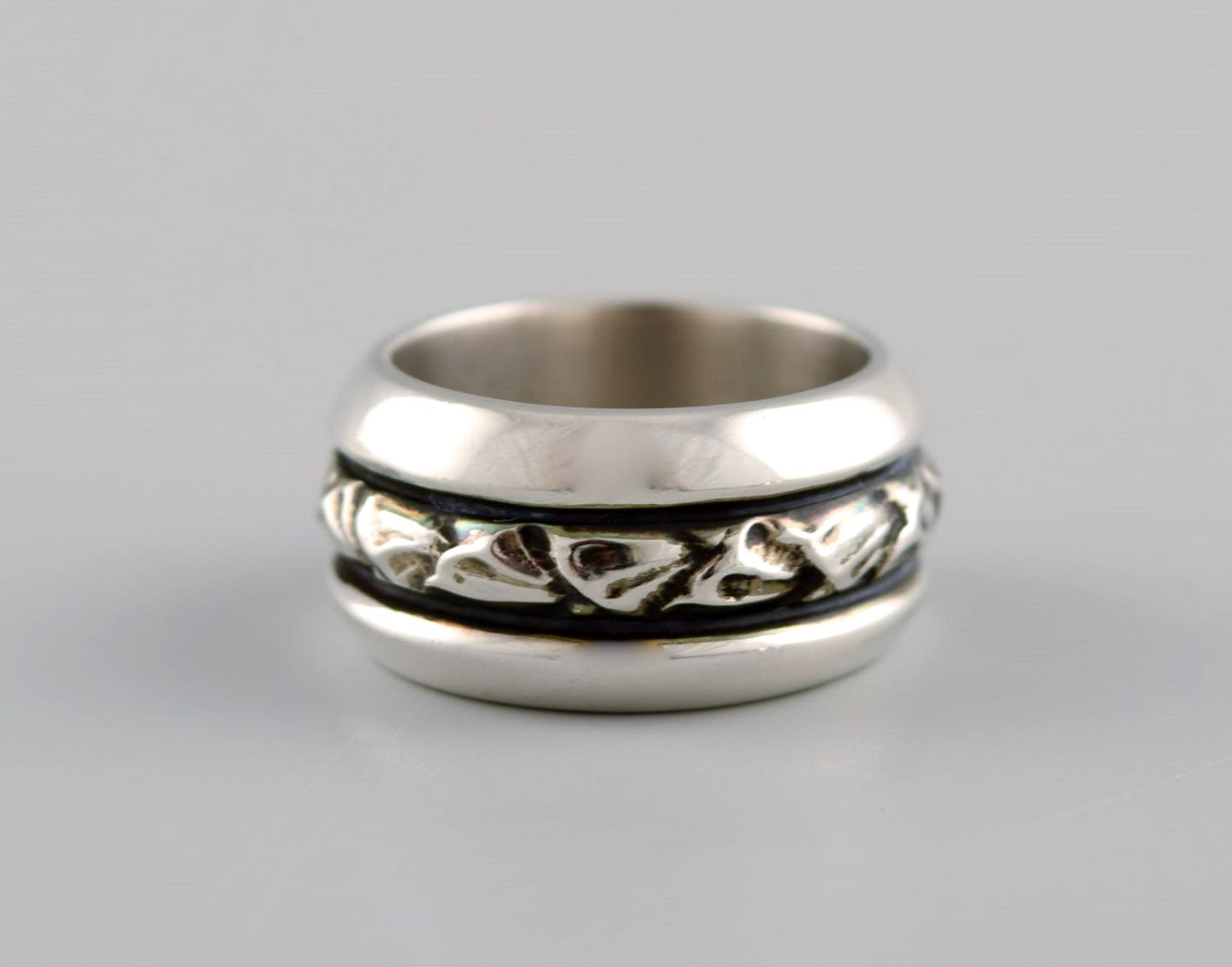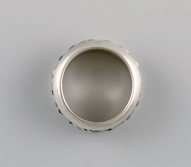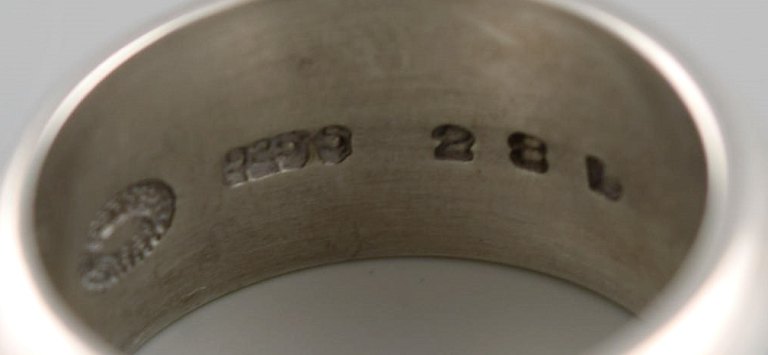 Georg Jensen ring i sterlingsølv. Model 28D. Sent 1900-tallet. Bredde: 10 mm. Diameter: 15,5 mm. I flot stand. Stemplet. I de fleste tilfælde kan vi mod et gebyr (kr. 300) pr ring, få ændret størrelsen.
