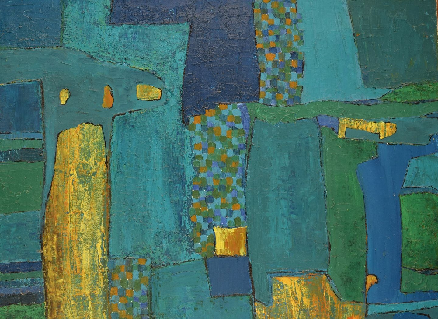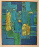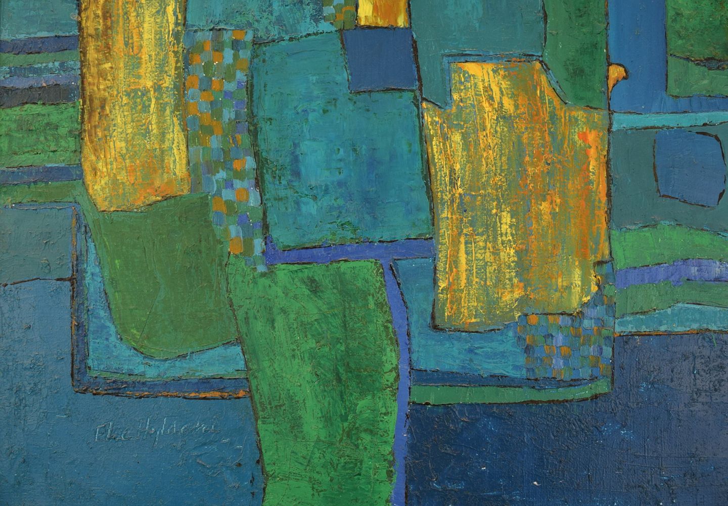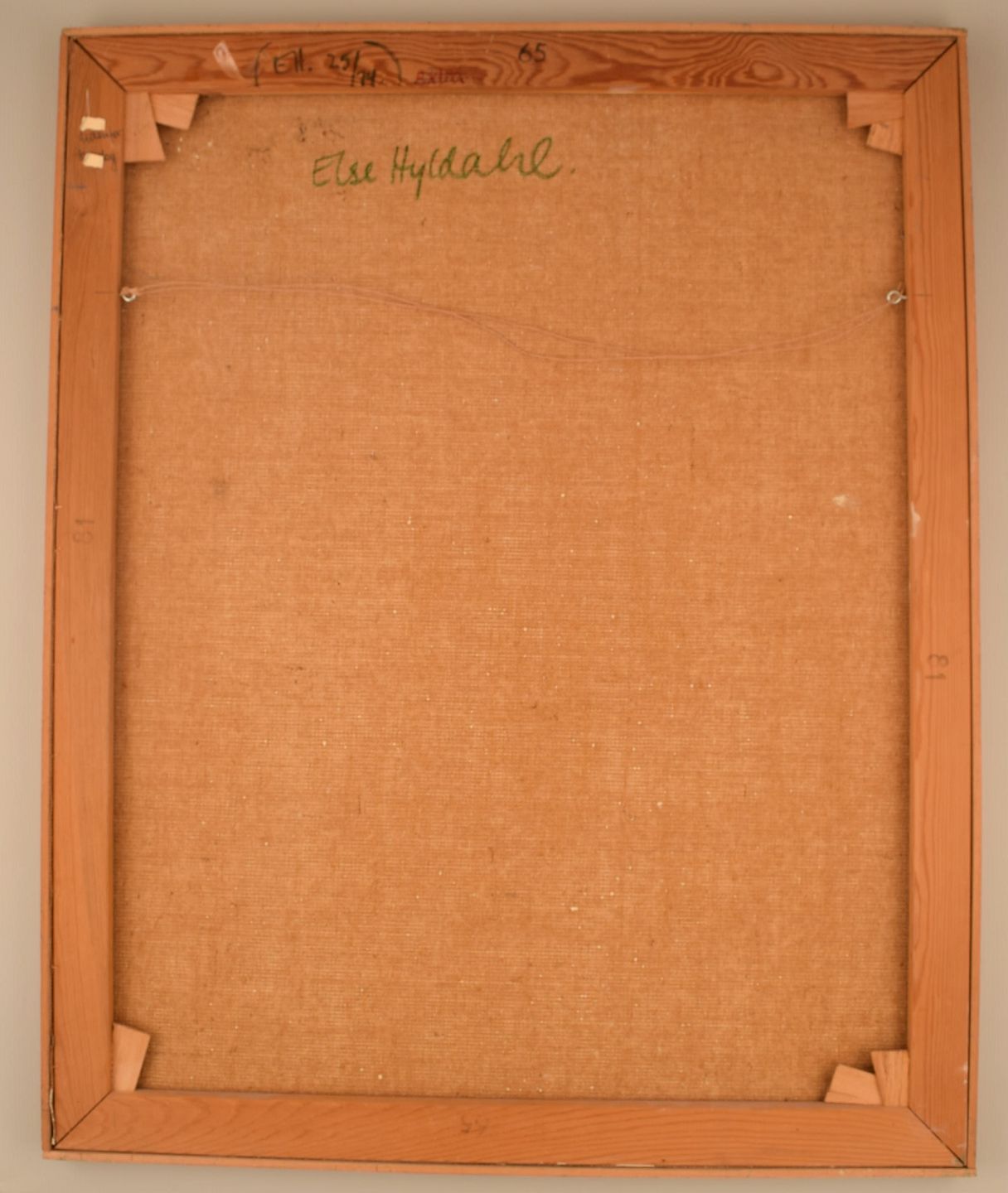 Else Hyldahl (f. 1930), dansk kunstner. Olie på lærred. Abstrakt komposition. Dateret 1974. Lærredet måler: 82 x 65,5 cm. Rammen måler: 0,5 cm. I flot stand. Signeret og dateret.