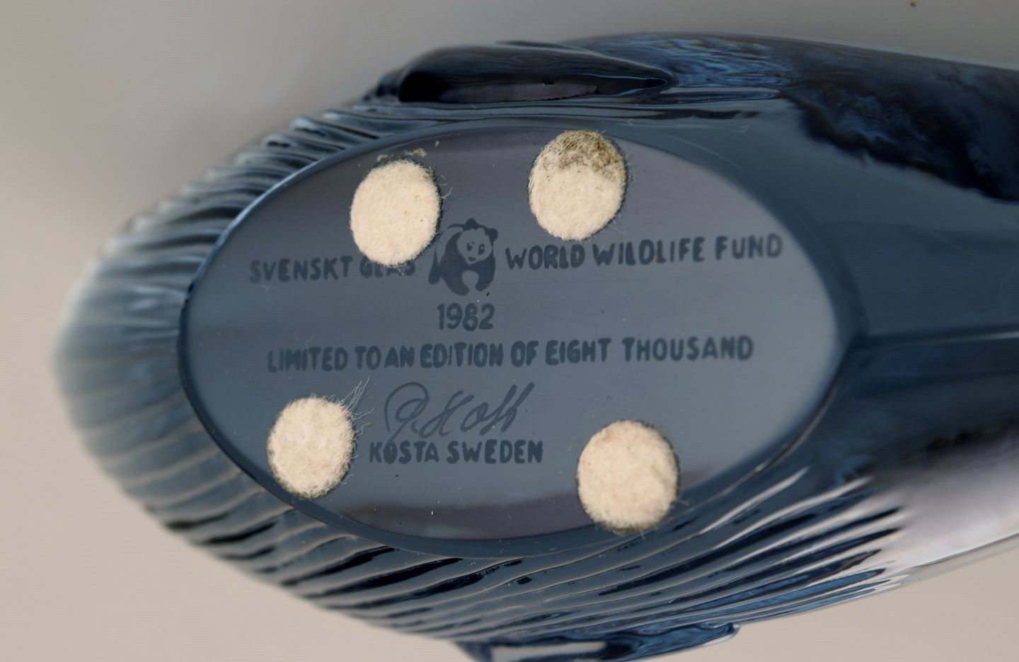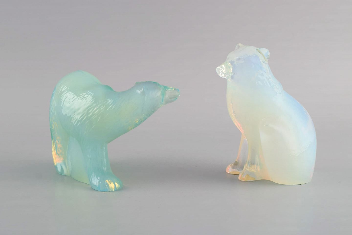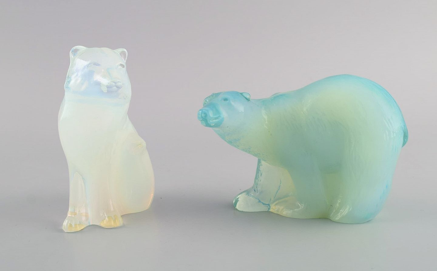 Paul Hoff for Swedish glass. Four figures in art glass. Blue whale, walrus, polar bear and snow fox. WWF. 1980s.