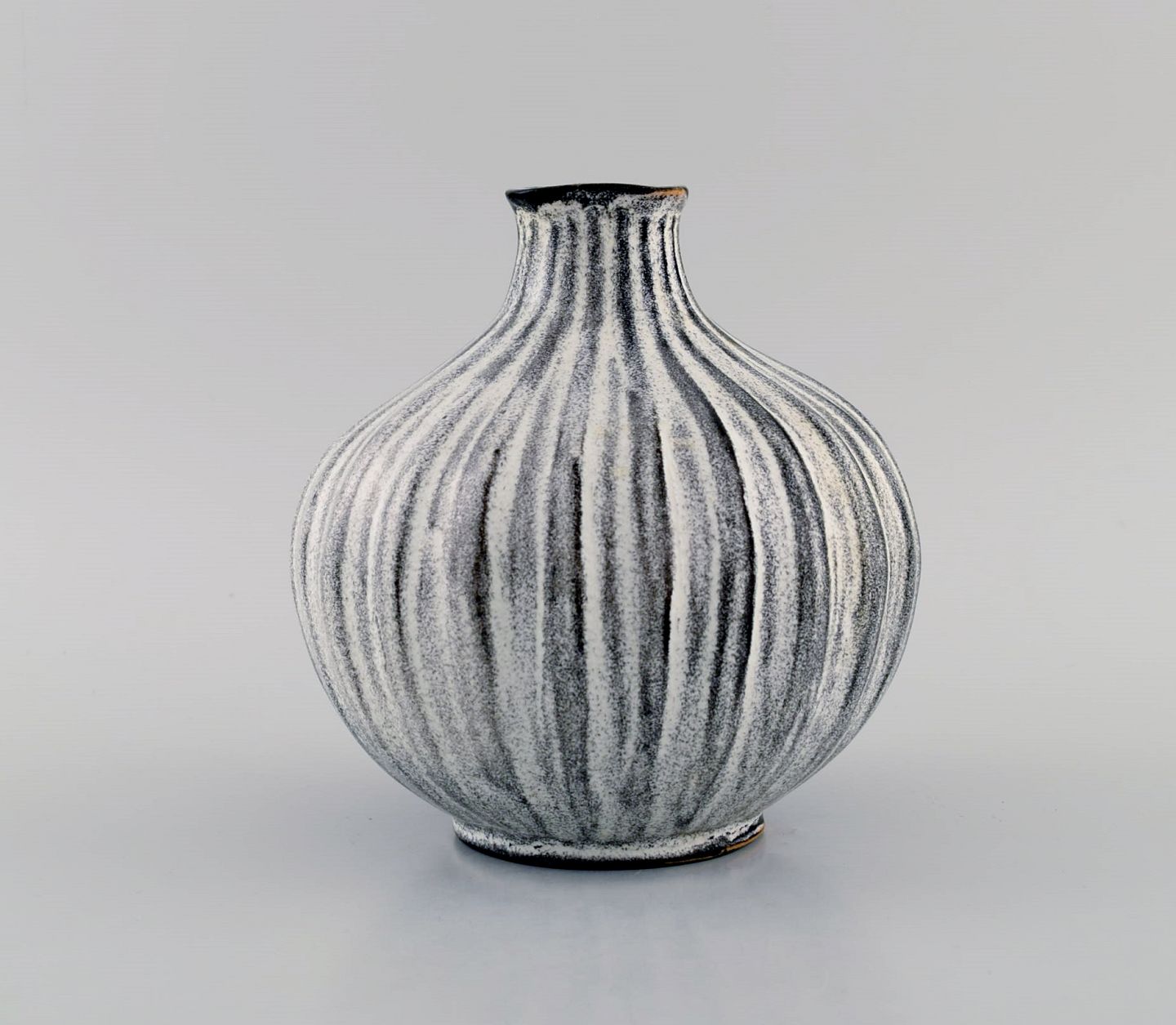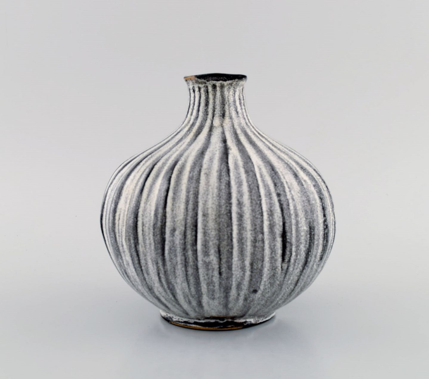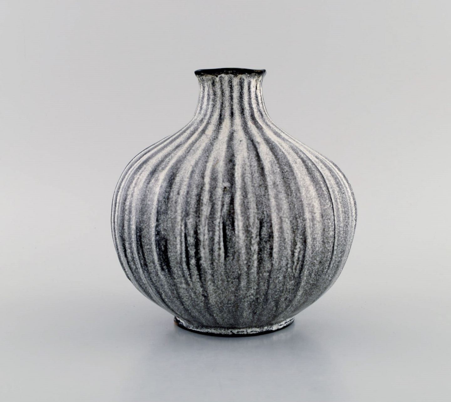 Svend Hammershøi for Kähler, HAK. Løgformet vase i glaseret stentøj. Smuk gråsort dobbeltglasur. 1930/40'erne.