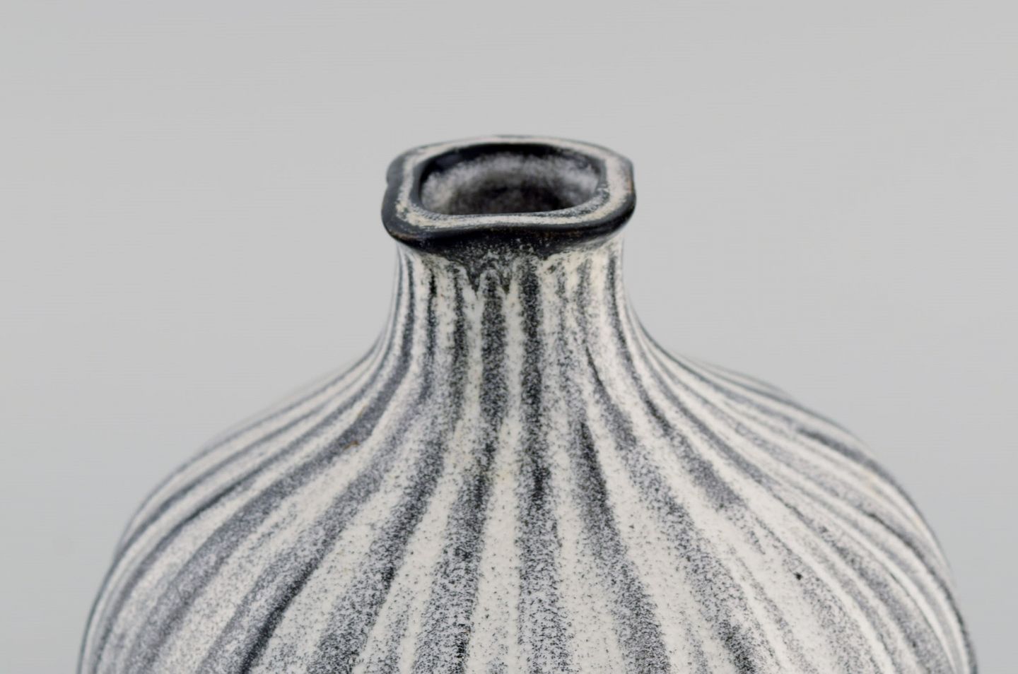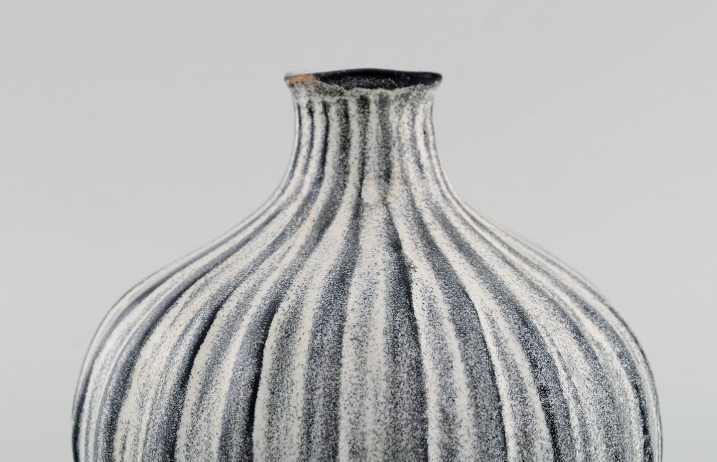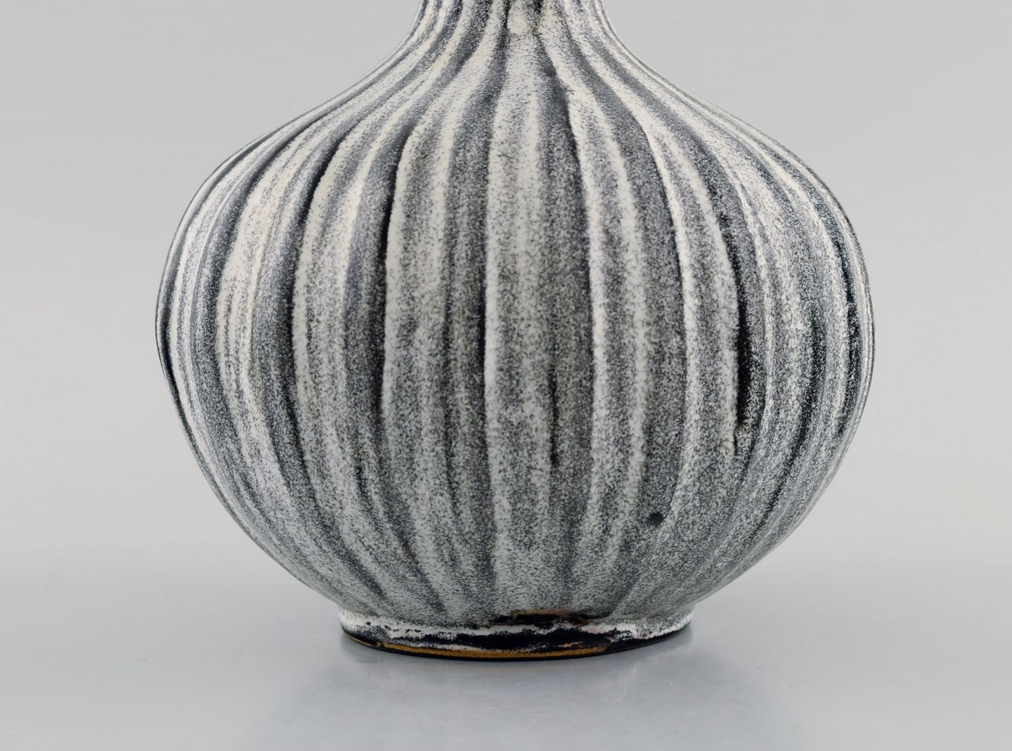 Svend Hammershøi for Kähler, HAK. Løgformet vase i glaseret stentøj. Smuk gråsort dobbeltglasur. 1930/40'erne.