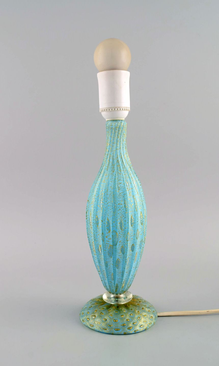 Murano bordlampe i turkis mundblæst kunstglas med indlagte bobler. Italiensk design, 1960/70'erne. Måler: 25 x 11 cm (ex fatning). I flot stand.