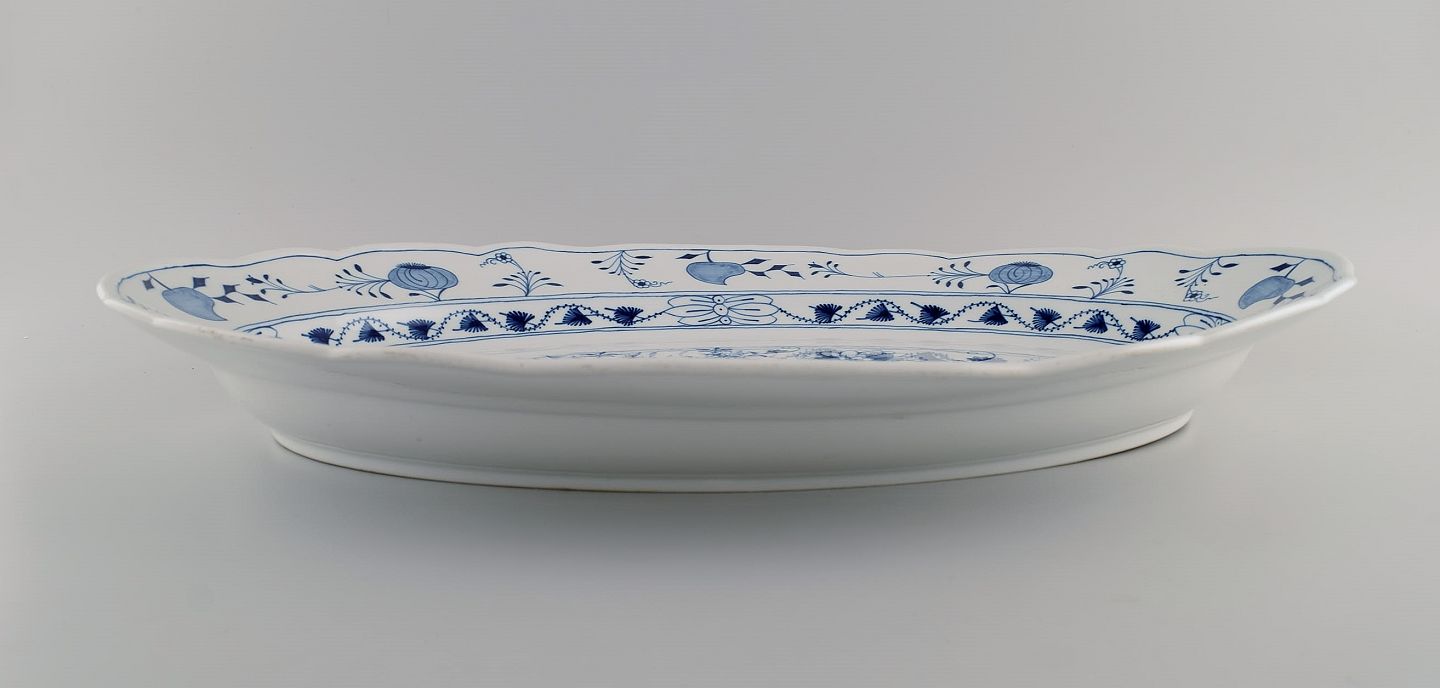 Gigantisk antikt Meissen Løgmønstret serveringsfad i håndmalet porcelæn. Sent 1800-tallet. Måler: 55 x 42 x 6,5 cm. I flot stand. Stemplet. 1. Sortering.