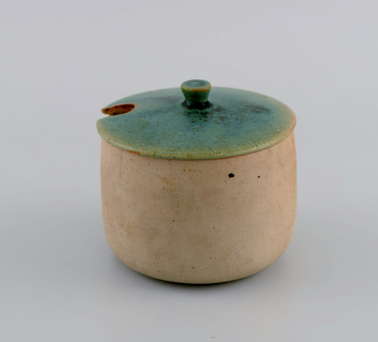 Arne Bang (1901-1983), Danmark. Marmeladekrukke i glaseret keramik. Midt 1900-tallet.