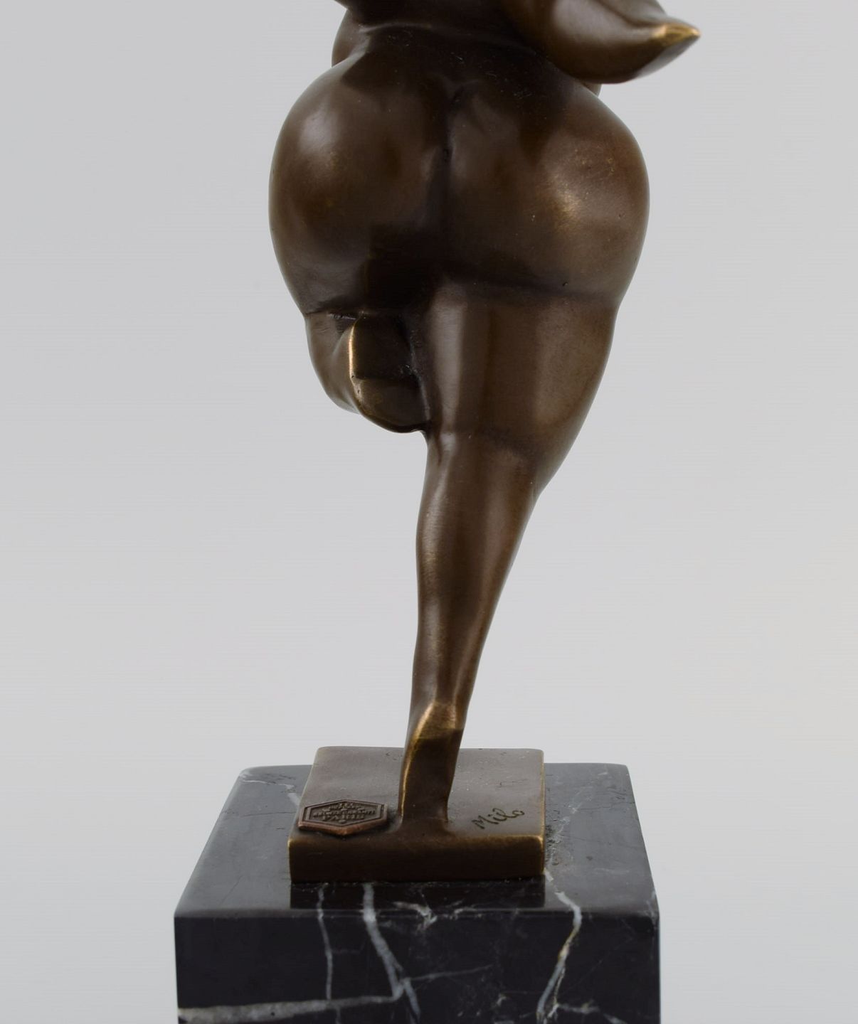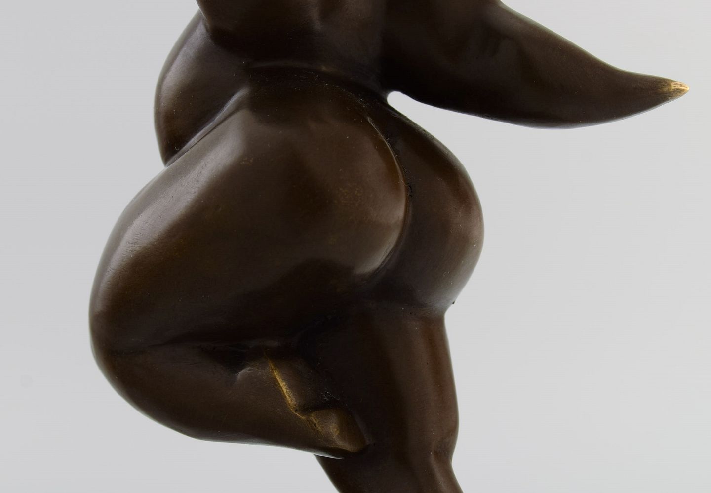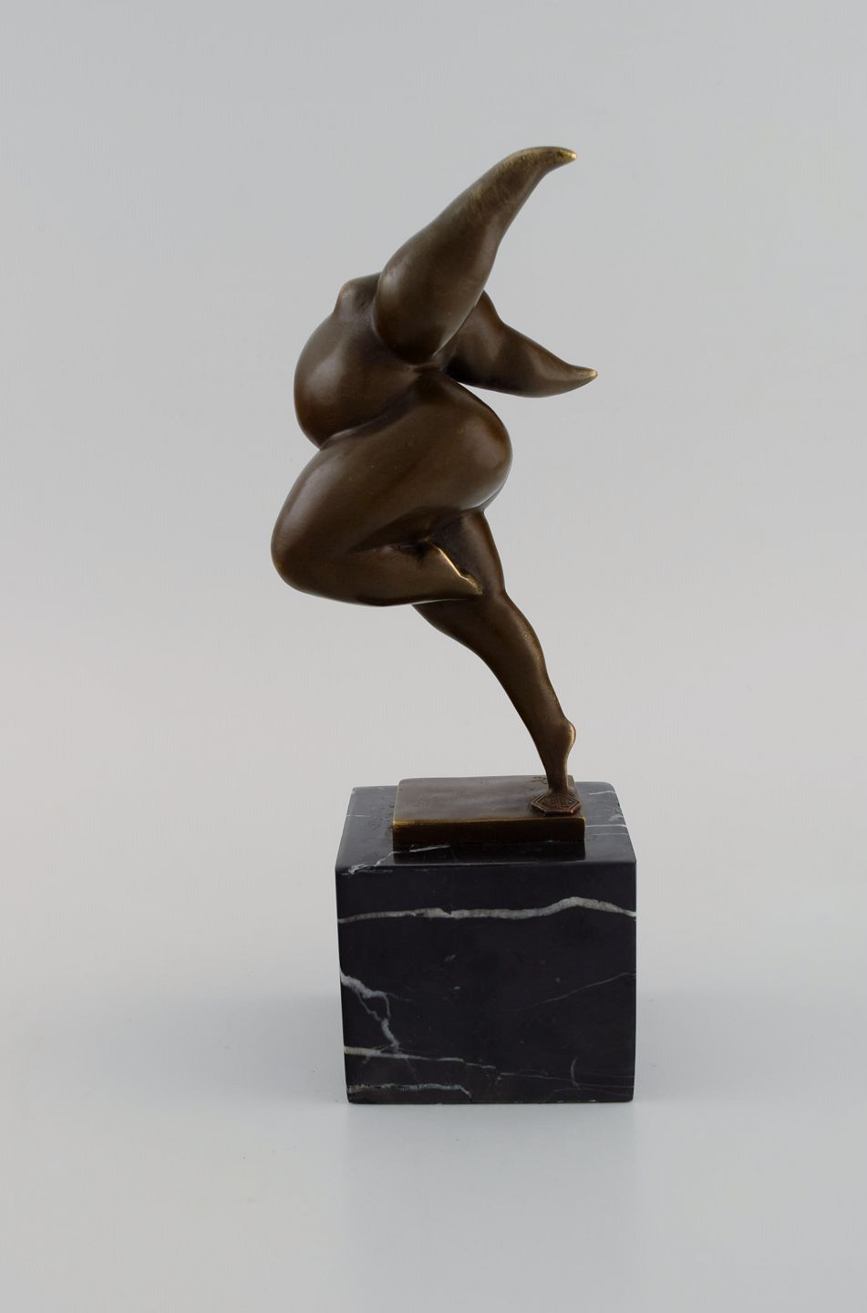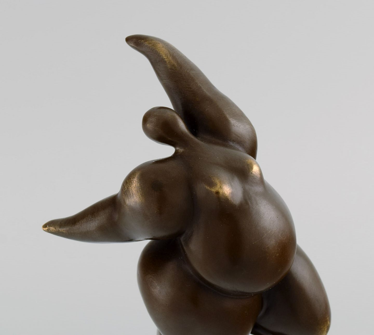 Miguel Fernando Lopez (Milo). Portuguese sculptor. Abstract bronze sculpture of naked woman on marble base. Late 20th century. Measures: 27.5 x 10 cm. In excellent condition. Stamped.