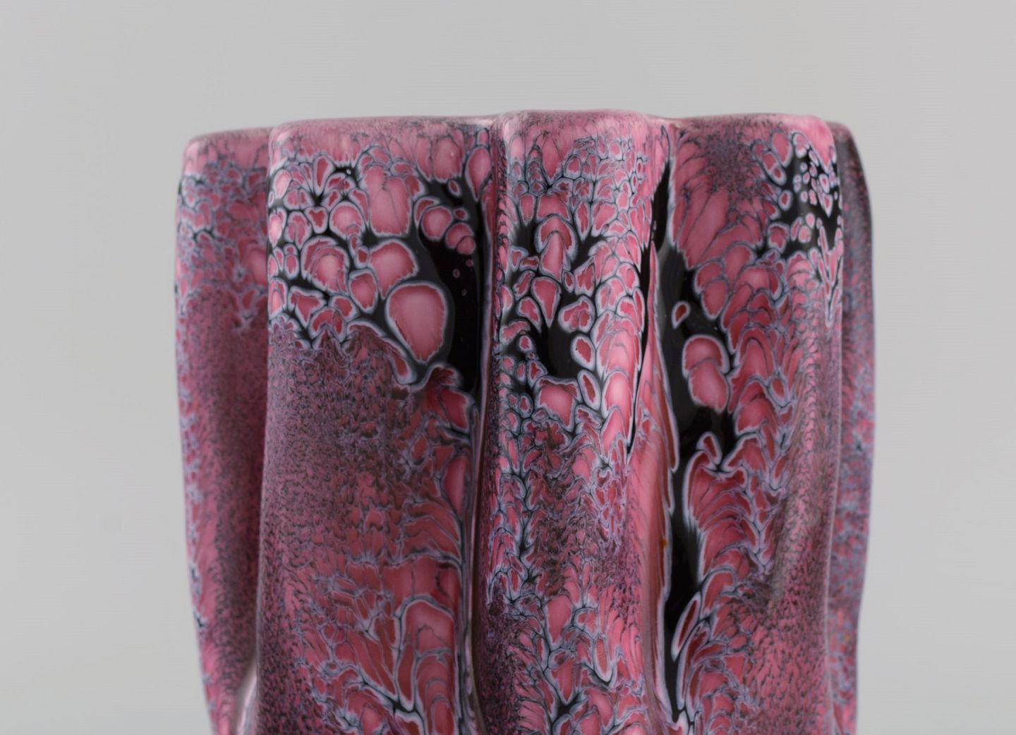 Vallauris vase i glaseret keramik. Smuk krystalglasur i violette toner. Frankrig, 1960'erne. Måler: 20 x 16 cm. I flot stand. Stemplet.