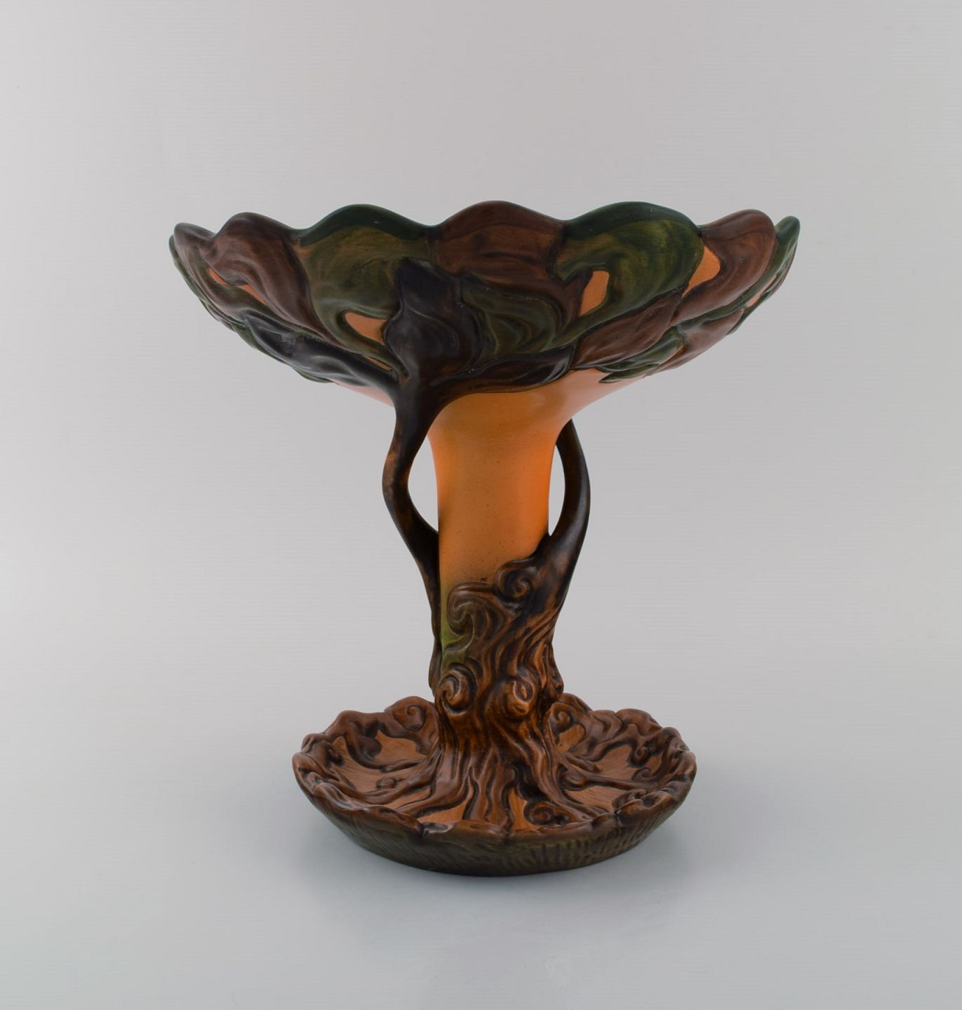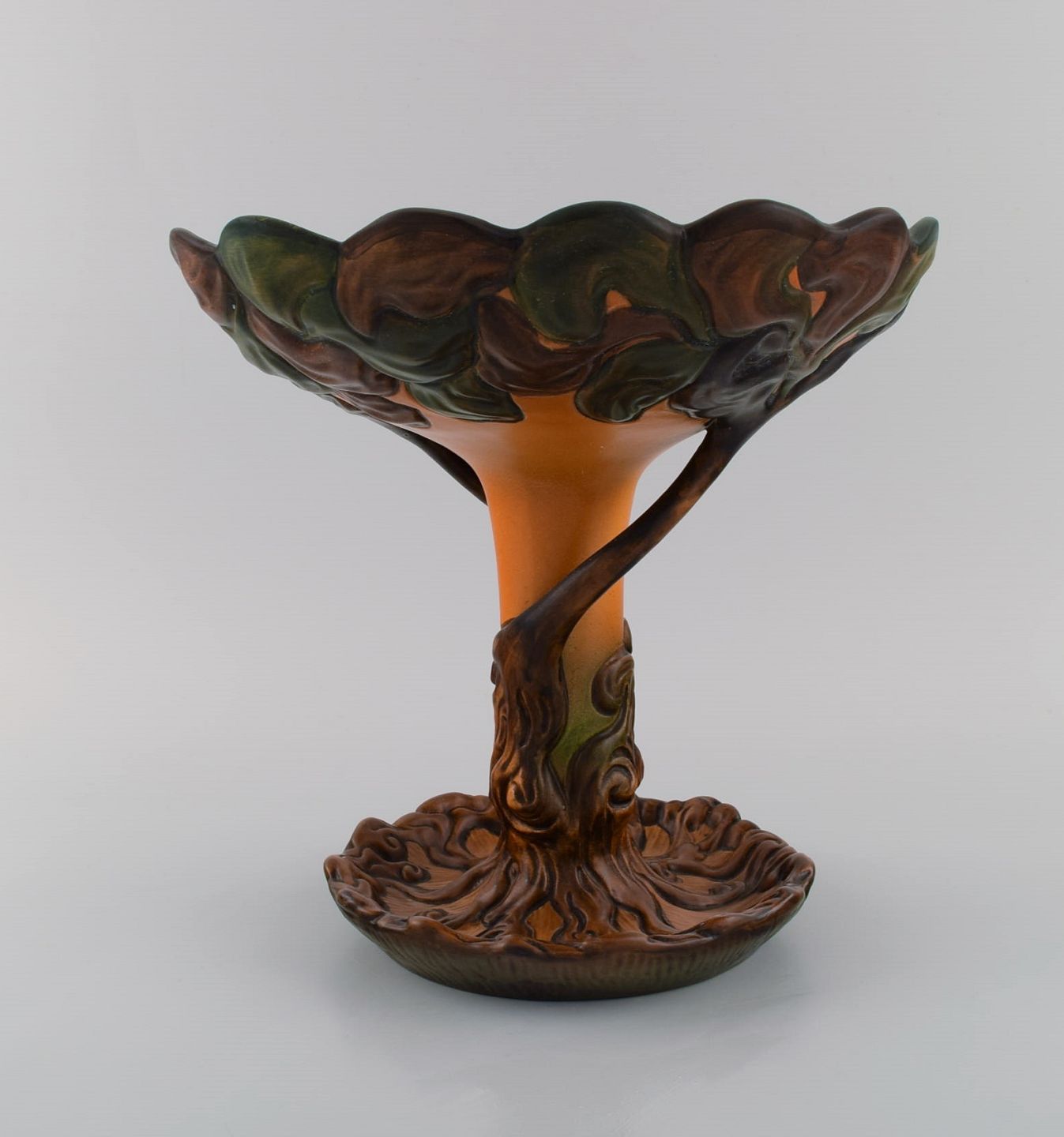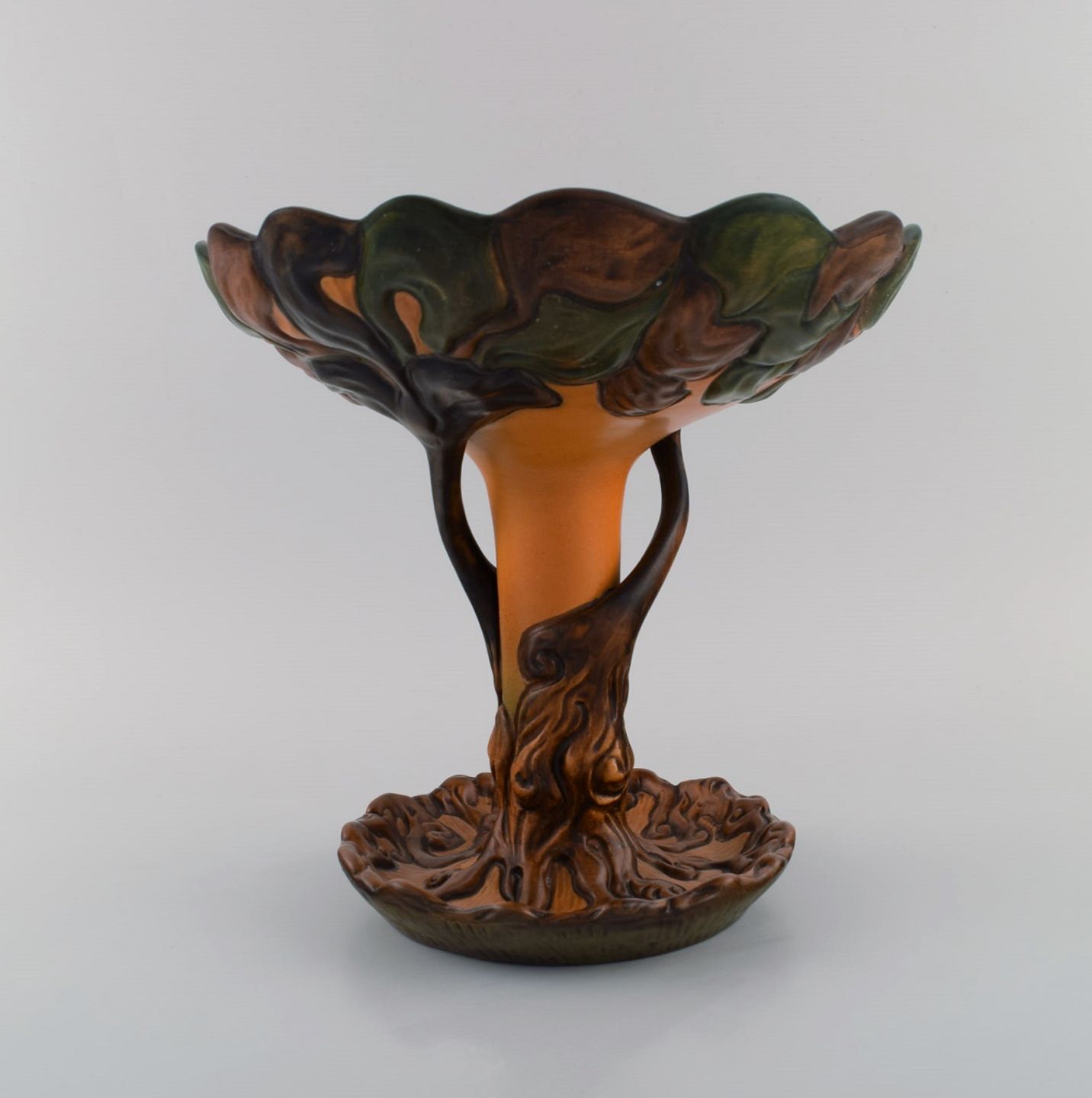 Ipsens Enke, Danmark. Stor og sjælden skønvirke opsats i glaseret keramik formet som et træ. 1920'erne. Modelnummer 181. Måler: 25 x 24,5 cm. I flot stand. Stemplet.