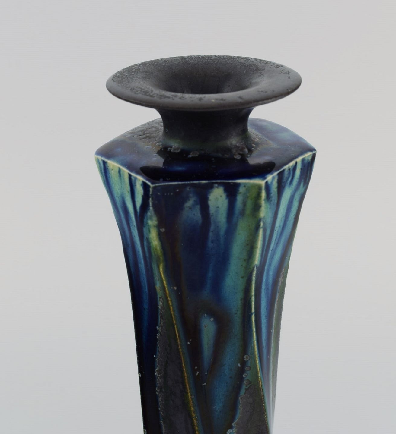 Europæisk studio keramiker. Unika vase i glaseret stentøj. Drejet form. Smuk glasur i dybe blågrønne nuancer. 1920/30'erne.