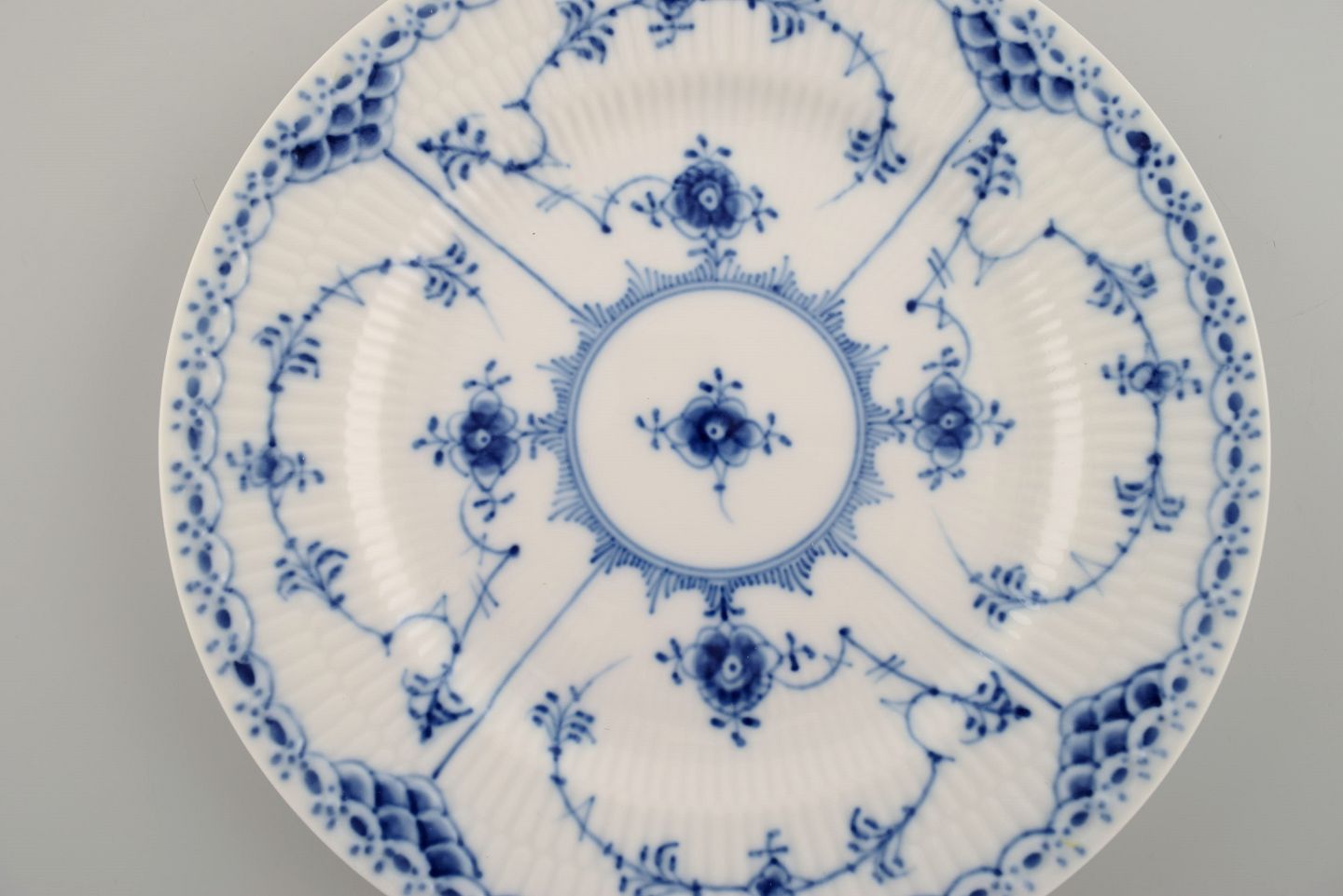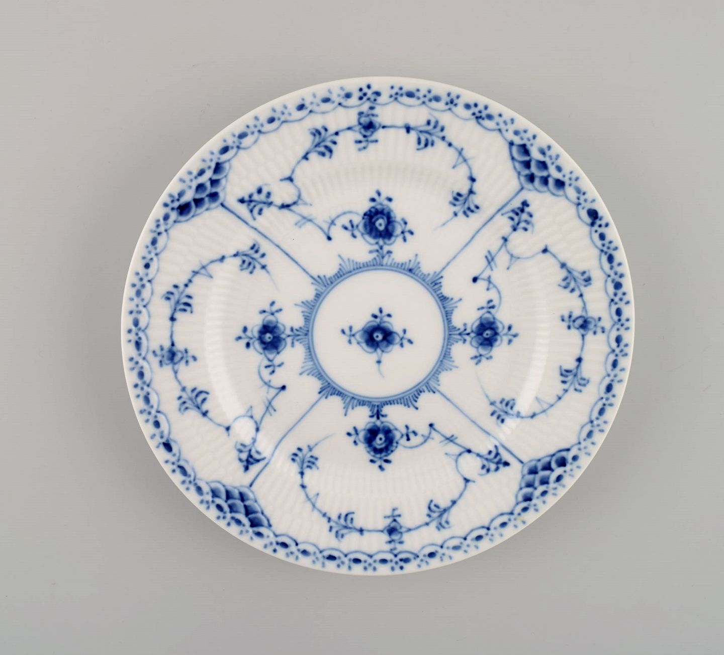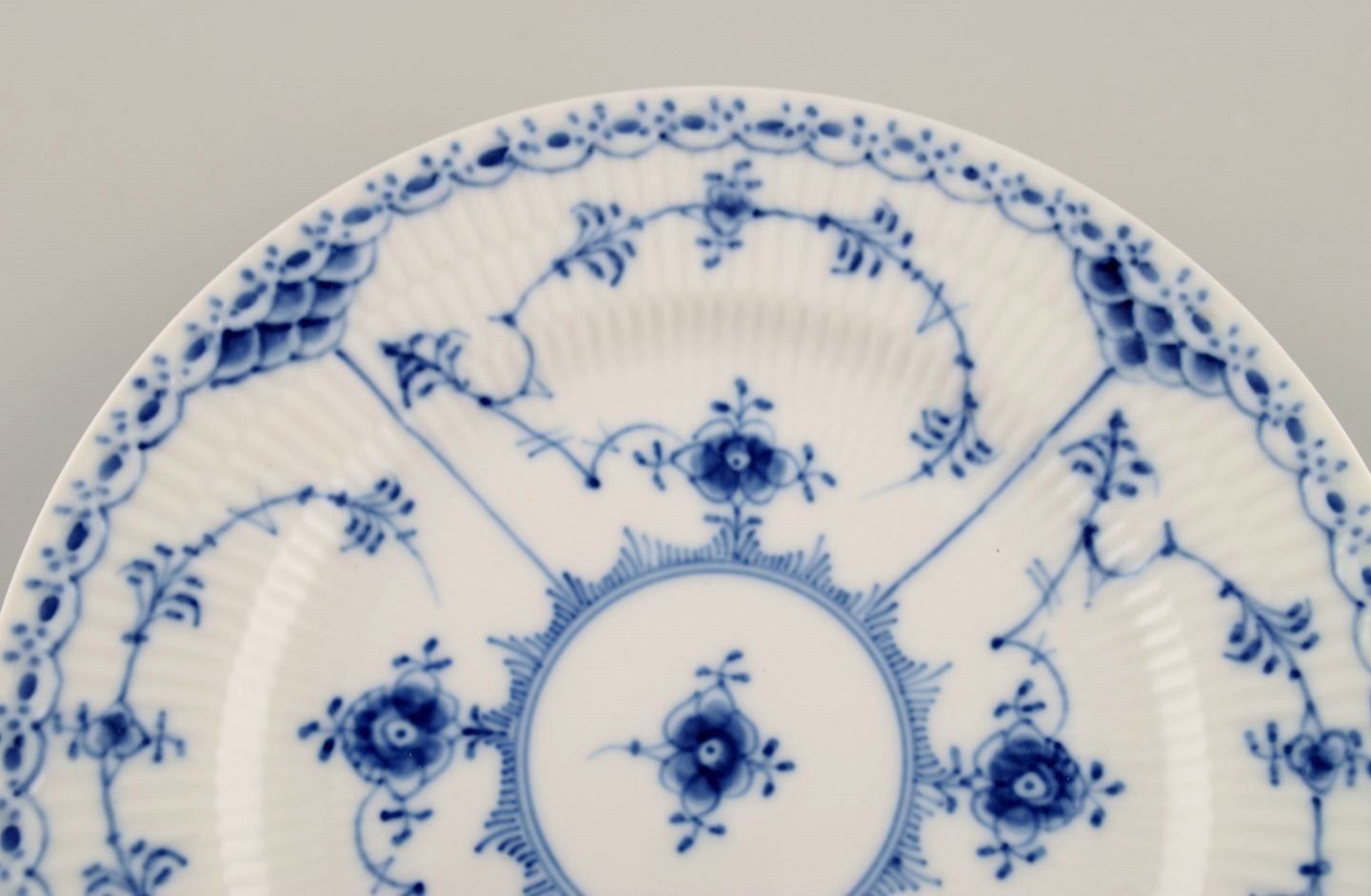 Five Royal Copenhagen Blue Fluted Half Lace Plates. Mid-20th century. Model number 1/574. Diameter: 17 cm. In excellent condition. Stamped. 1st factory quality.