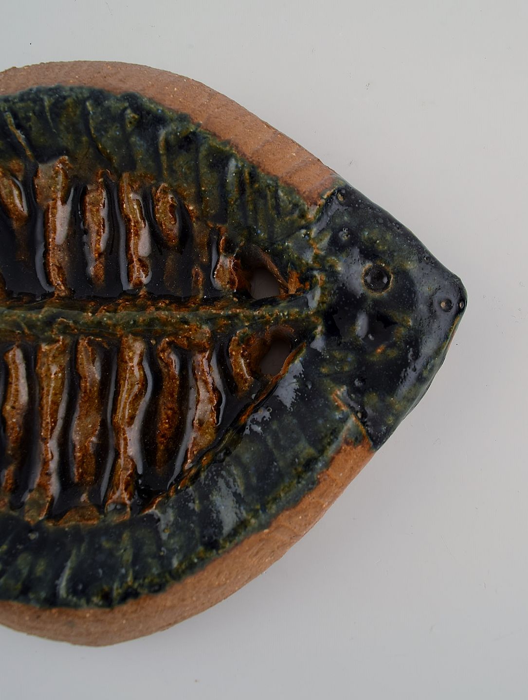 Gabi Citron-Tengborg. Own workshop, Lund. Unique wall plaque in glazed stoneware shaped like a fish. 1960s. Measures: 20 x 14 cm. In excellent condition. Signed.