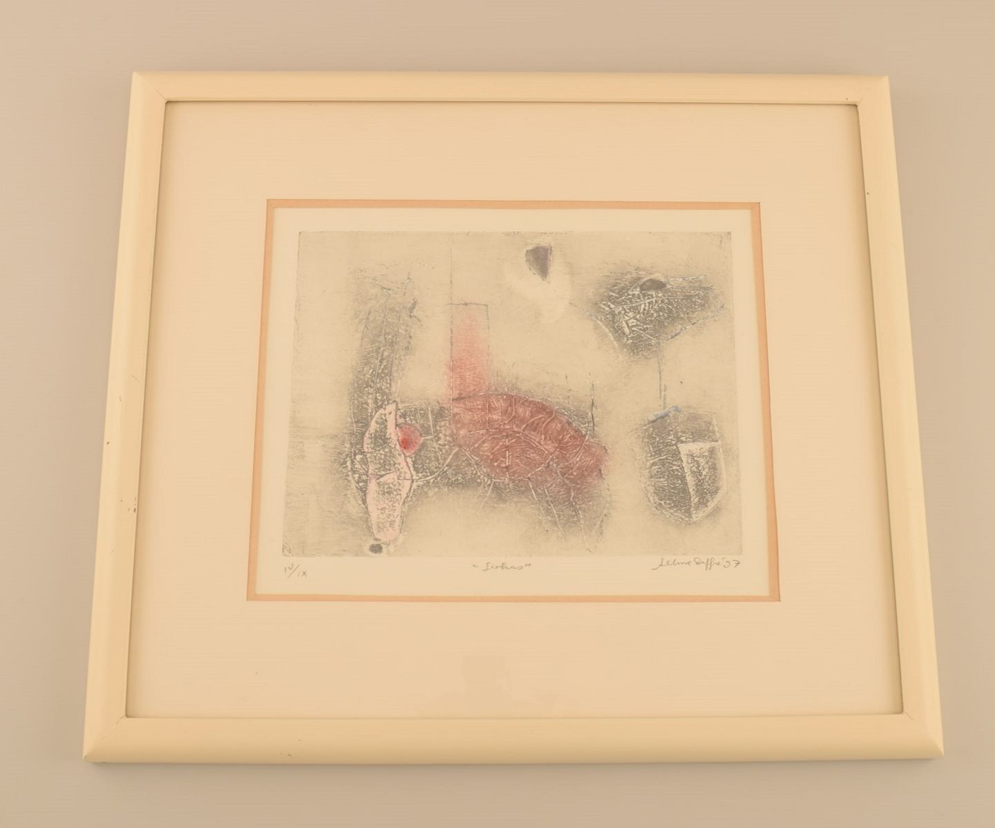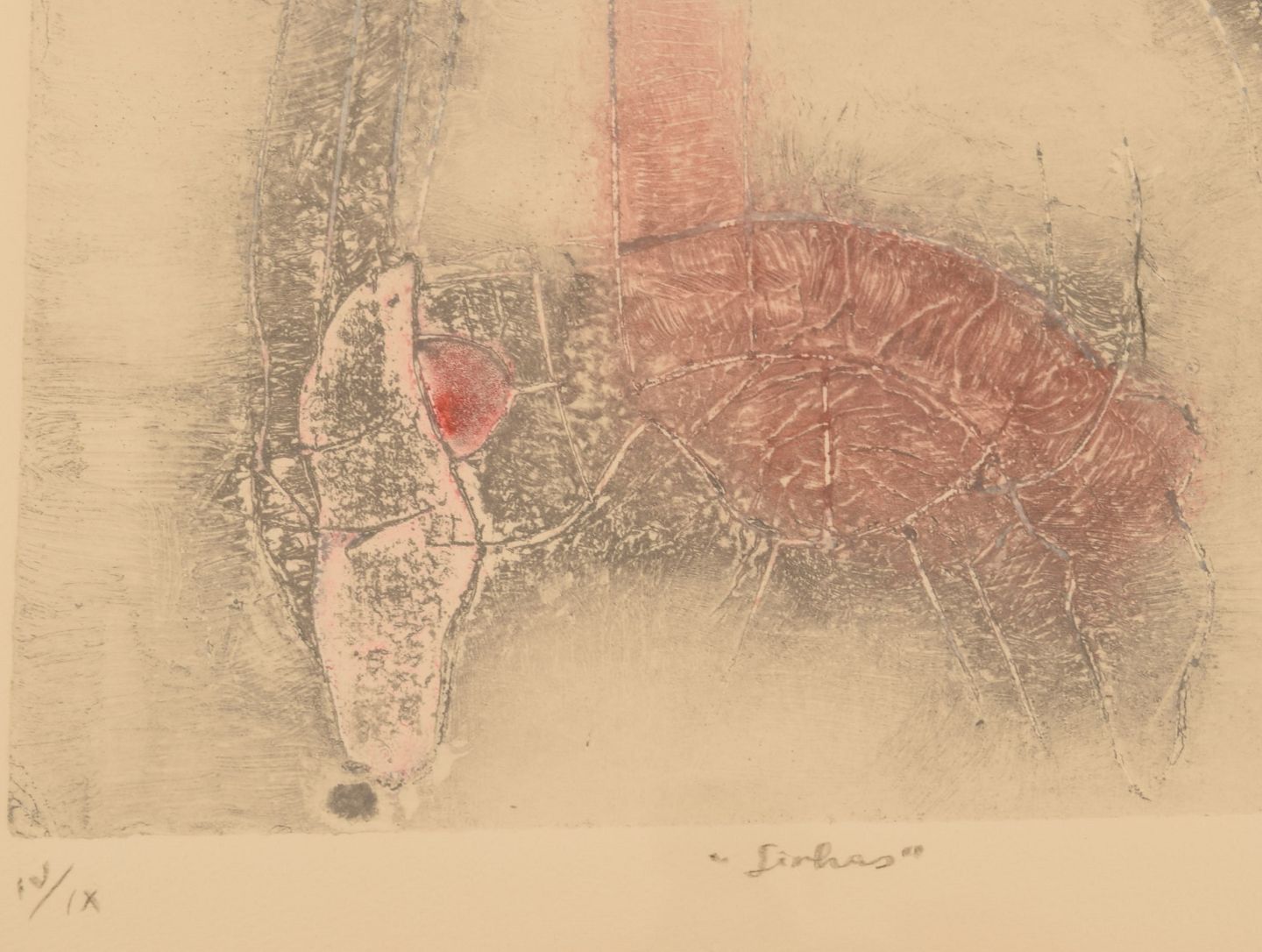 Selma Daffre (f. 1951), brasiliansk kunstner. Collografi på papir. "Linhas". Nummereret 4/9. Dateret 1997.