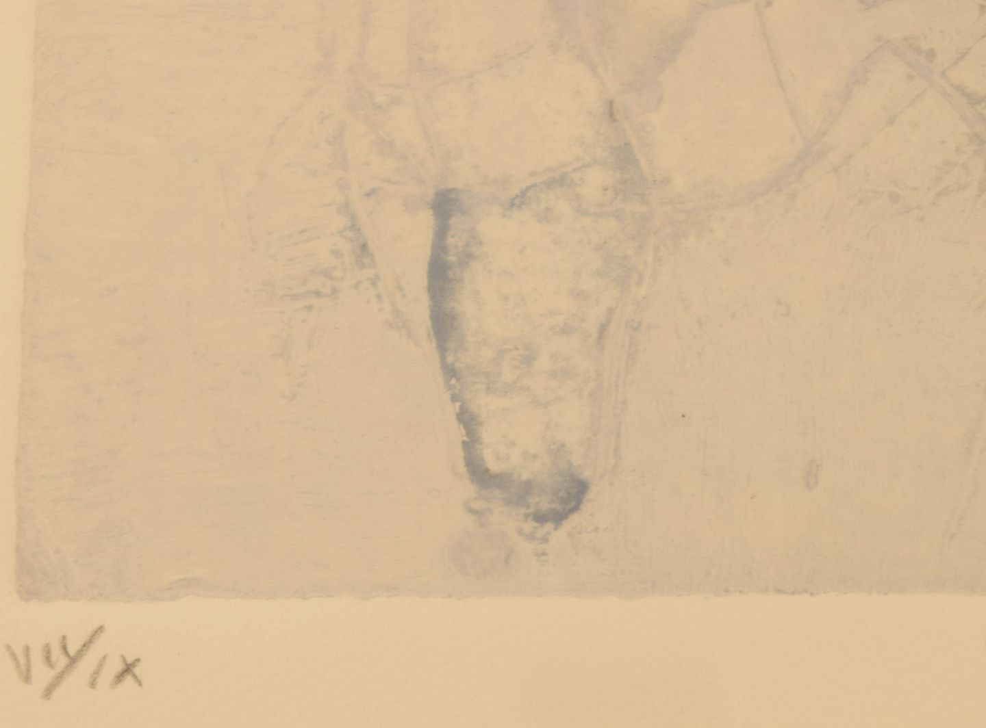 Selma Daffre (f. 1951), brasiliansk kunstner. Collografi på papir. "Linhas". Nummereret 7/9. Dateret 1997.