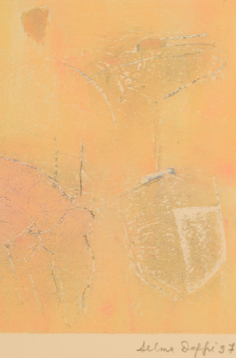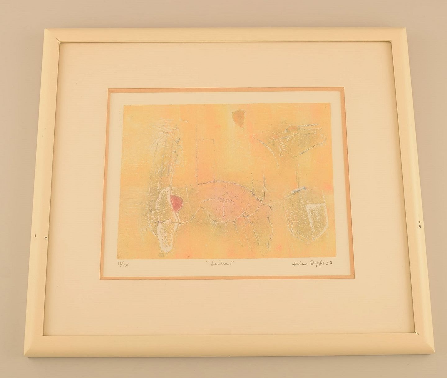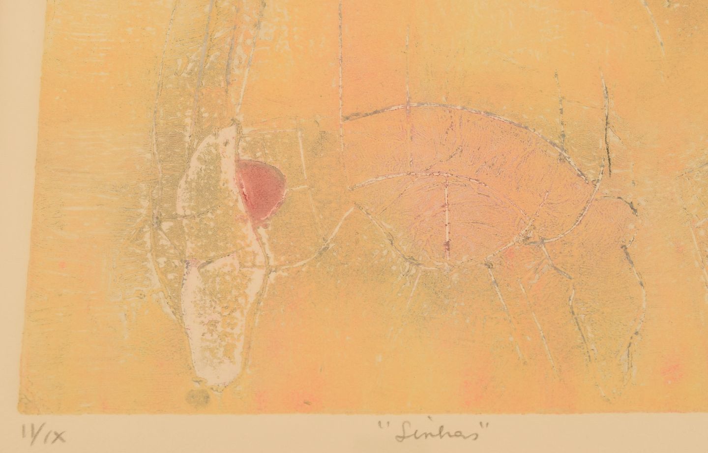 Selma Daffre (f. 1951), listet brasiliansk kunstner. Collografi på papir. "Linhas". Nummereret 2/9. Dateret 1997.