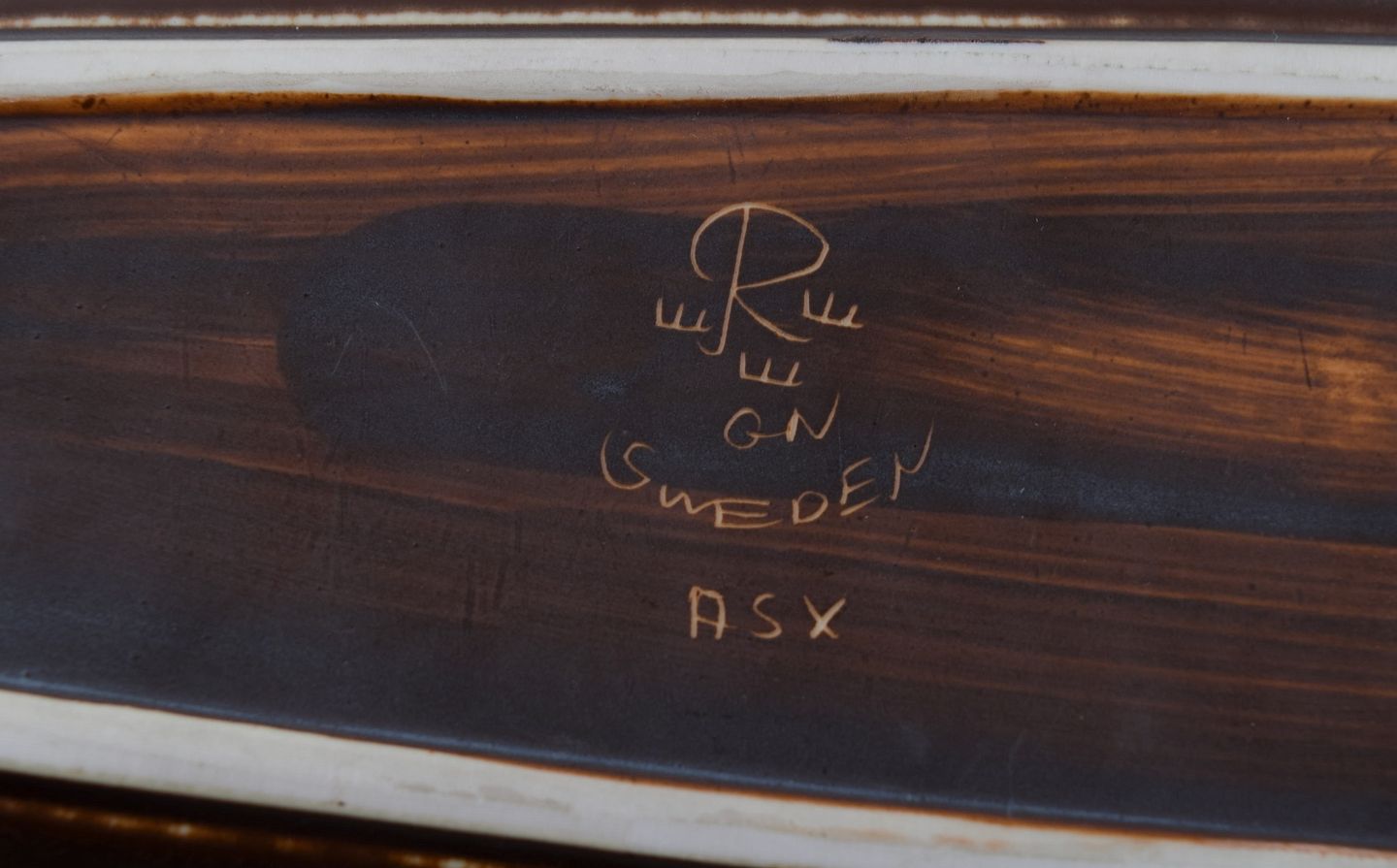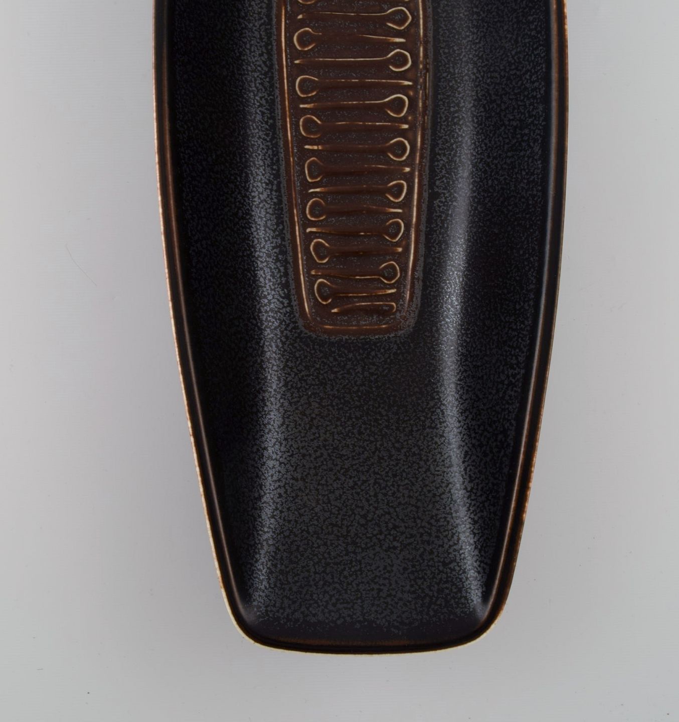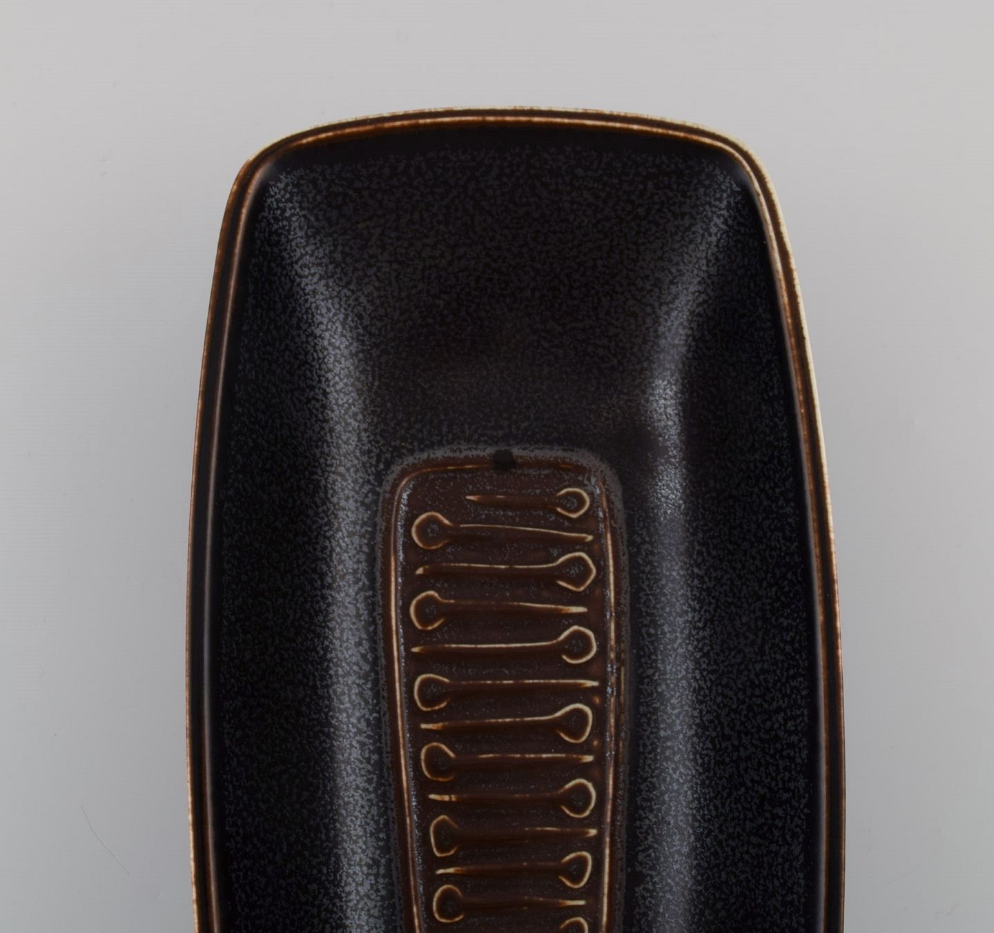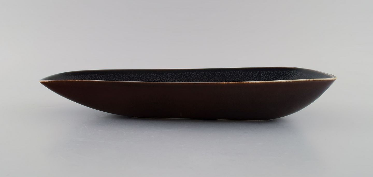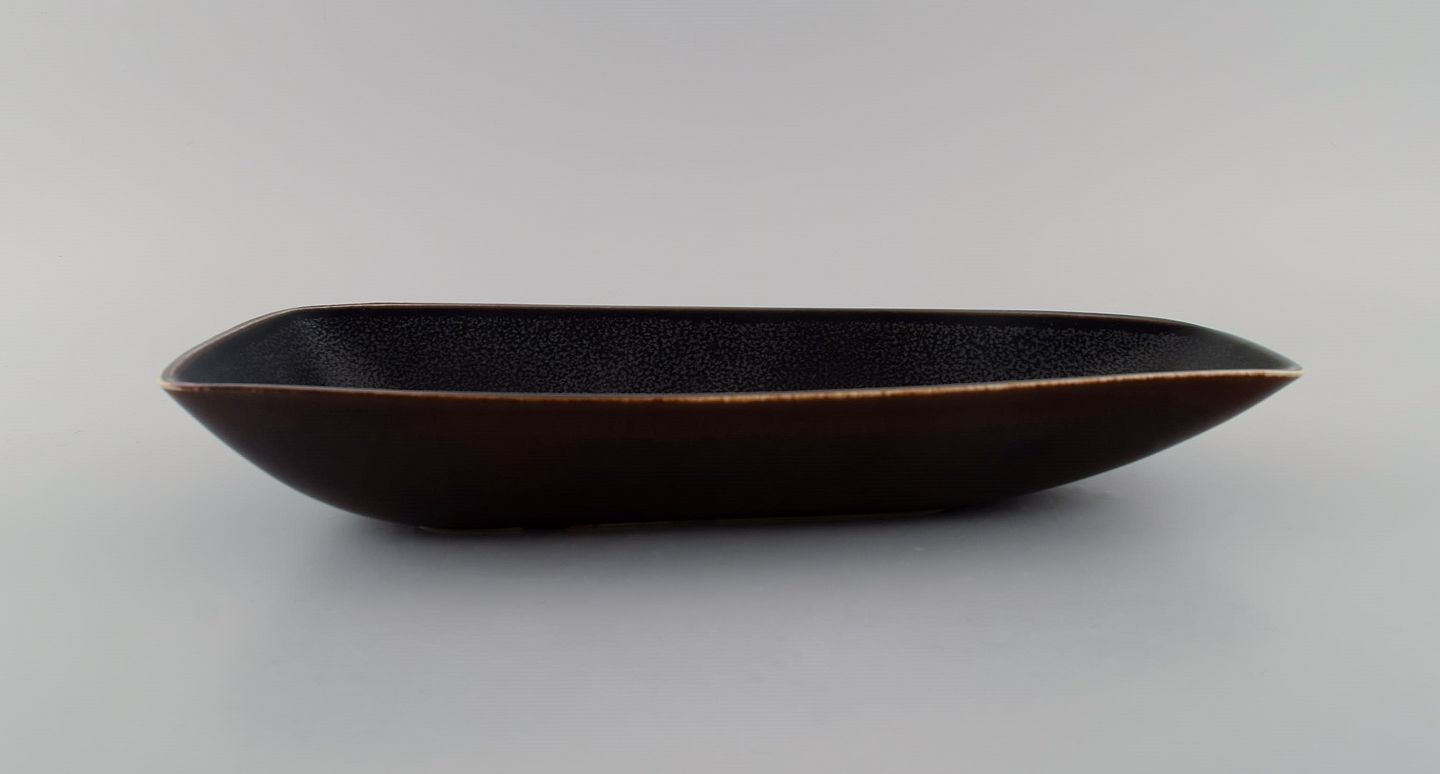 Gunnar Nylund (1904-1997) for Rörstrand. Stort fad / skål i glaseret keramik. Smuk spættet glasur i brune og gråsorte nuancer. Midt 1900-tallet.