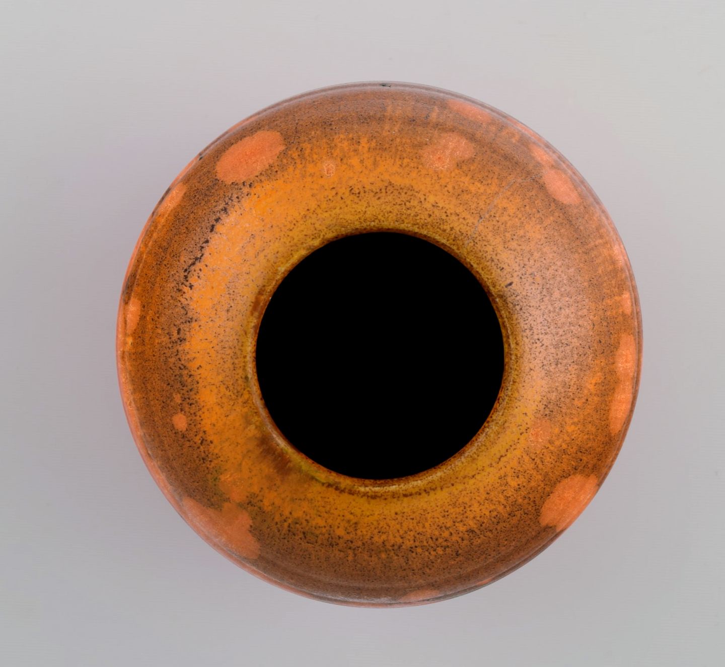 Pieter Groeneveldt (1889-1982), hollandsk keramiker. Rund unika vase i glaseret keramik. Smuk glasur i orange nuancer. Midt 1900-tallet.
