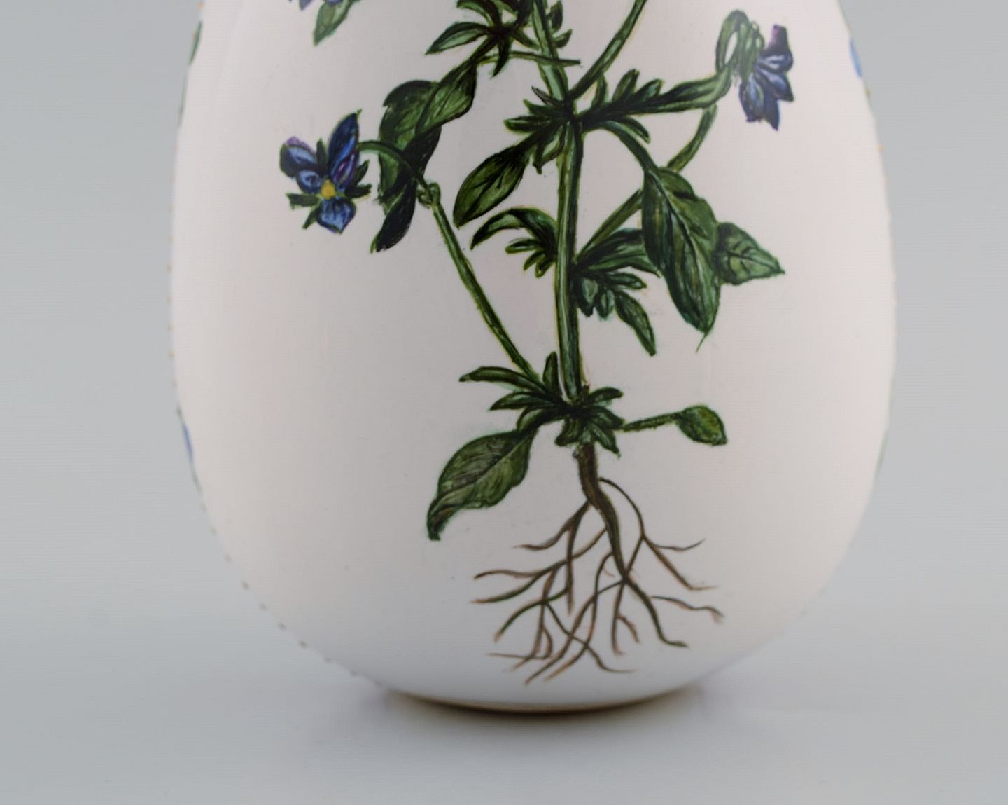 Æg i porcelæn. Håndmalede blomster, guld- og lyserød dekoration. Flora Danica stil. Dateret 2001.