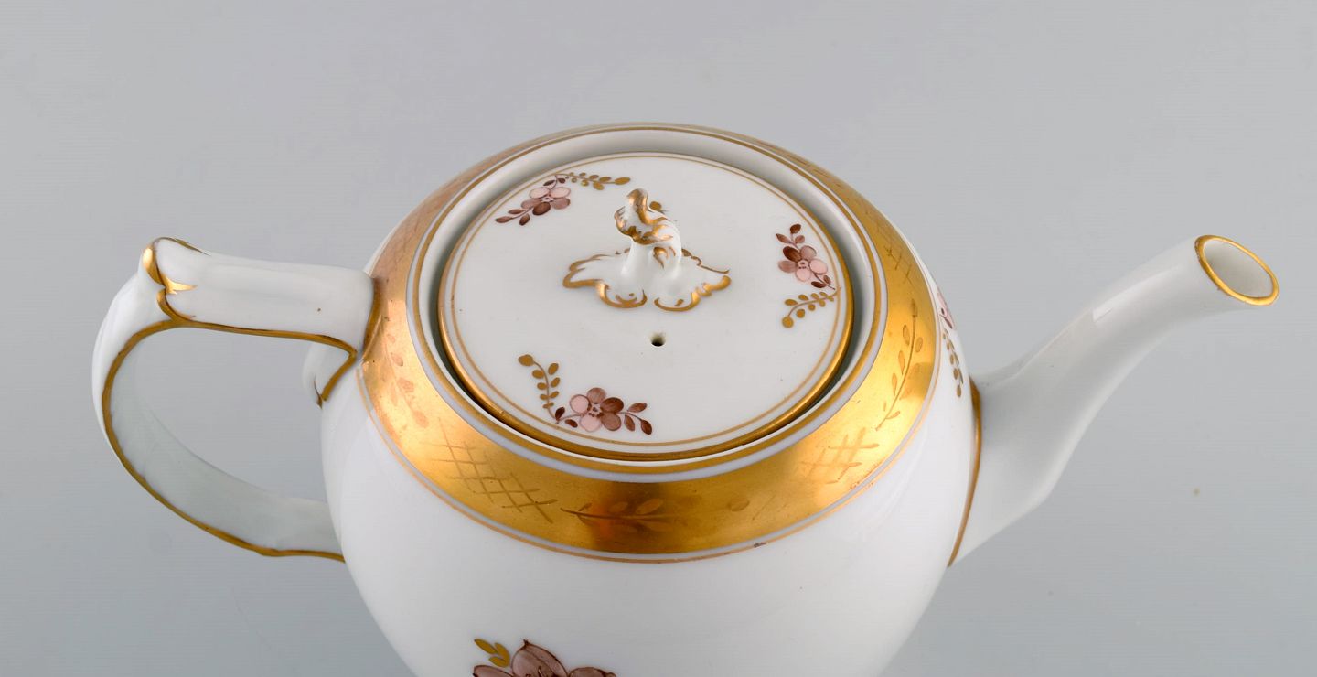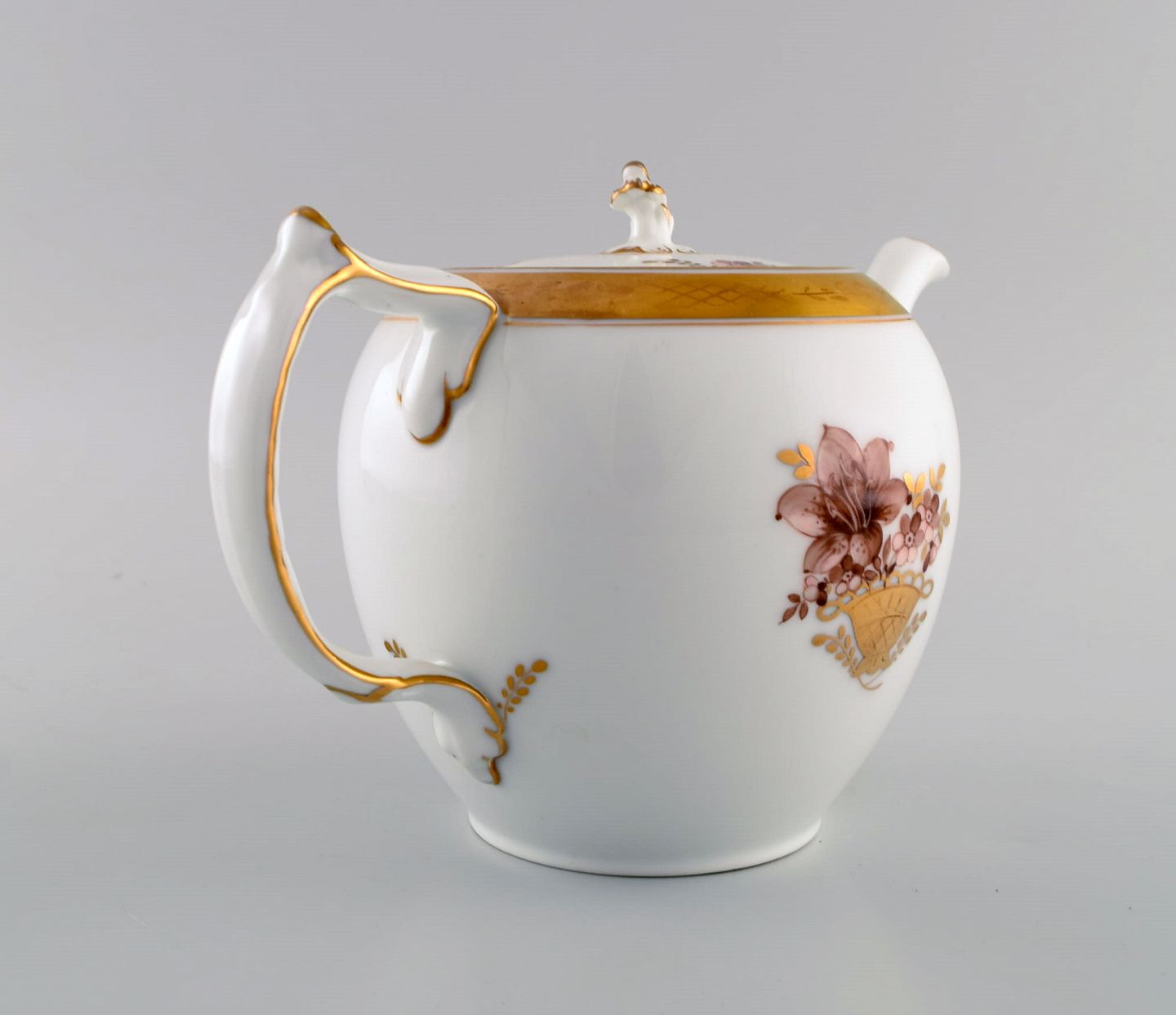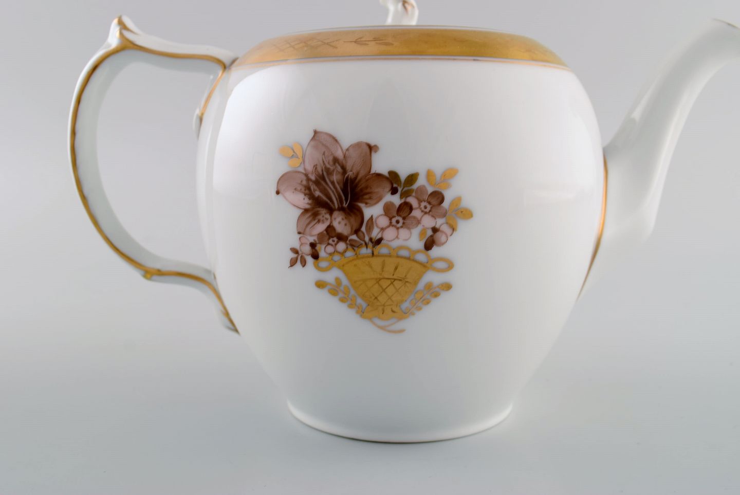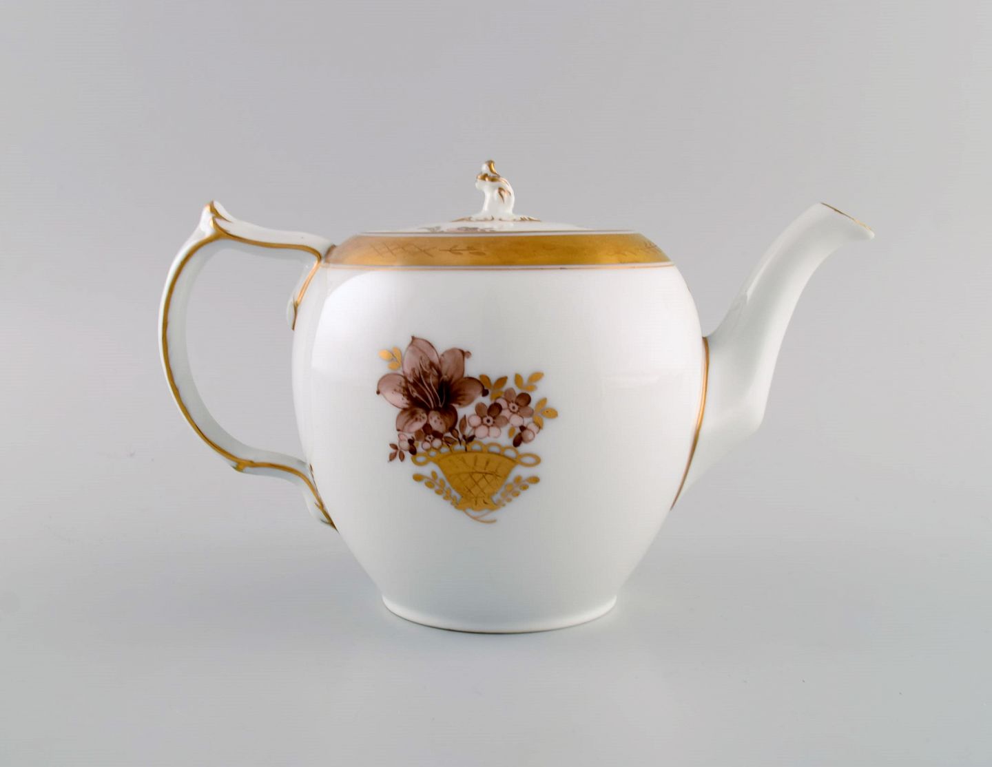Royal Copenhagen Guldkurv tekande i porcelæn med blomster og gulddekoration. Modelnummer 595/9103. Tidligt 1900-tallet.