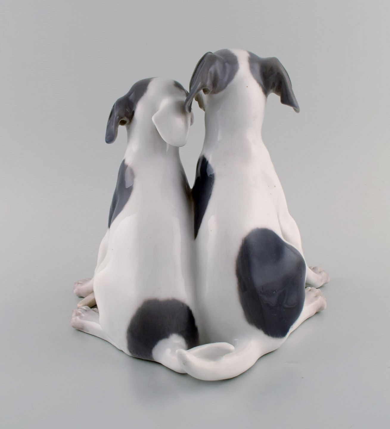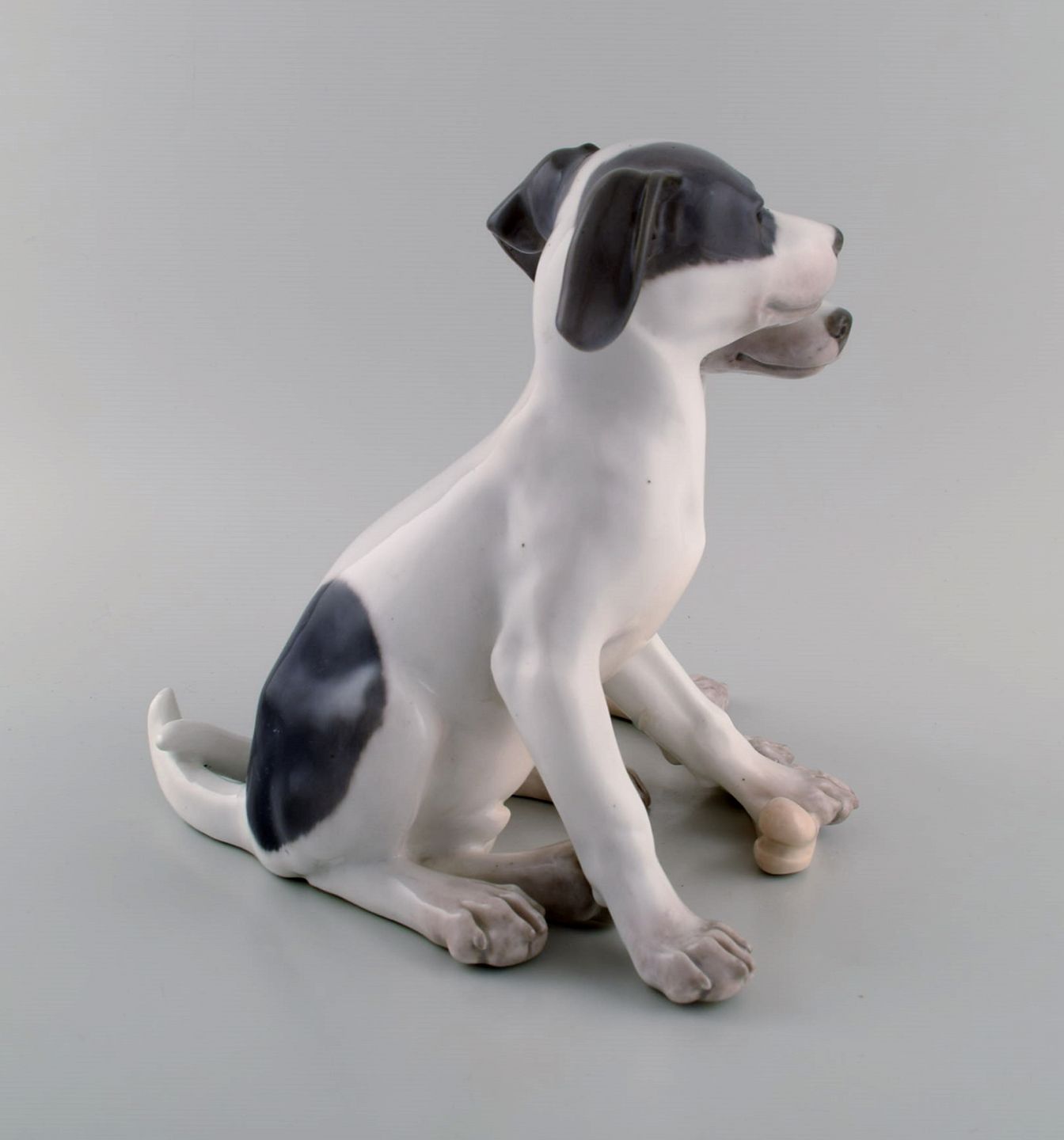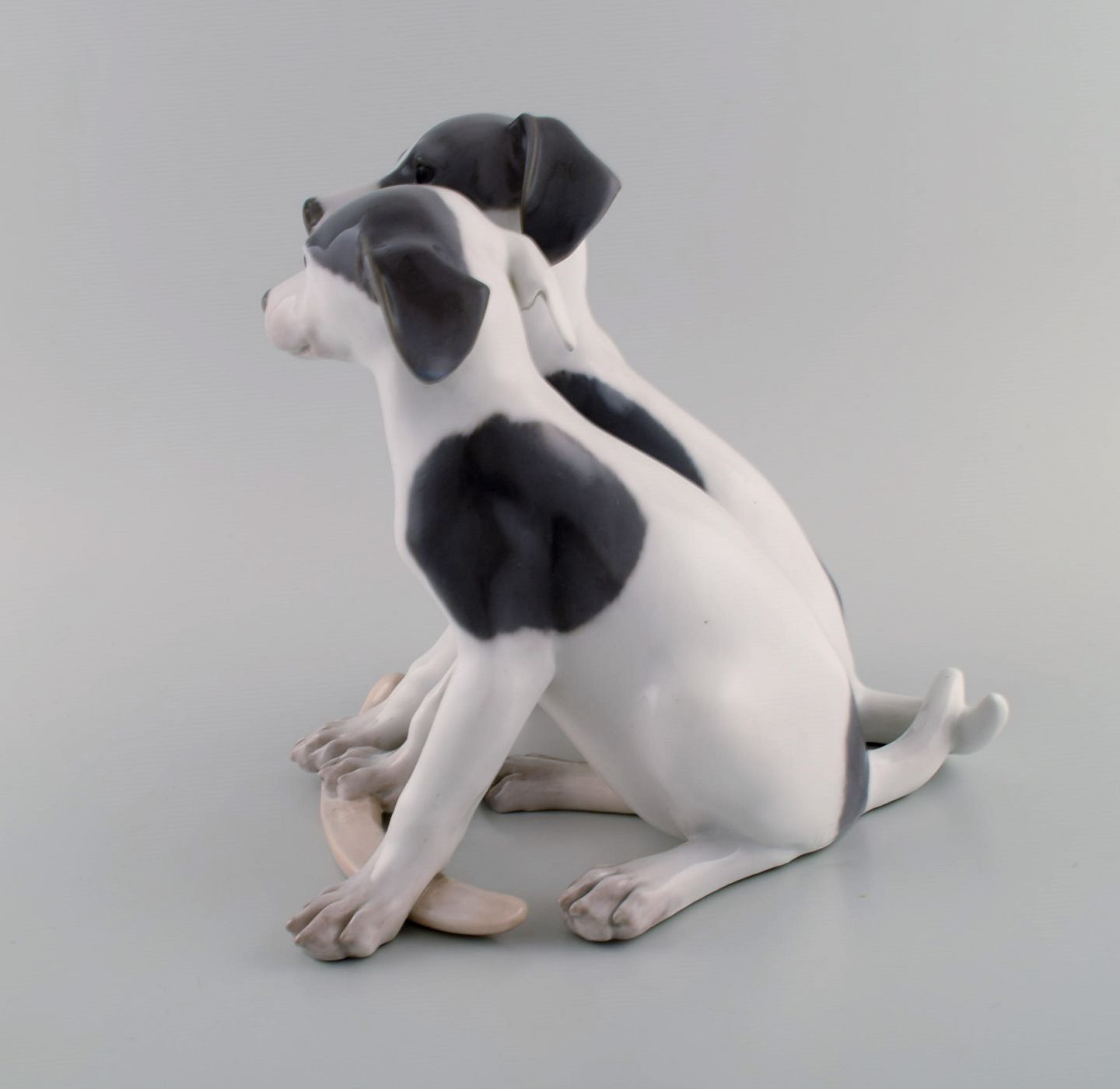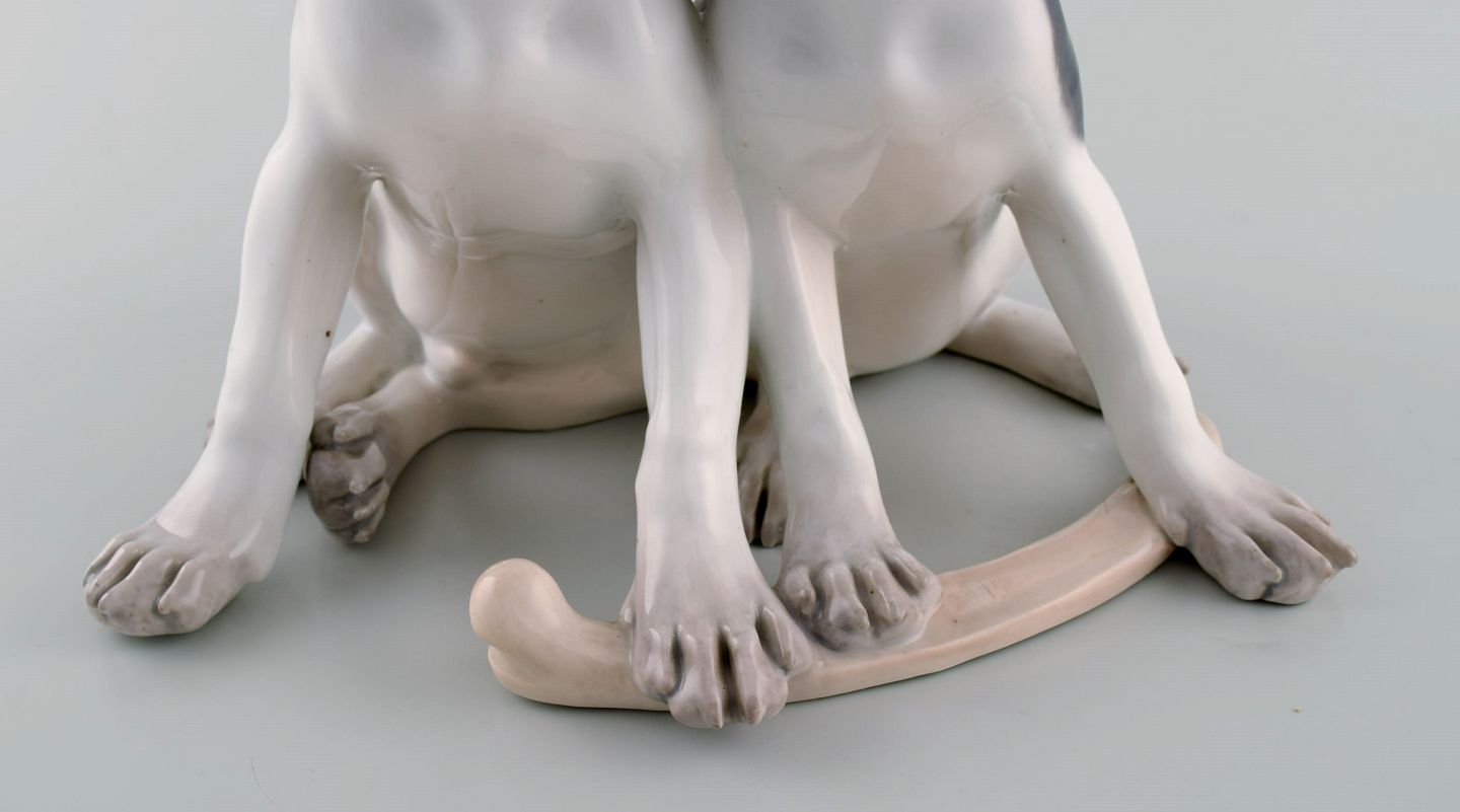 Stor og sjælden Royal Copenhagen porcelænsfigur. Hvalpe med kødben. Modelnummer 750. Tidligt 1900-tallet.