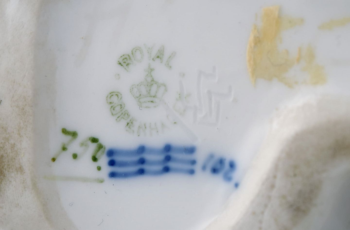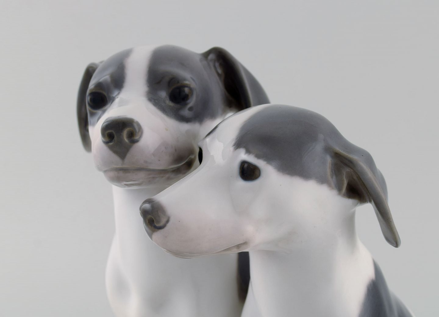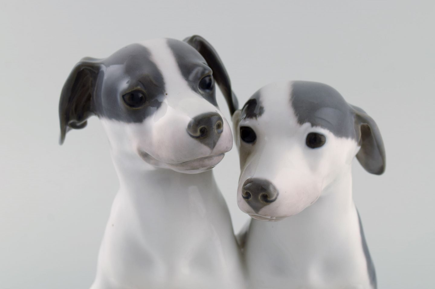 Stor og sjælden Royal Copenhagen porcelænsfigur. Hvalpe med kødben. Modelnummer 750. Tidligt 1900-tallet.