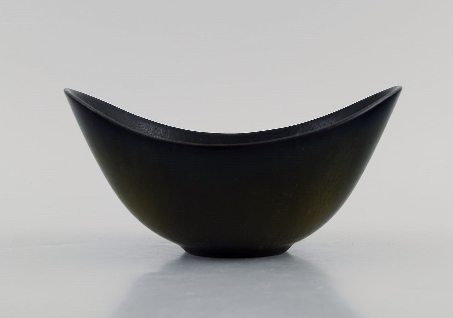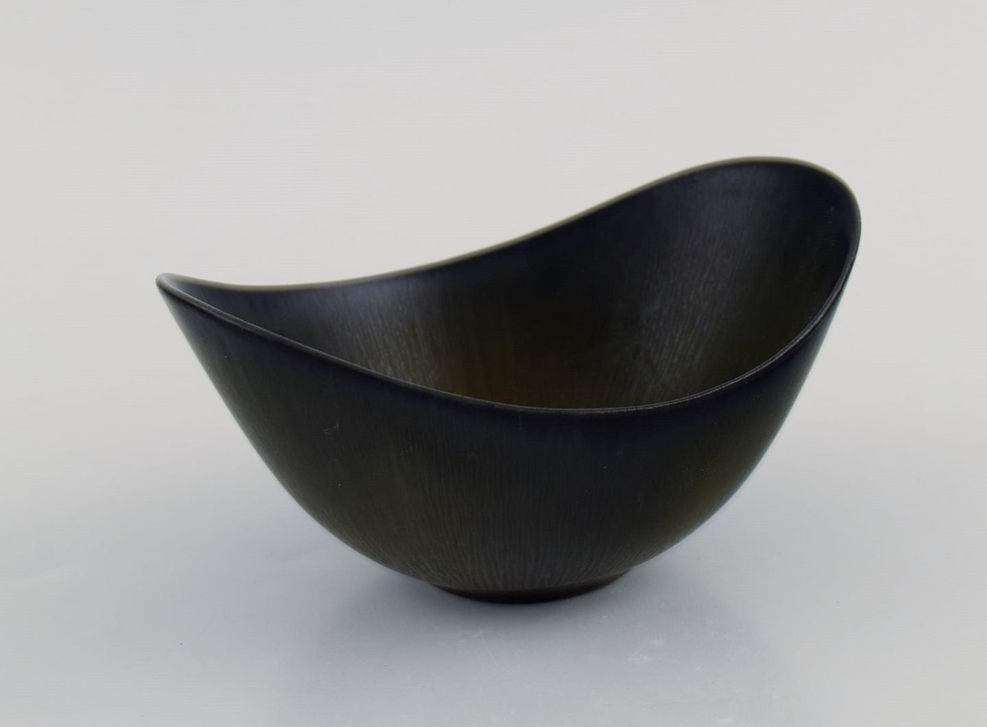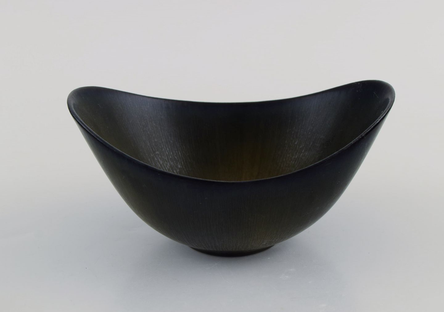 Gunnar Nylund (1904-1997) for Rörstrand. Skål i glaseret keramik. Smuk glasur i brune nuancer med grønne strjef. Midt 1900-tallet.