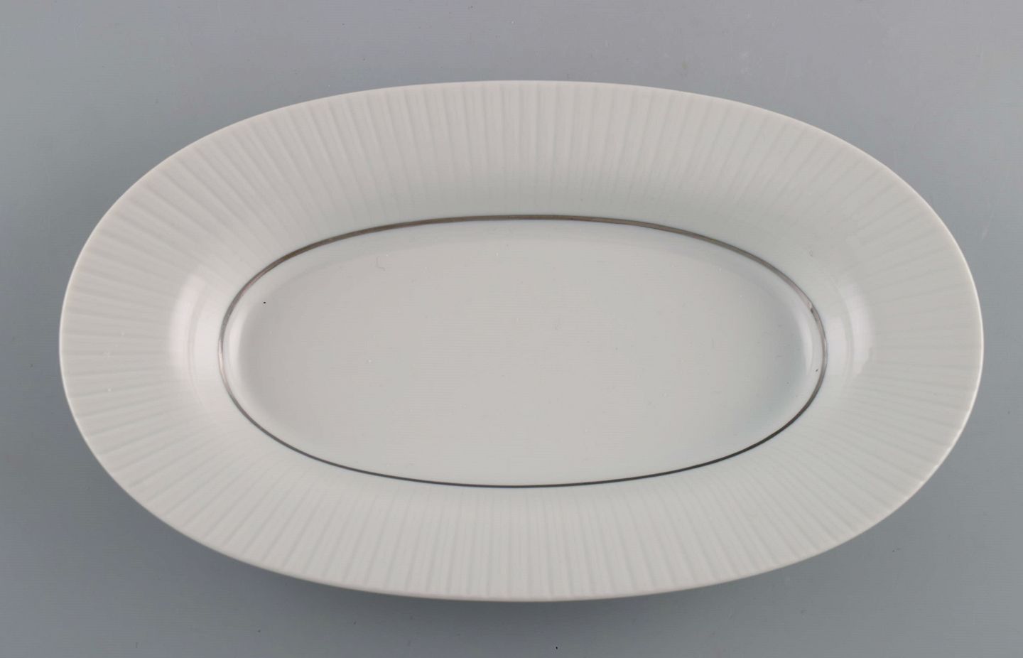 Tapio Wirkkala for Rosenthal. Sjælden Modulation saltbøsse og fad / skål i riflet porcelæn. Platinum Detail. Klassisk og tidsløst design. 1960'erne.