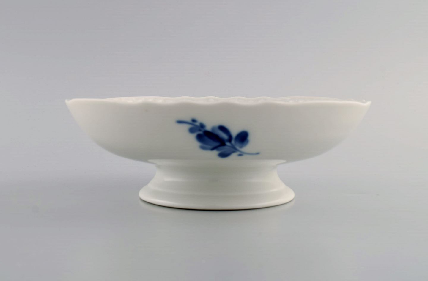 Royal Copenhagen Blå Blomst Svejfet kagefad på fod. Modelnummer 10/1532. Dateret 1969-1974.