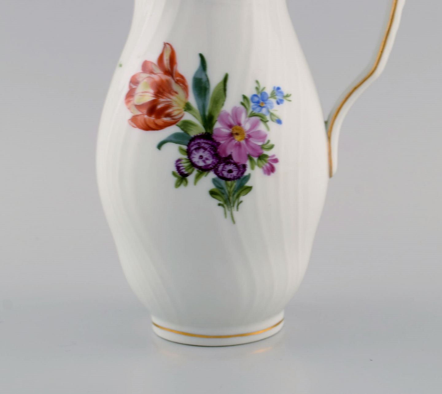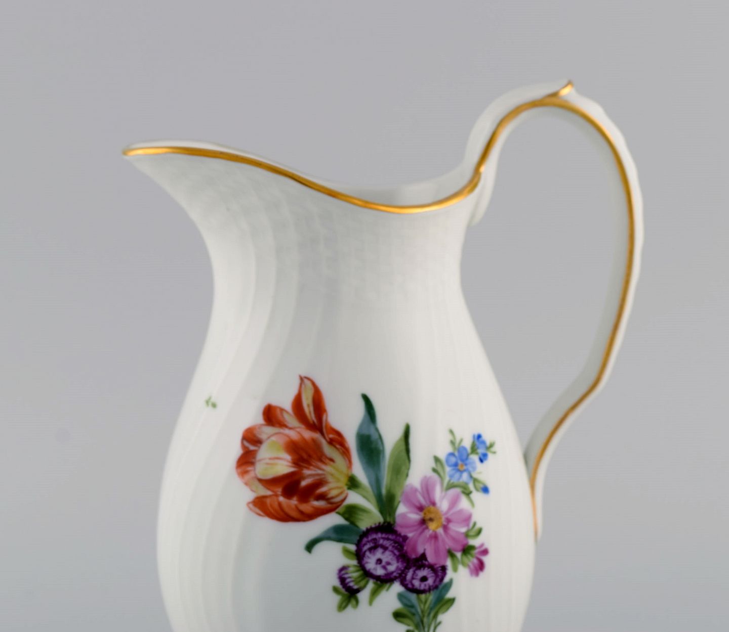 Royal Copenhagen Saksisk Blomst kande i håndmalet porcelæn med blomster og gulddekoration. Modelnummer 493/1609. Tidligt 1900-tallet.