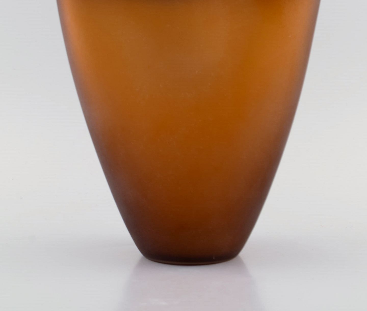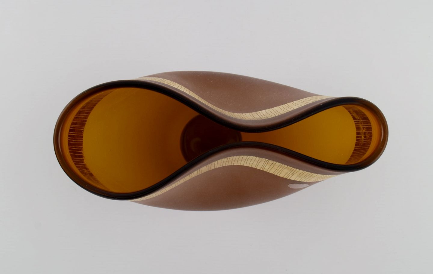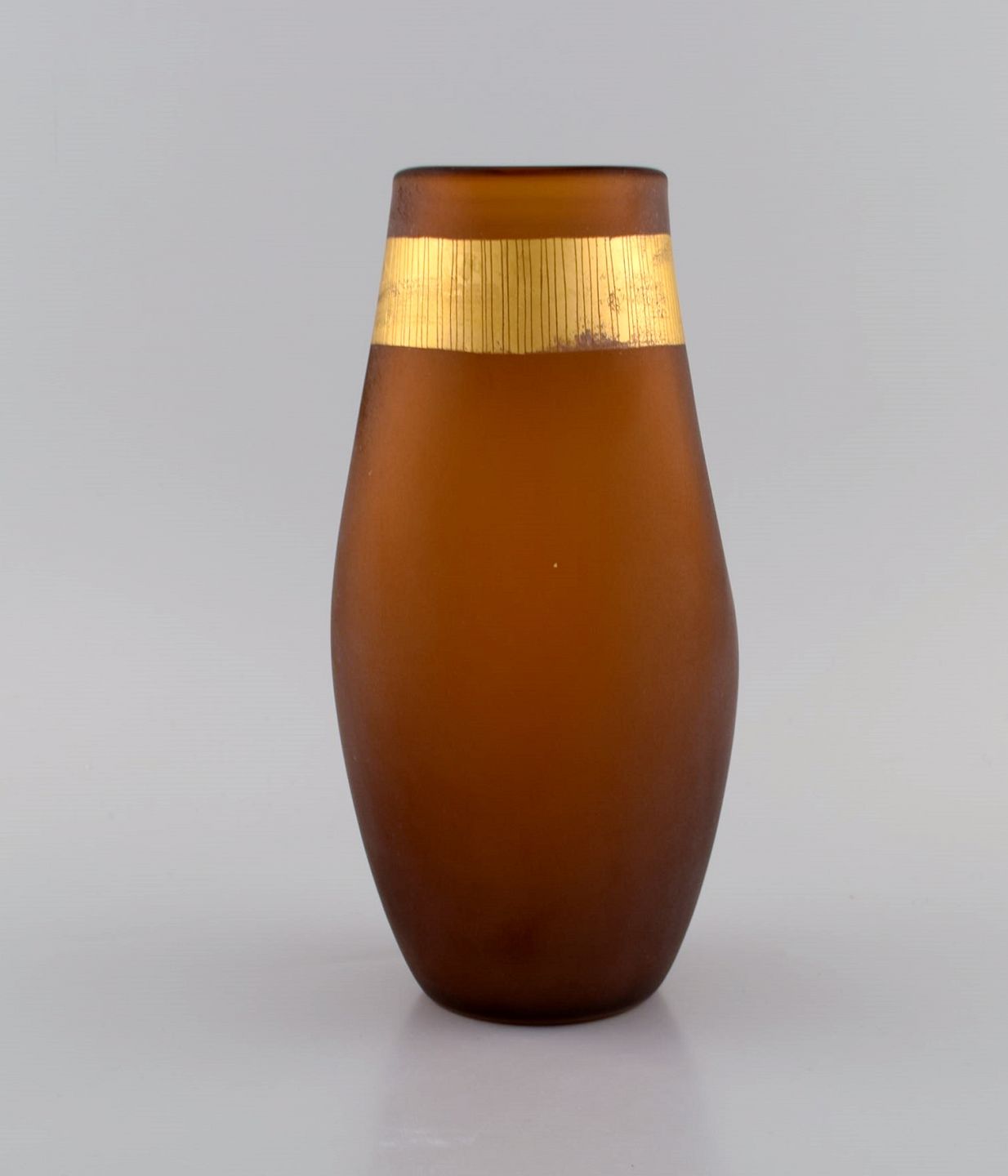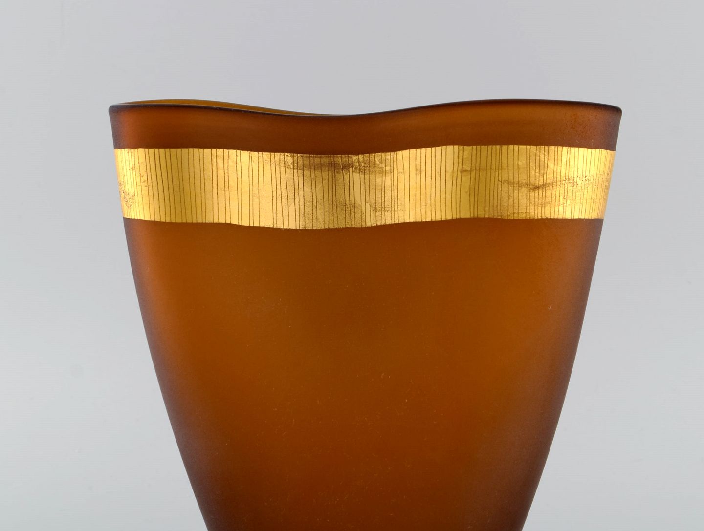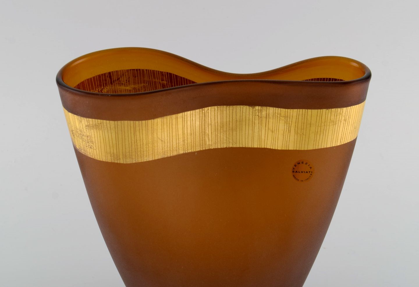 Salviati, Murano. Two vases in amber colored mouth-blown art glass with gold ribbon. Italian design. Early 21st century. Measures: 21 x 18 cm. In excellent condition. Sticker.
