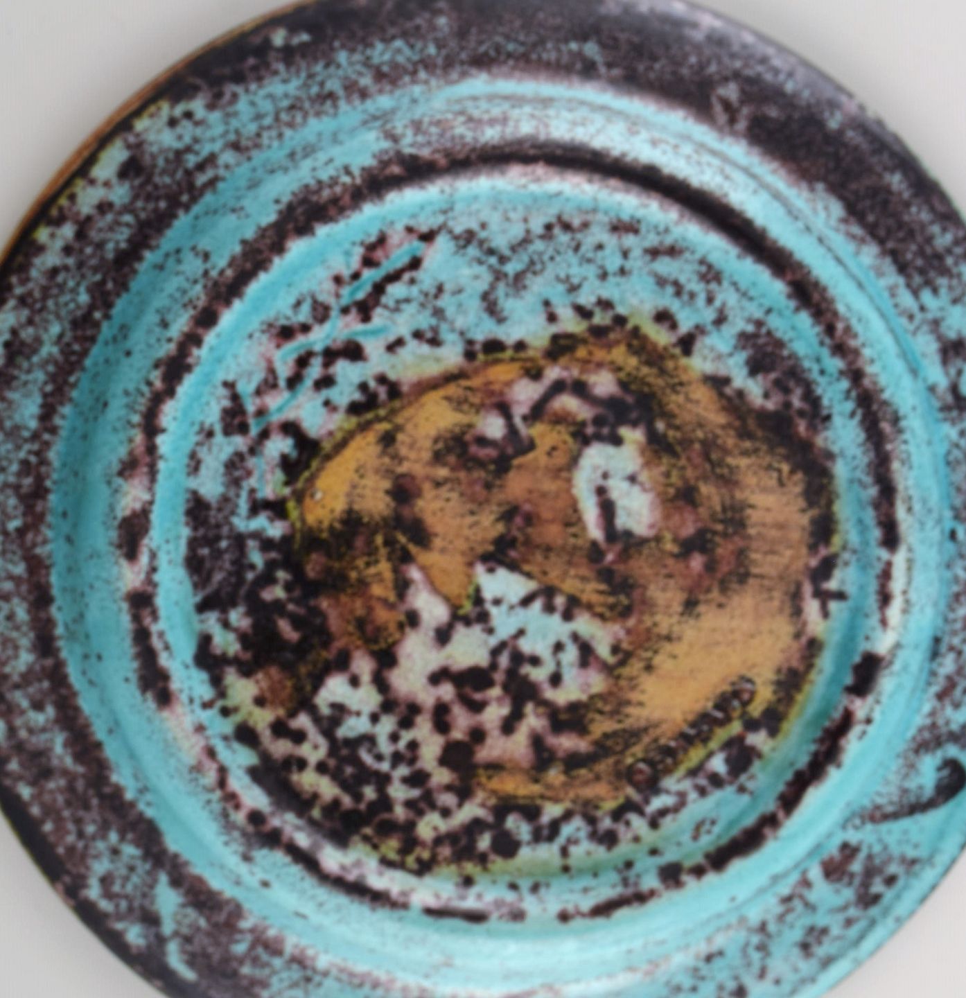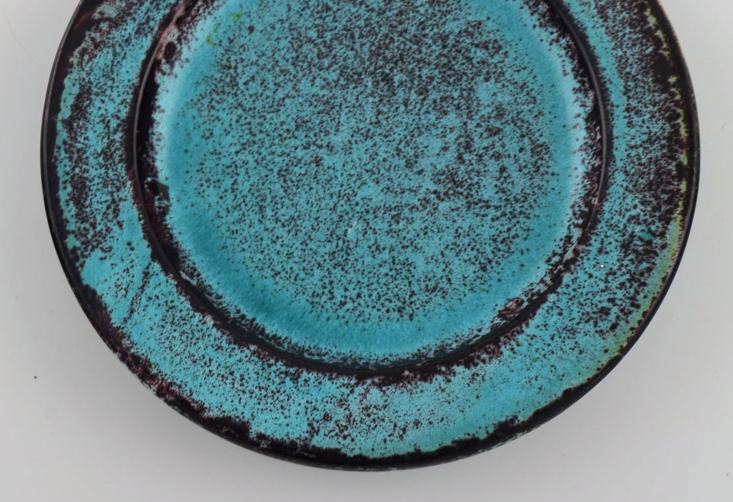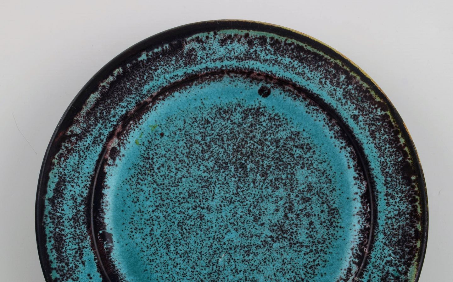 Svend Hammershøi for Kähler, HAK. Rundt fad i glaseret stentøj. Smuk sortgrøn dobbeltglasur. 1930/40'erne. Måler: 15 x 2,2 cm. Signeret. I flot stand.