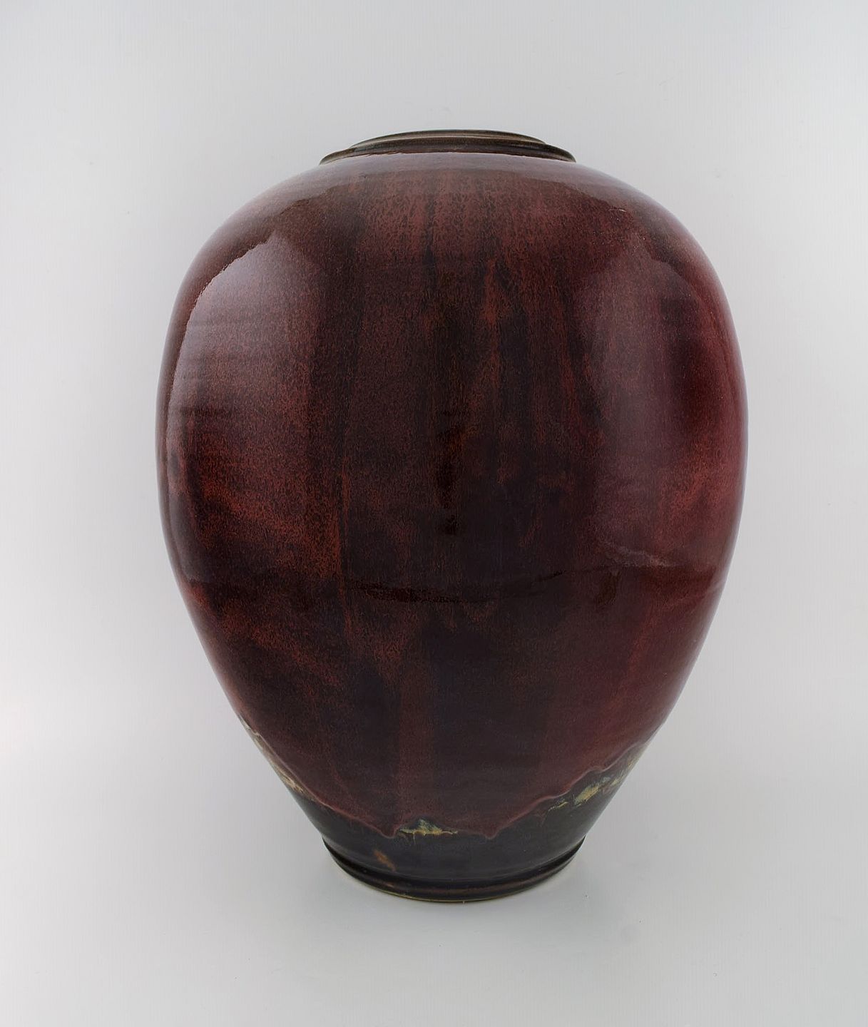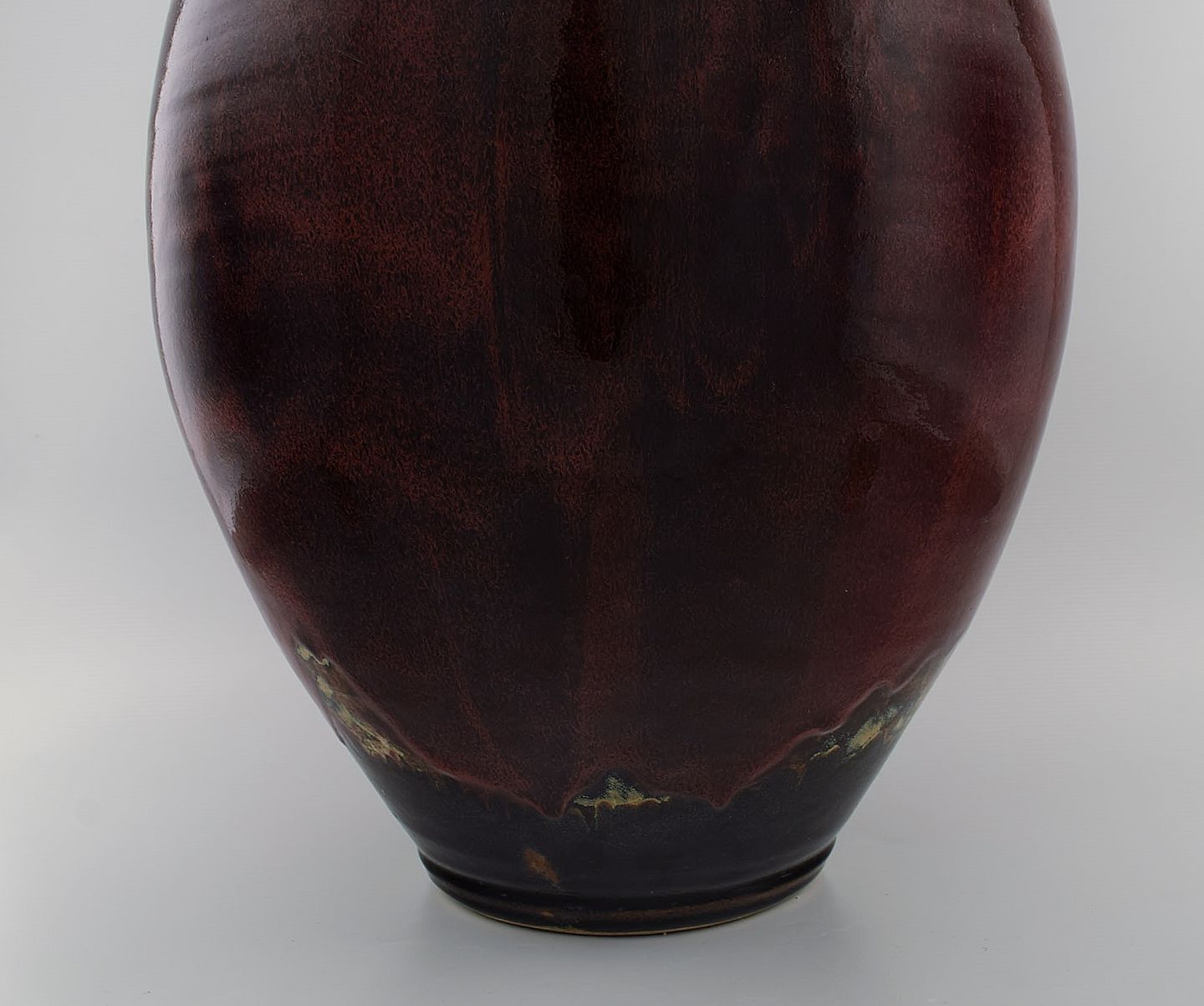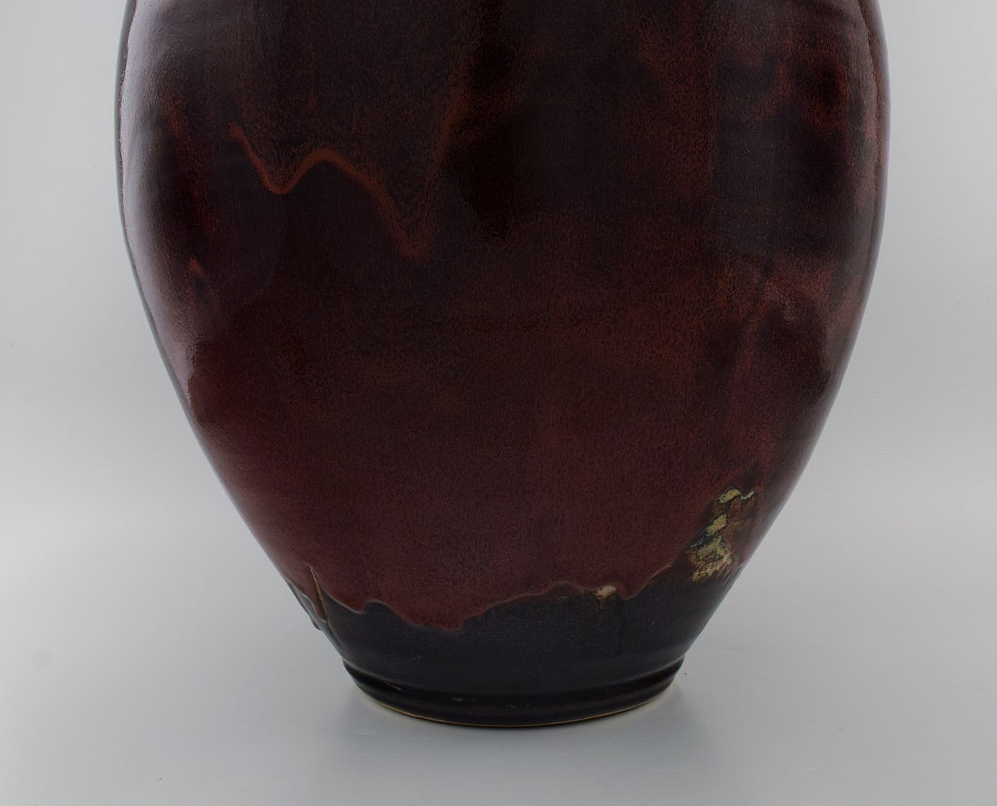 Maxence Jourdain. Fransk samtidskeramiker. Kolossal unika gulvvase i glaseret stentøj. Smuk løbeglasur i okseblod. Dateret 2004.