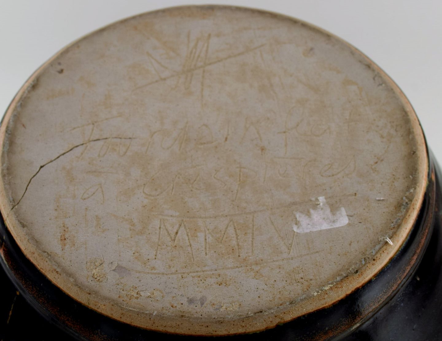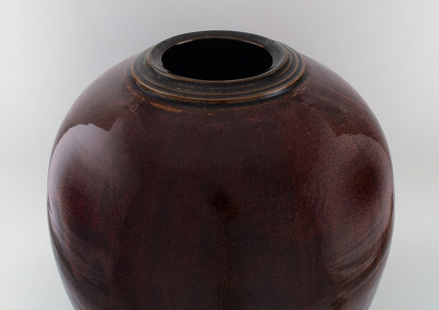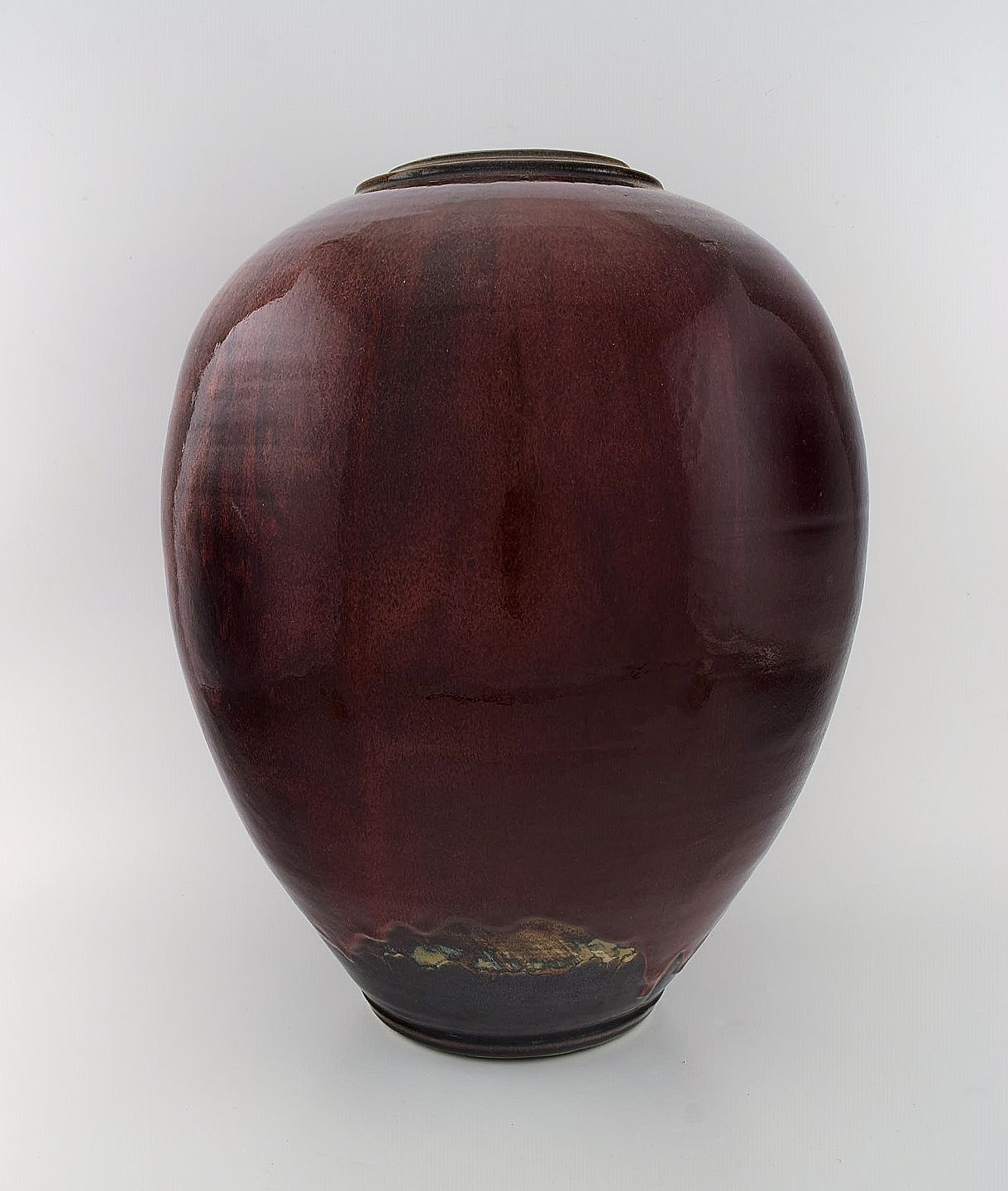 Maxence Jourdain. Fransk samtidskeramiker. Kolossal unika gulvvase i glaseret stentøj. Smuk løbeglasur i okseblod. Dateret 2004.