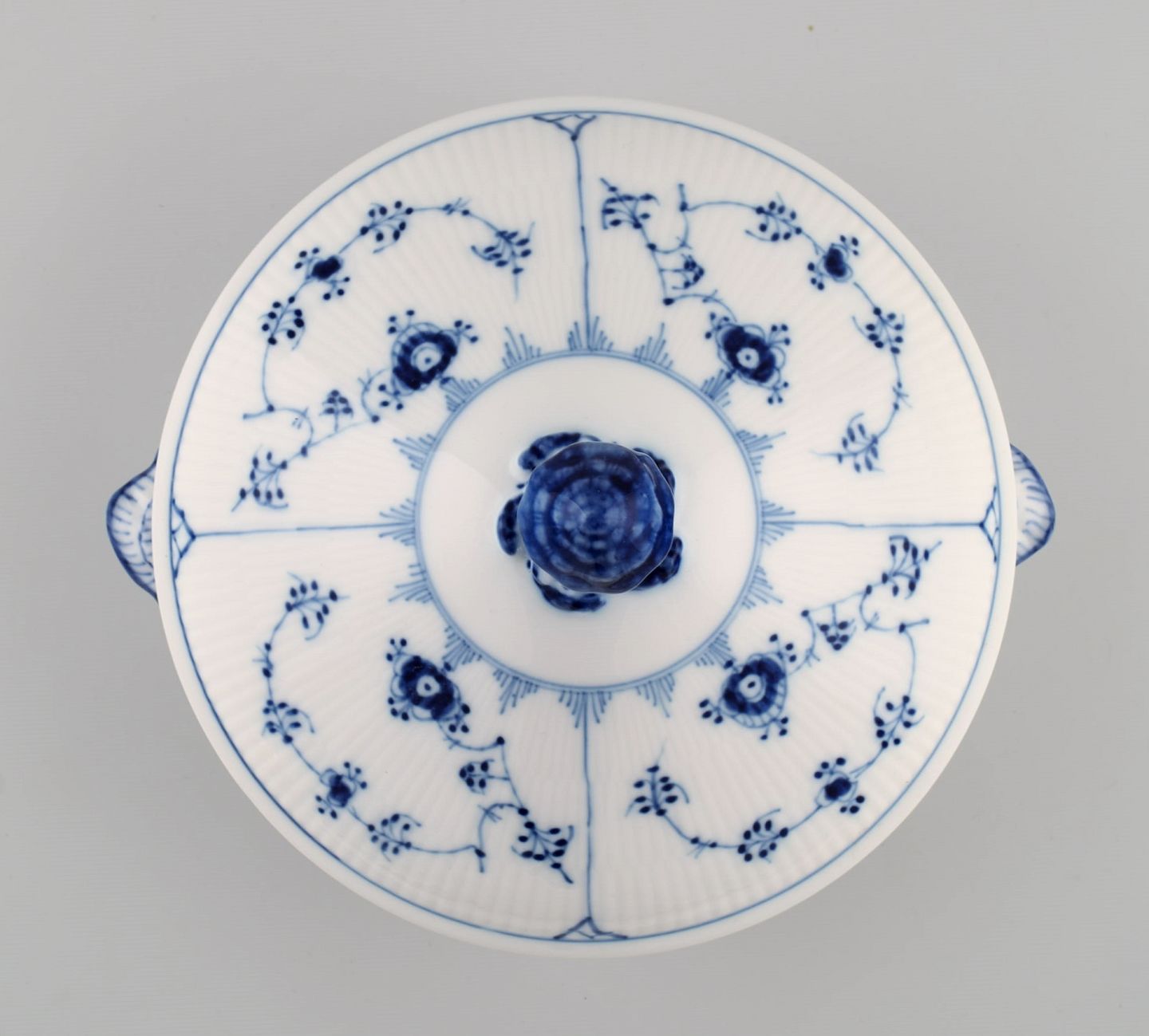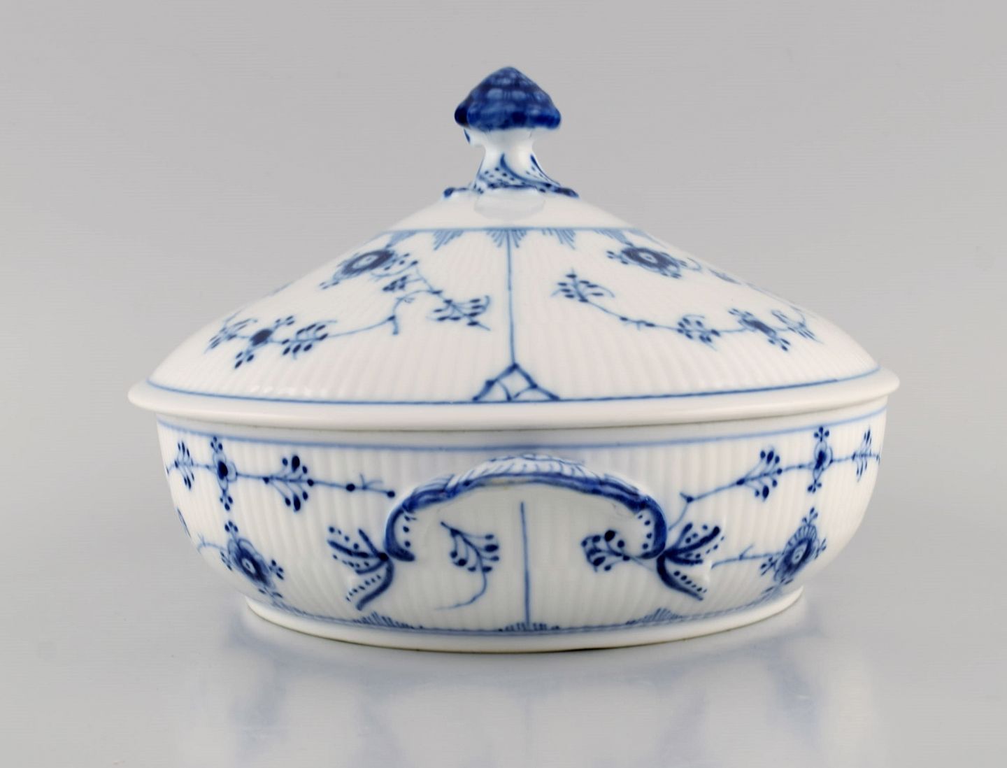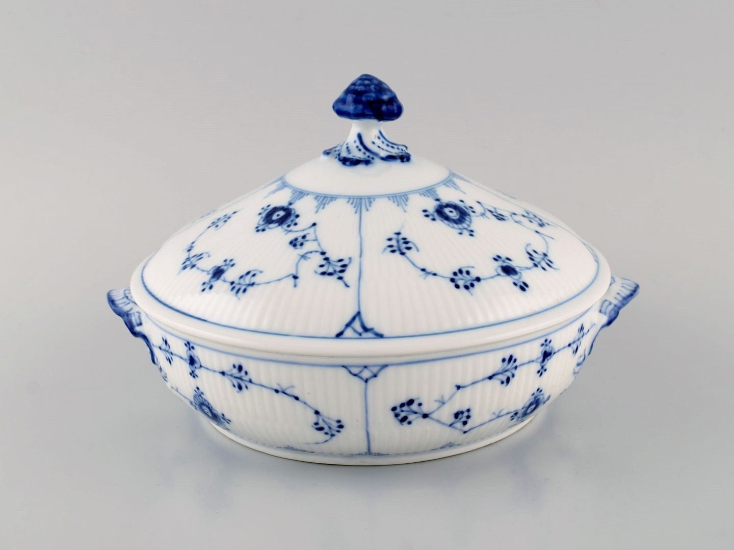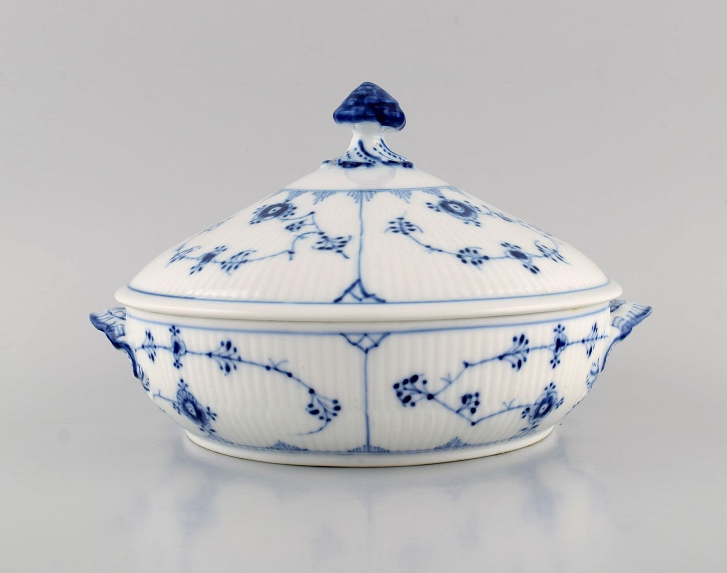 Royal Copenhagen Musselmalet Riflet lågterrin. Modelnummer 1/277. Måler: 24 x 14 cm. I flot stand. . Stemplet. 1. Sortering.