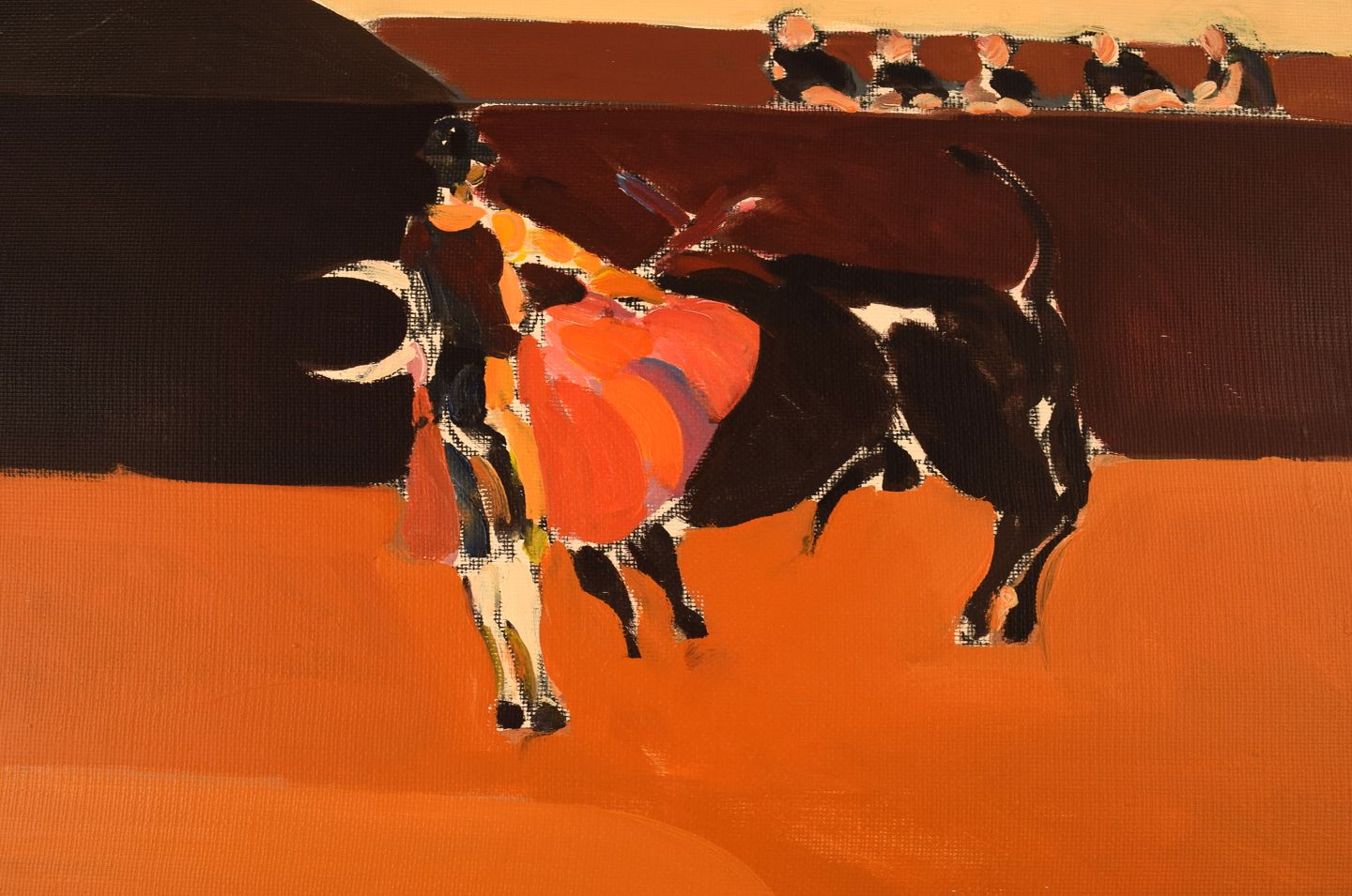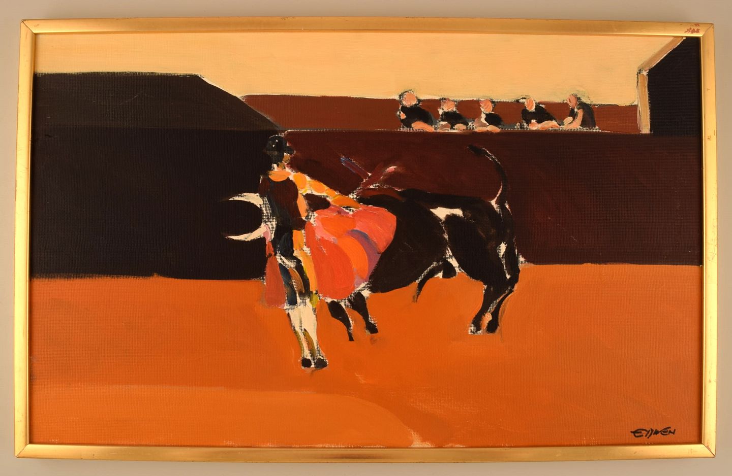 Eric Elfwén (1921-2008), Sweden. Oil on board. Bullfighter. 1960/70's. The board measures: 60 x 36.5 cm. The frame measures: 1.5 cm. In excellent condition. Signed.